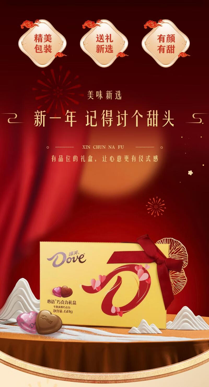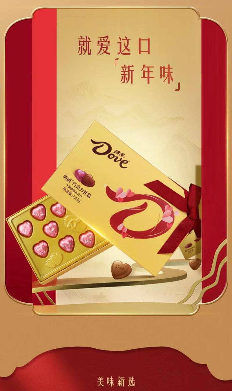德芙(Dove)丝滑心语牛奶巧克力礼盒生日礼物送女友闺蜜休闲实用tzb 德芙爆福气年货礼盒丝滑牛奶26粒*1盒