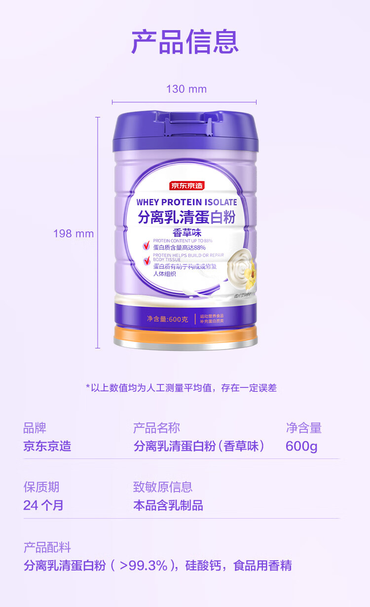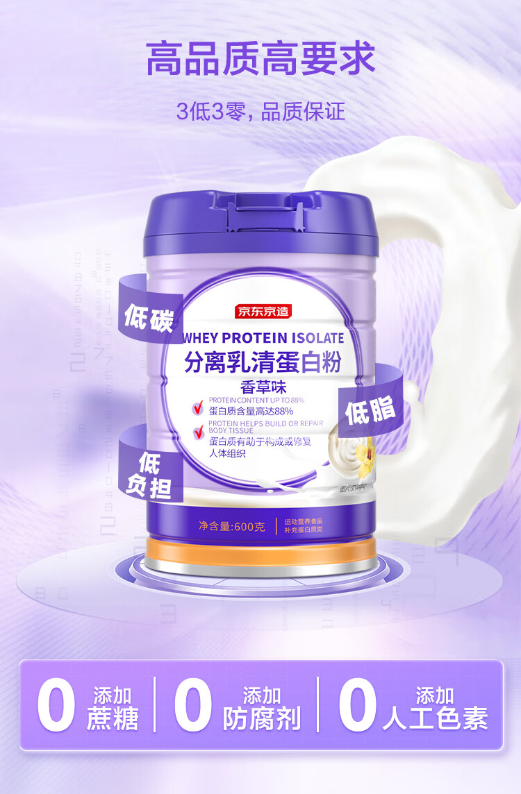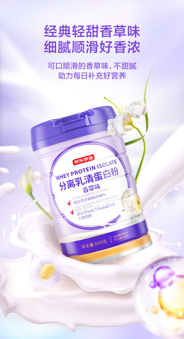 京东京造分离乳清蛋白粉600g(香草味)中老年免疫营养补充术后恢复年货节