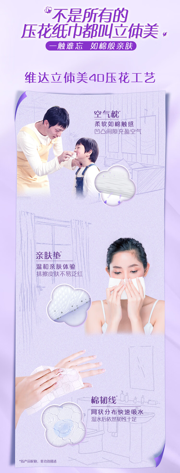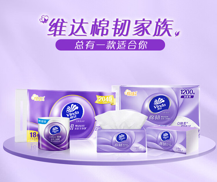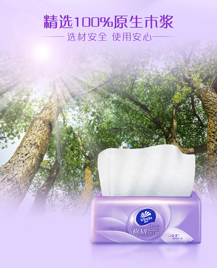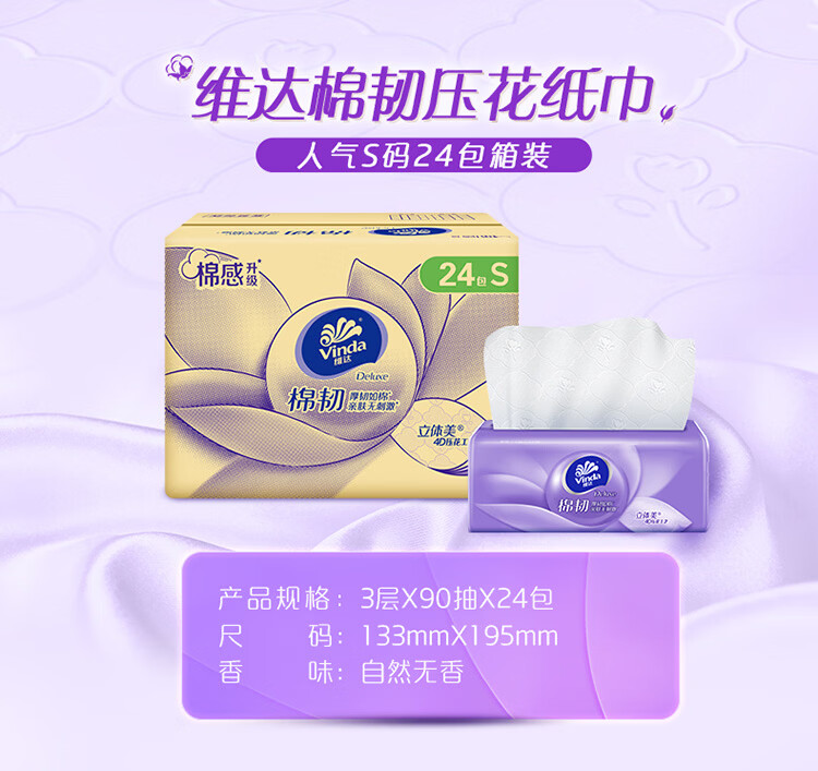 维达抽纸棉韧 立体压花 家用抽取式餐巾纸面巾纸 母婴可用 3层 90抽*72包 【到手3箱】
