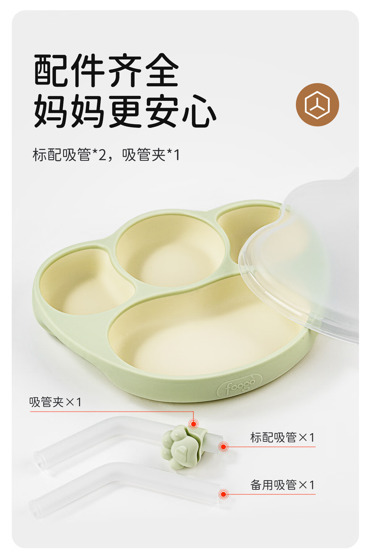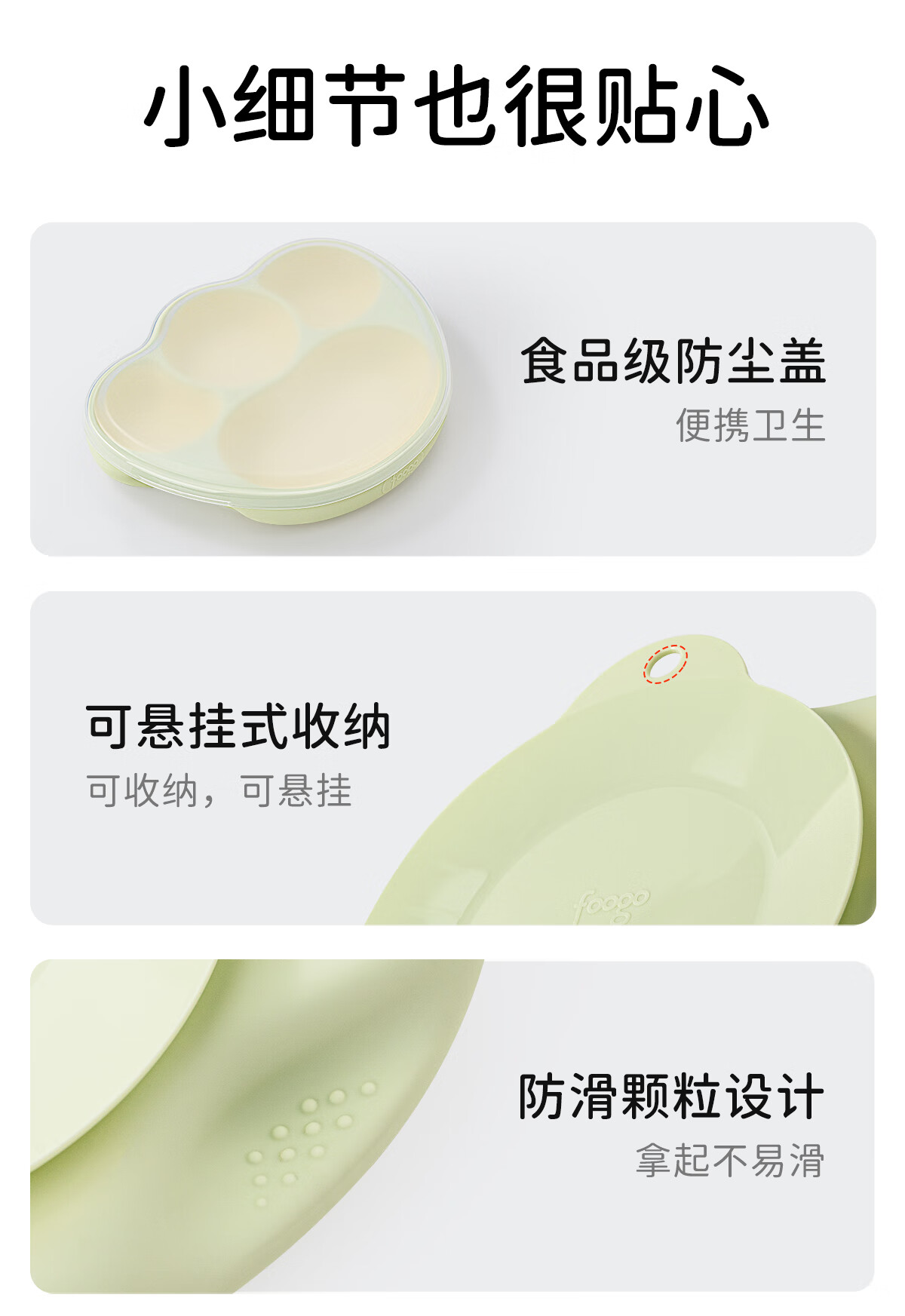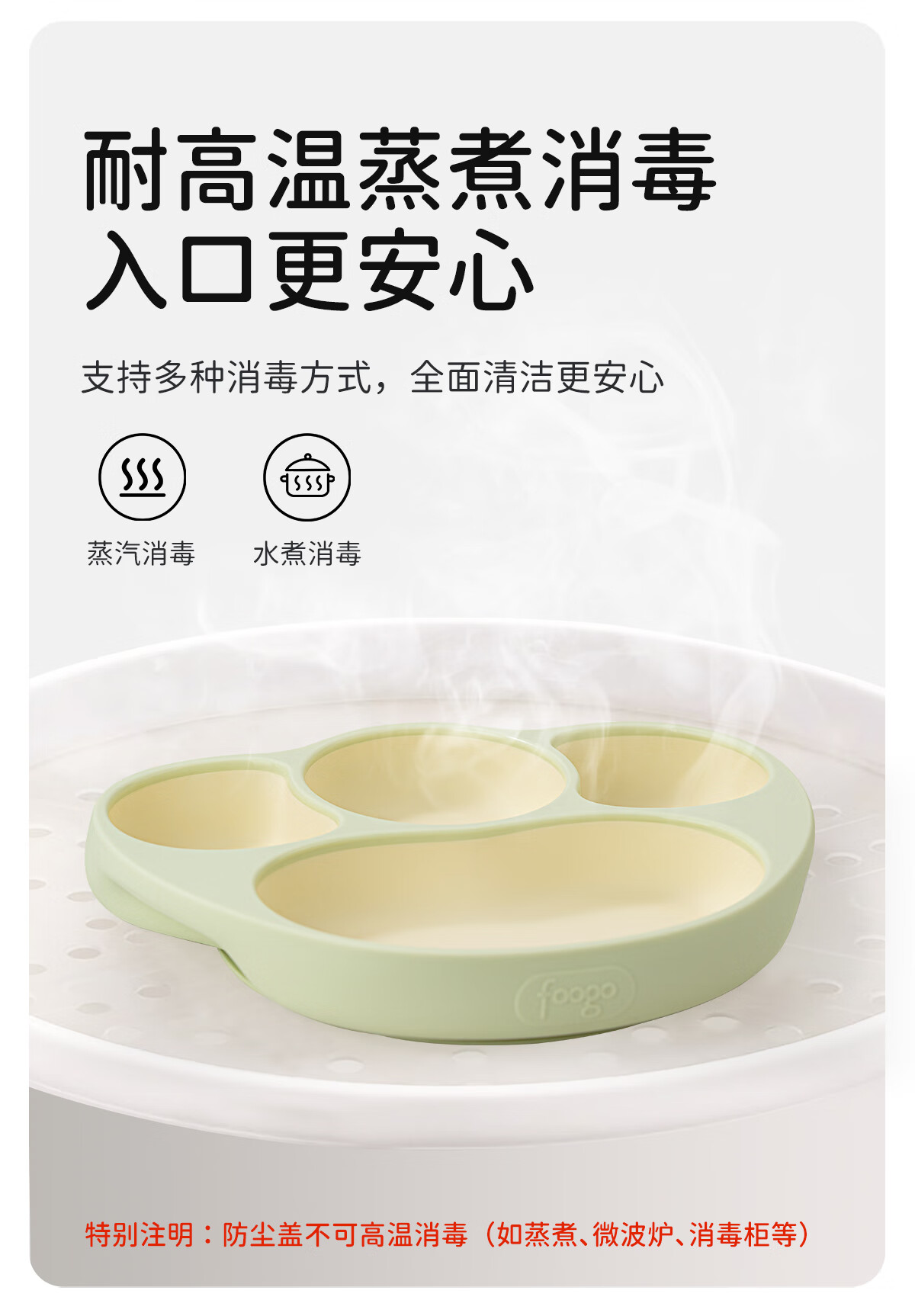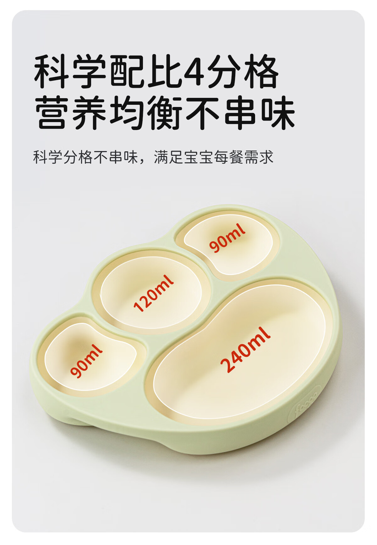 膳魔师(THERMOS)foogo宝宝硅胶餐具儿童分格餐盘婴幼儿摔防辅食碗 绿