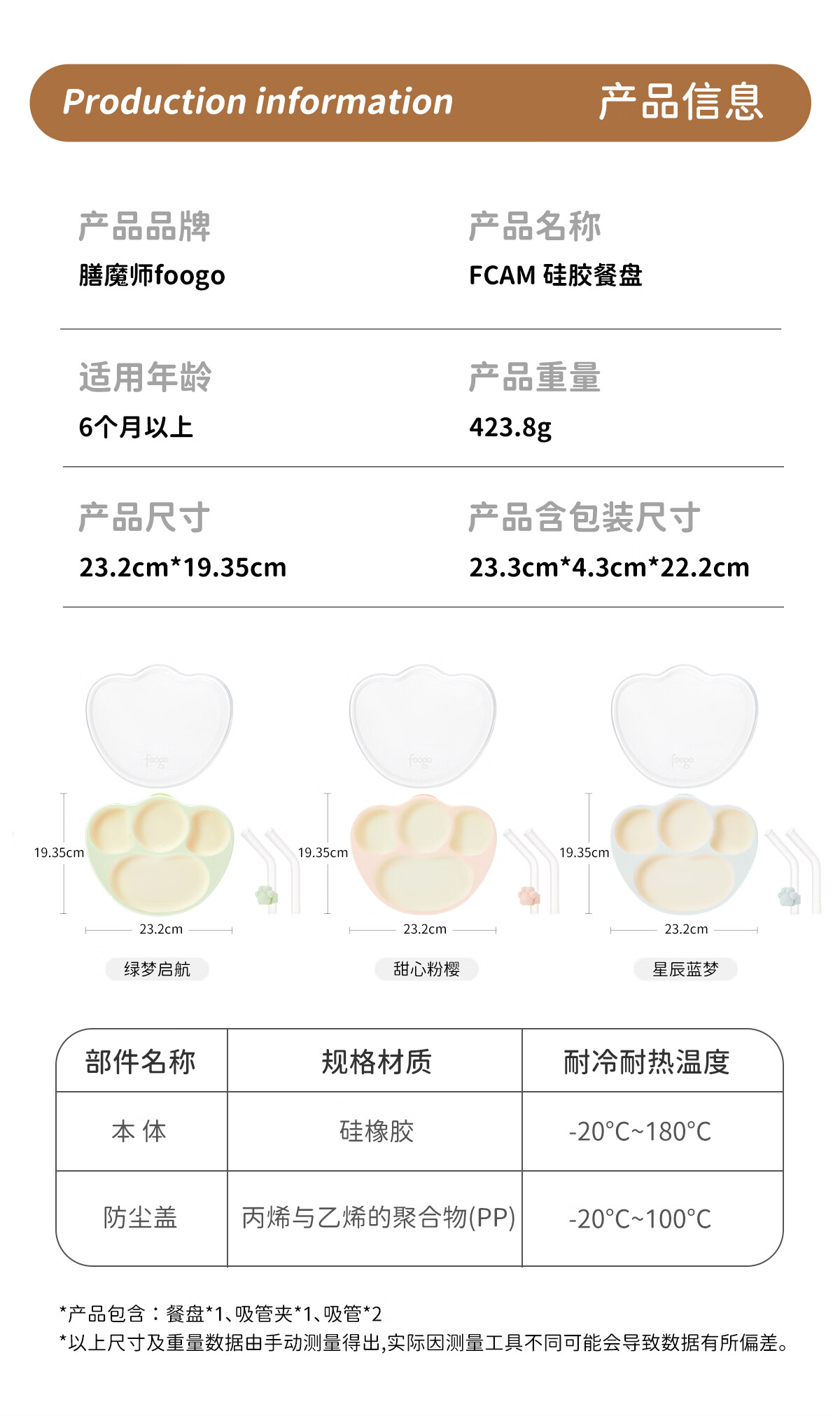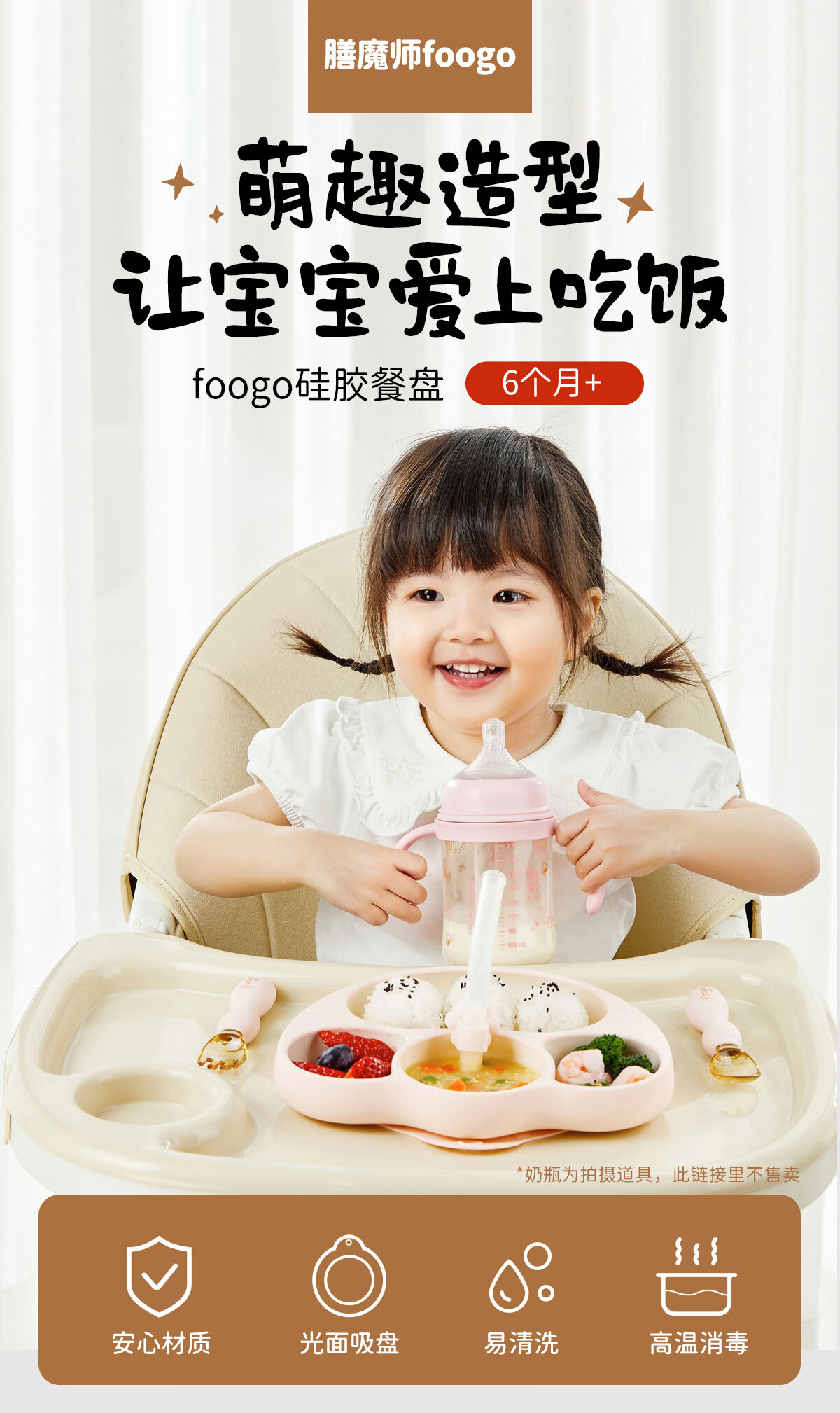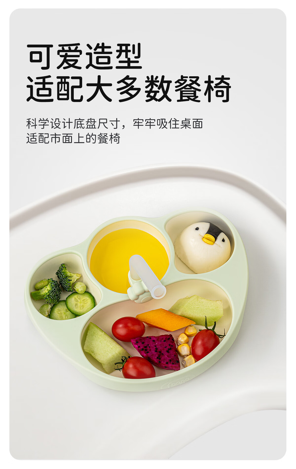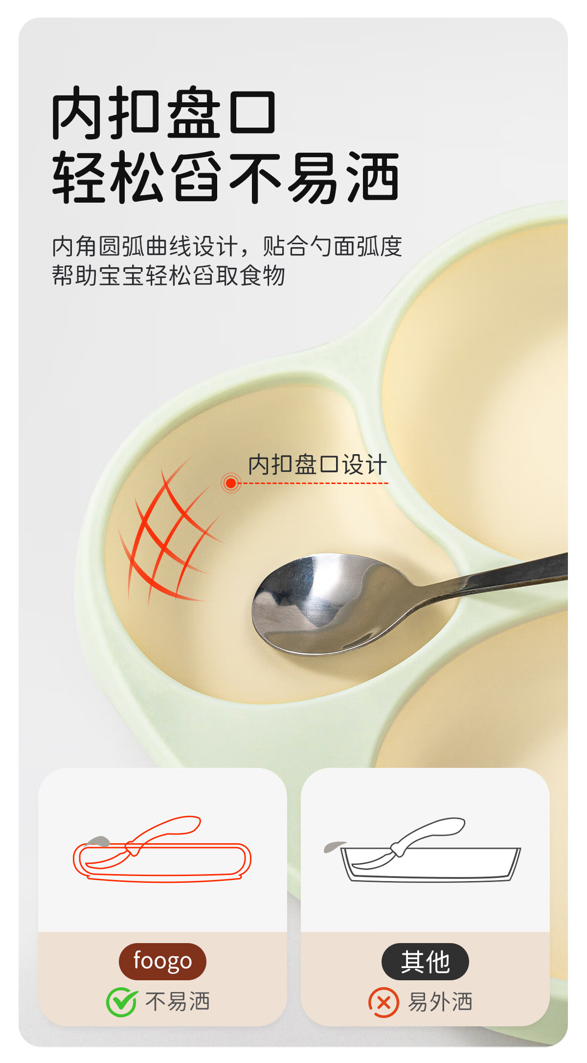 膳魔师(THERMOS)foogo宝宝硅胶餐具儿童分格餐盘婴幼儿摔防辅食碗 绿