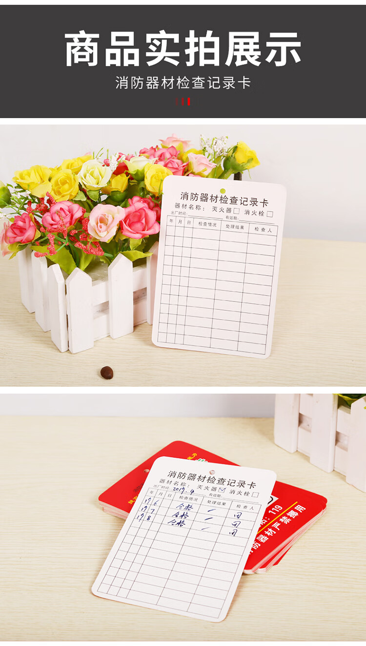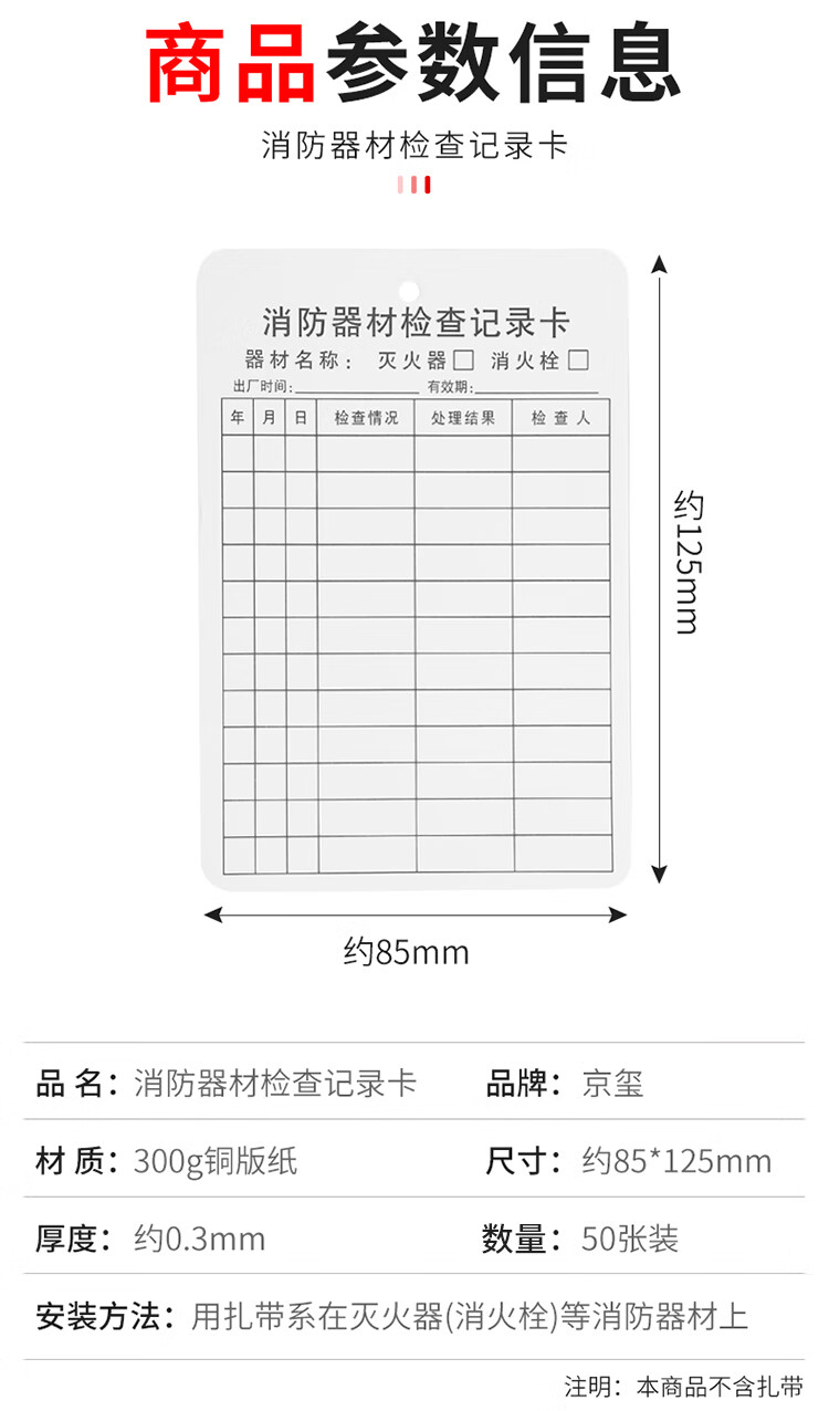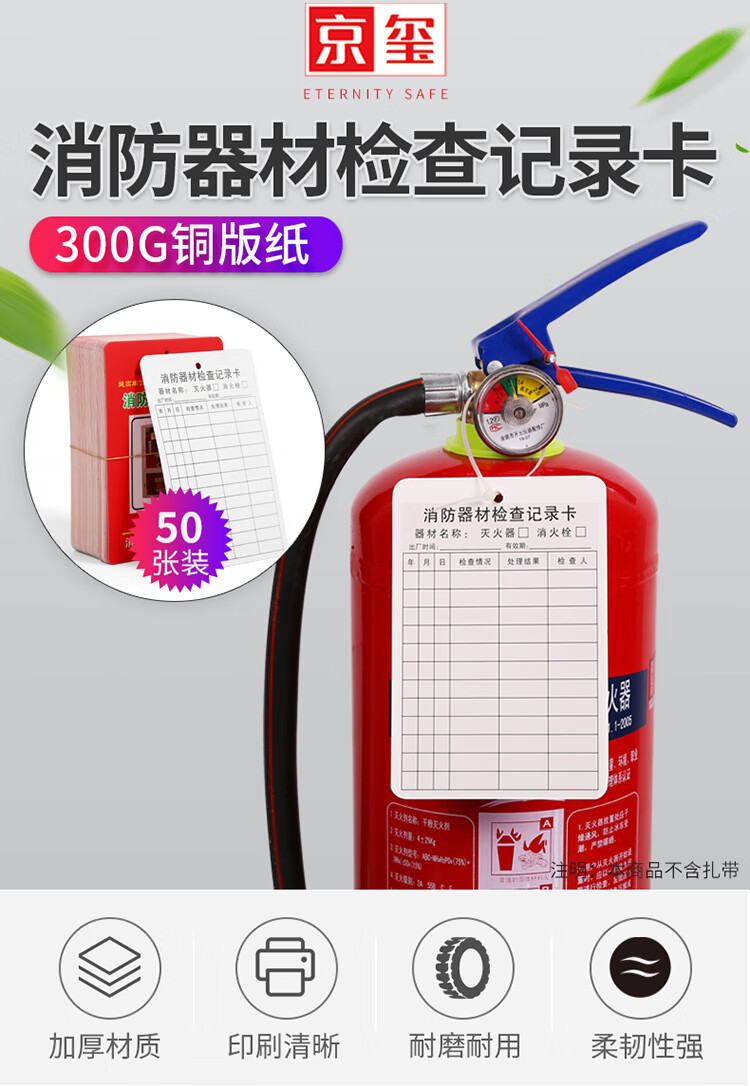 京玺 消防器材检查卡灭火器消火栓记录卡维修巡检养护登记表 50张装