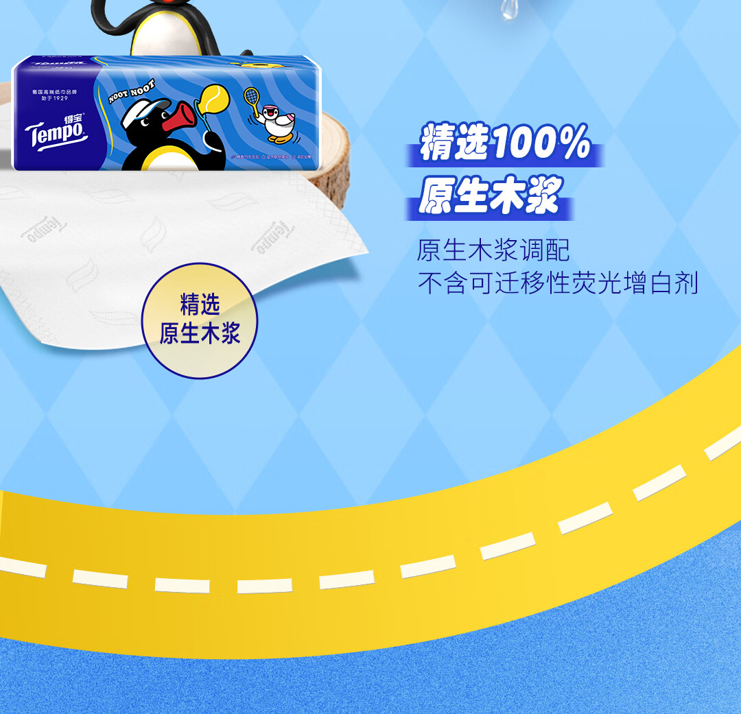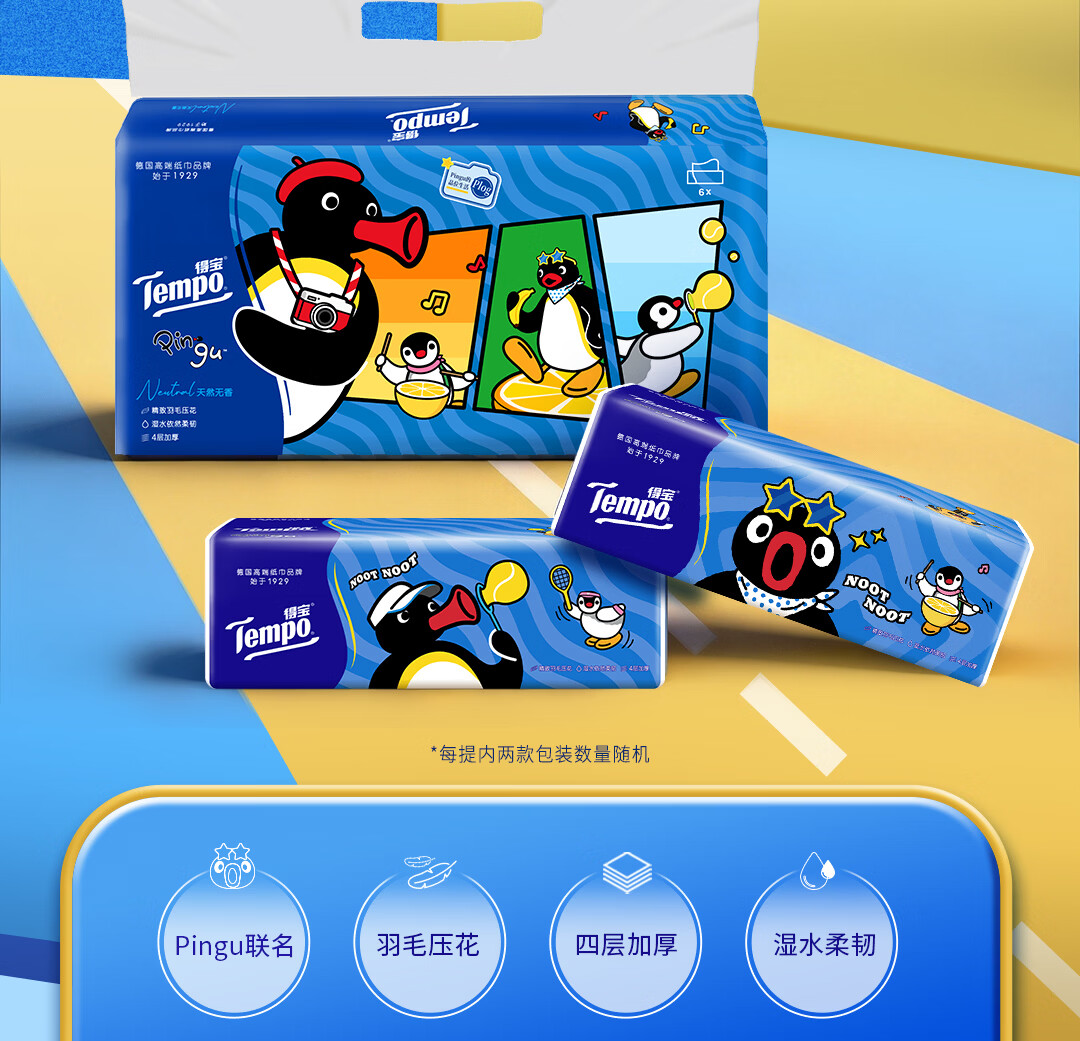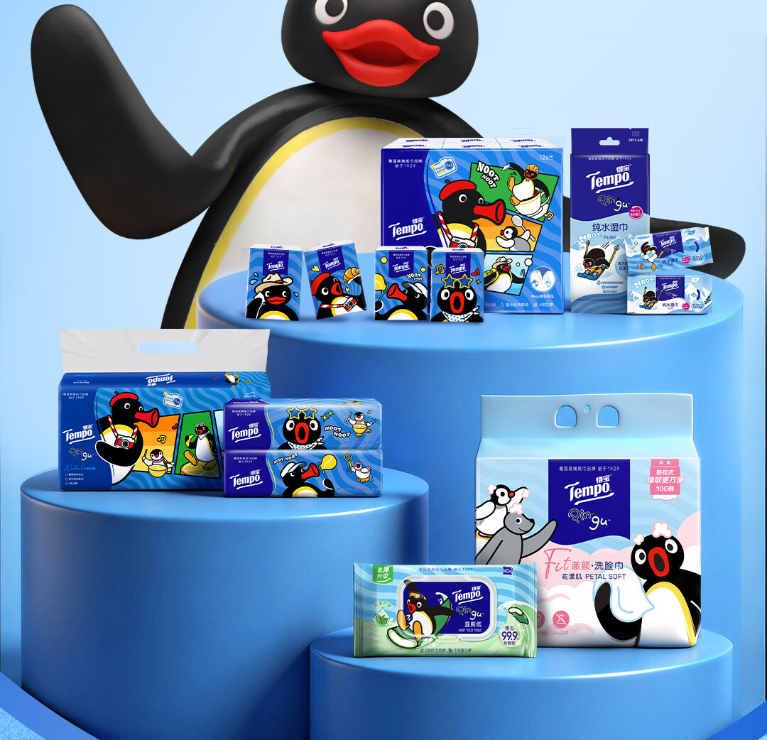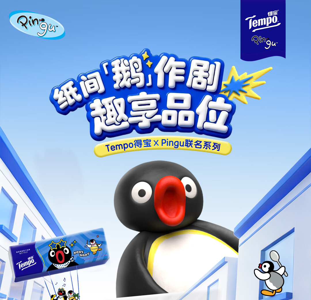 得宝(TEMPO)Pingu联名款抽纸 4层加厚80抽*15包纸巾 餐巾纸 卫生纸
