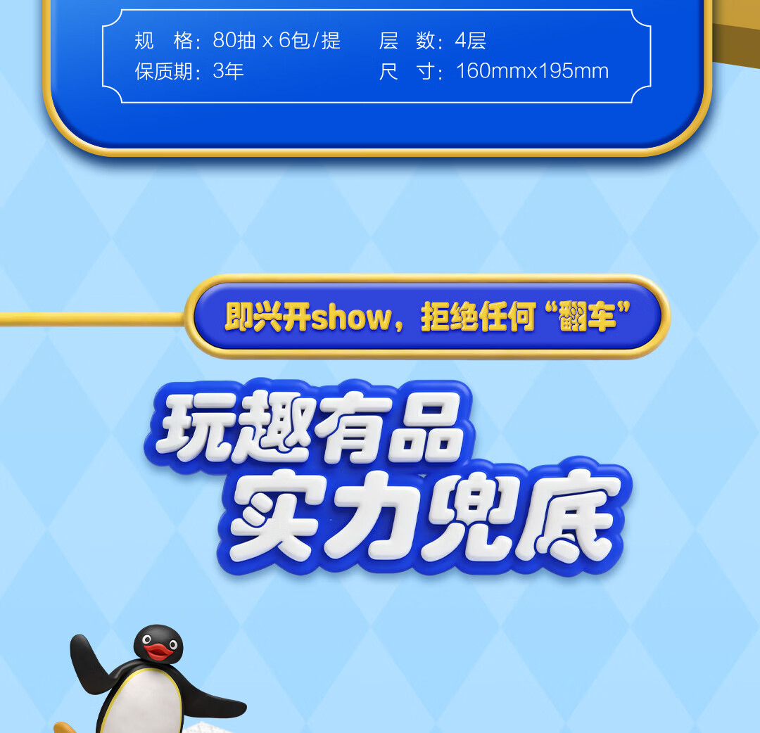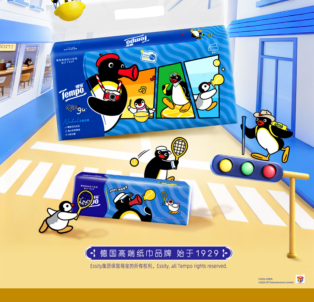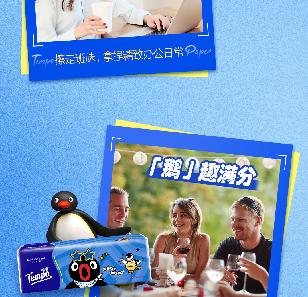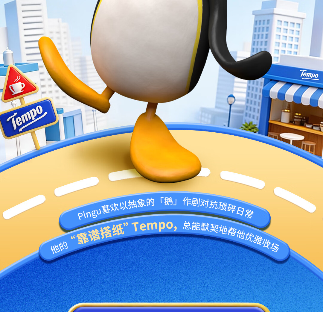 得宝(TEMPO)Pingu联名款抽纸 4层加厚80抽*15包纸巾 餐巾纸 卫生纸
