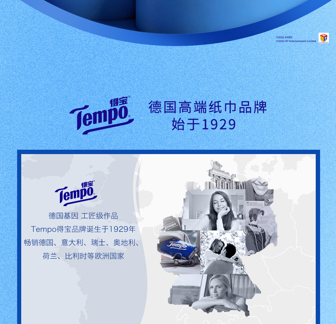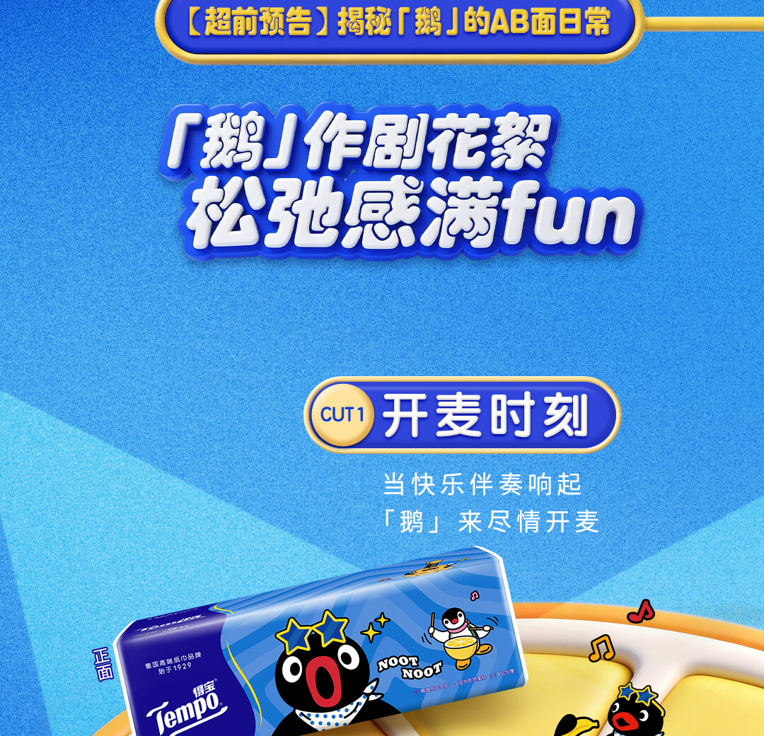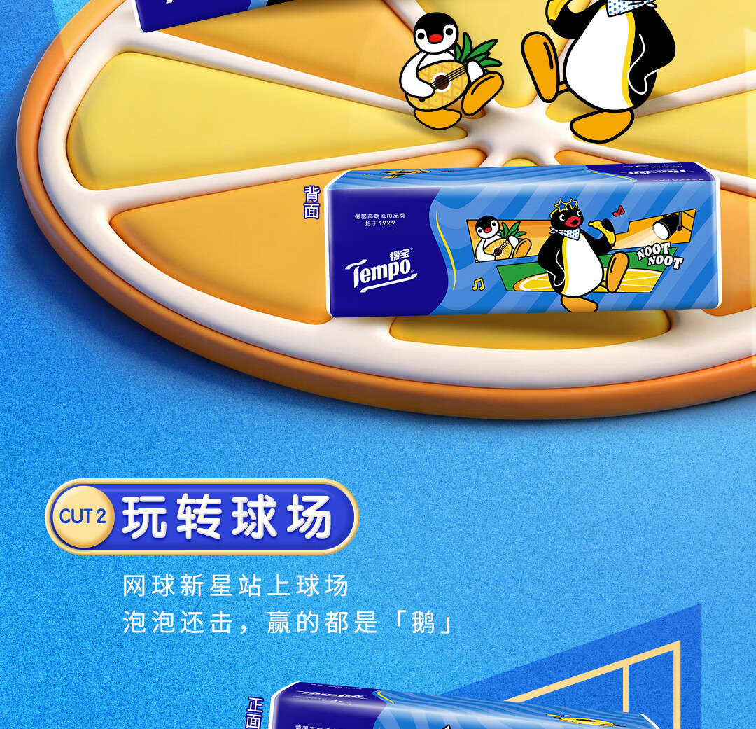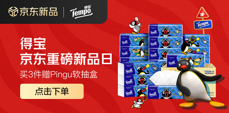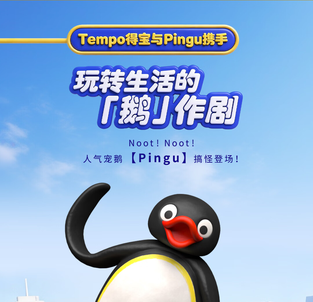 得宝(TEMPO)Pingu联名款抽纸 4层加厚80抽*15包纸巾 餐巾纸 卫生纸