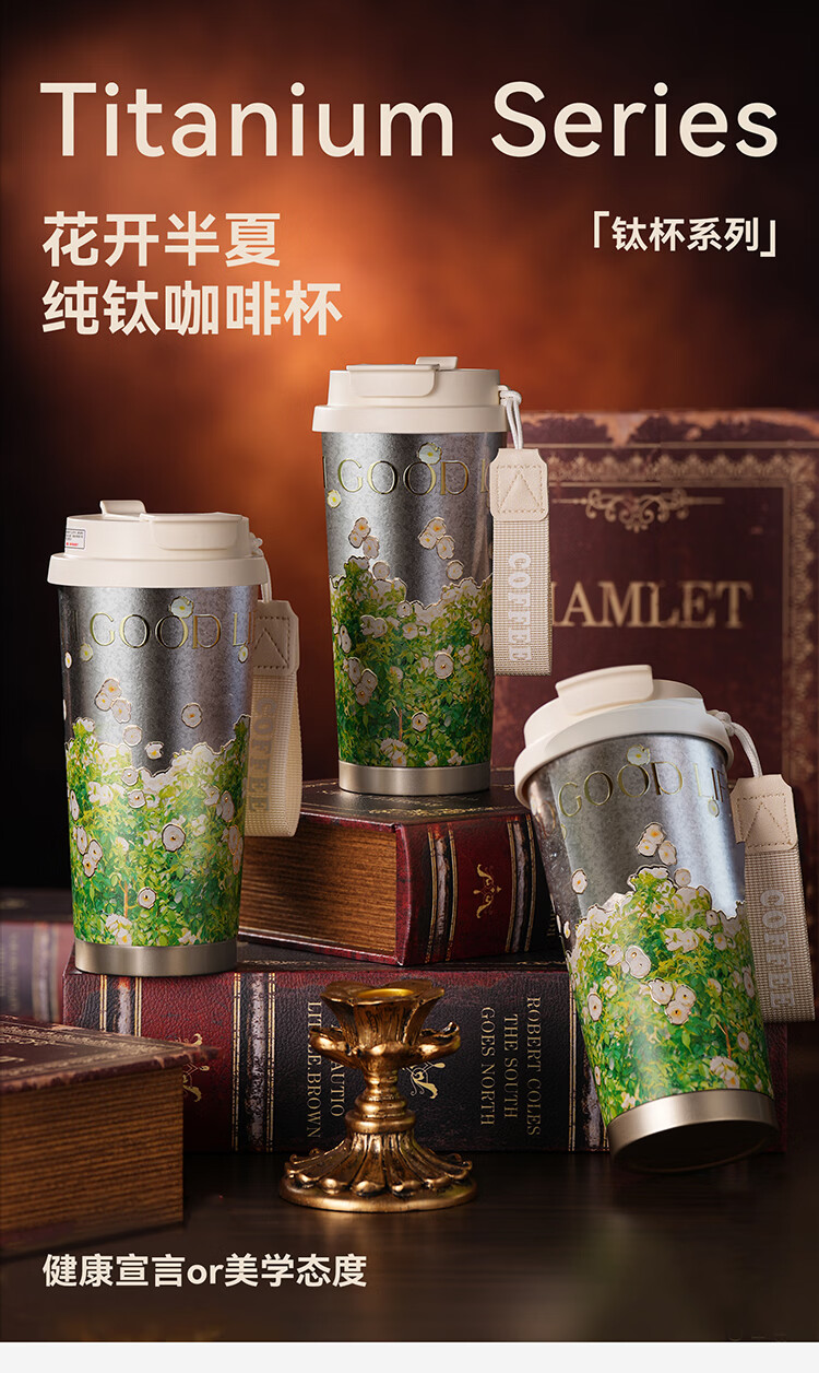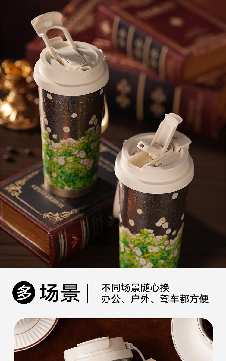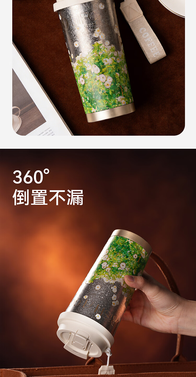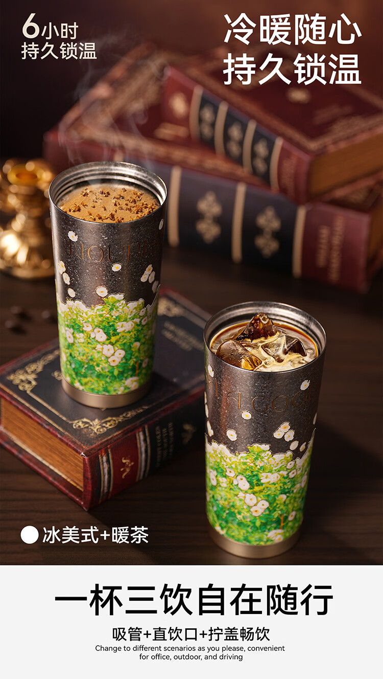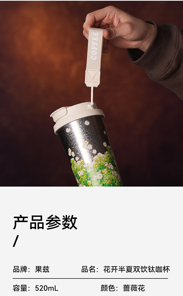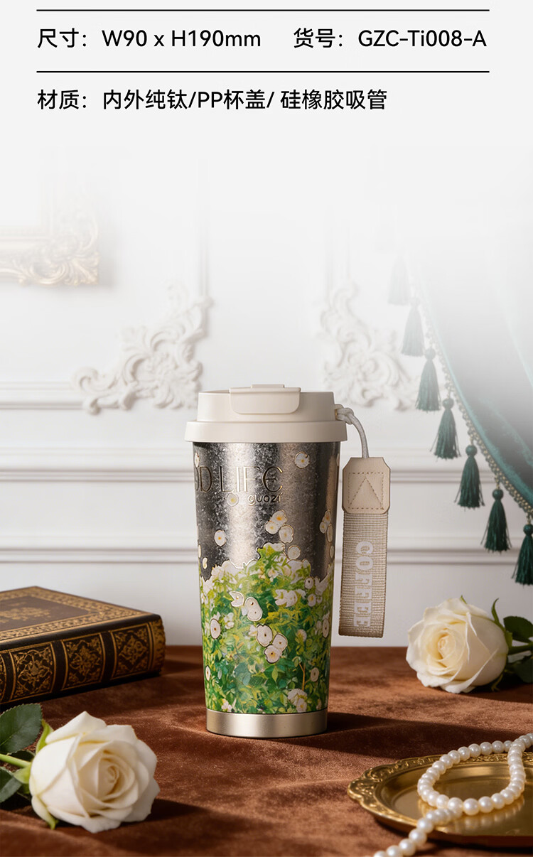 果兹(GUOZI)纯钛保温杯男女士高颜值双饮咖啡杯吸管杯三八节女神礼物520ml