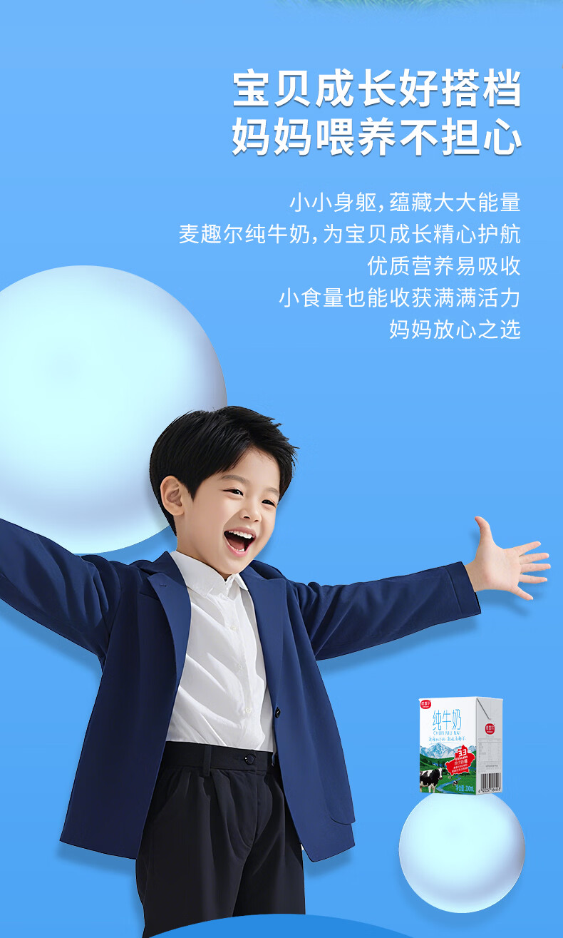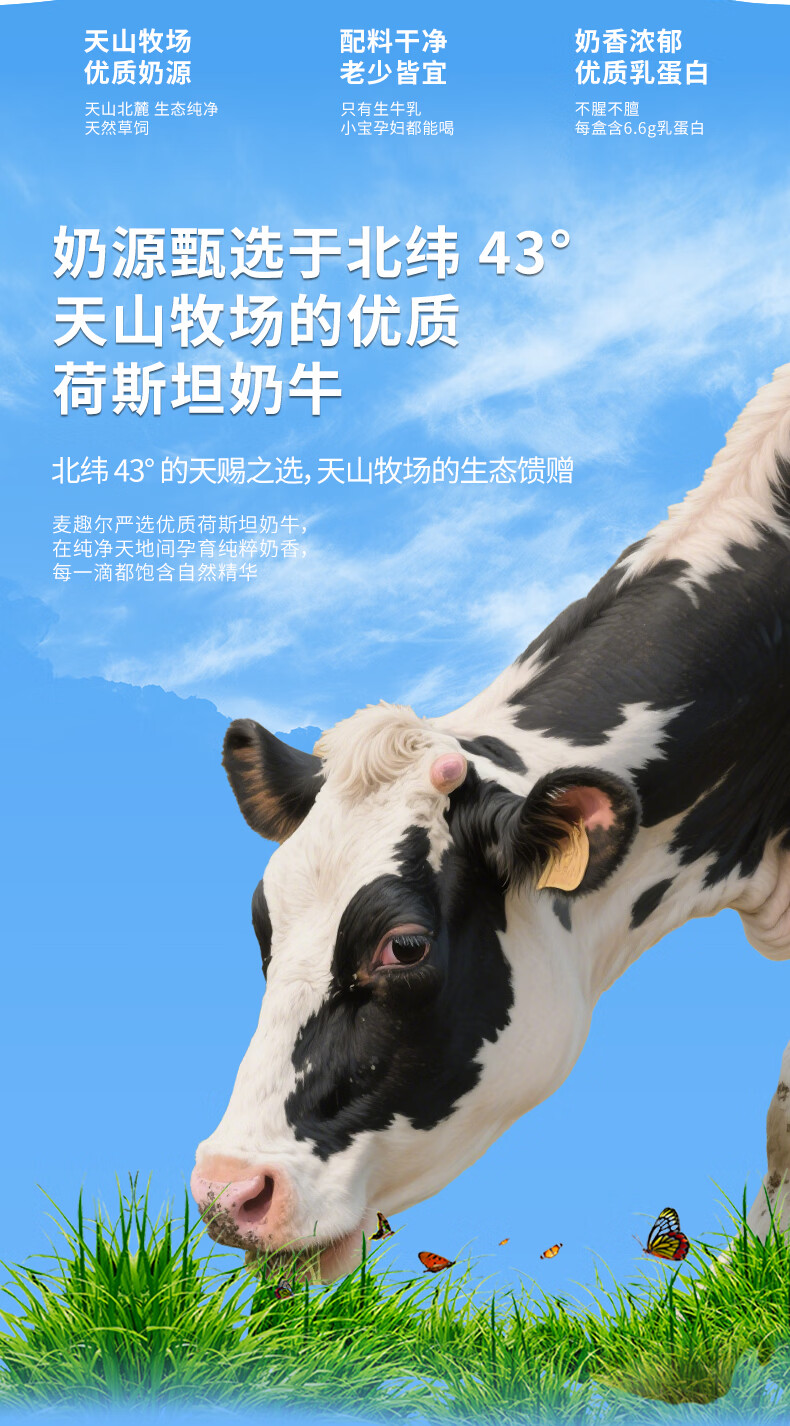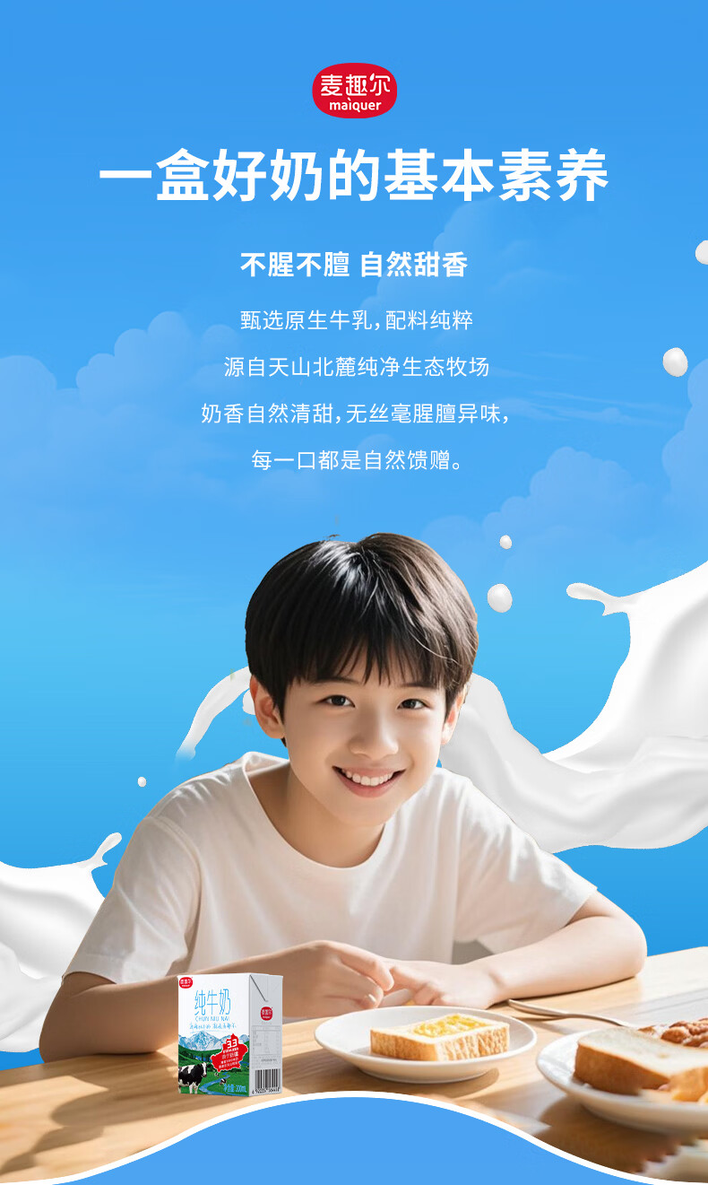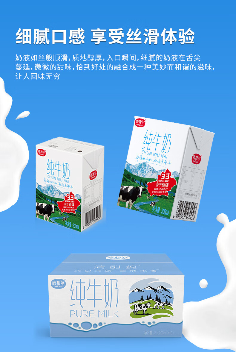 麦趣尔新疆天山牧场全脂纯牛奶200ml*10盒 3.3g乳蛋白整箱装【11月】 3.3g蛋白纯牛奶200ml*10*2箱