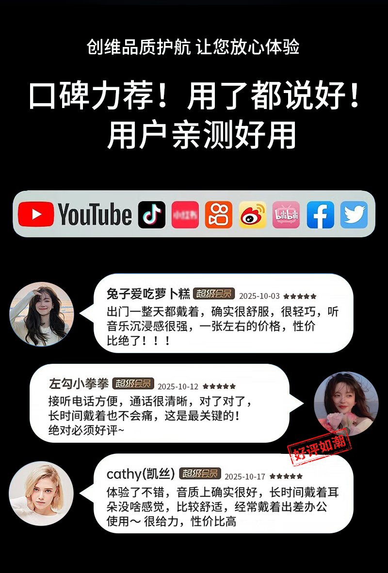 萨勒芬妮【OpenearClip华强北顶配款】蓝牙耳机耳夹开放式无线跑步运动通话降噪挂耳骨传导适用于华为 【星空黑】全景音效丨久戴舒适 超长续航丨超清通话丨AI降噪