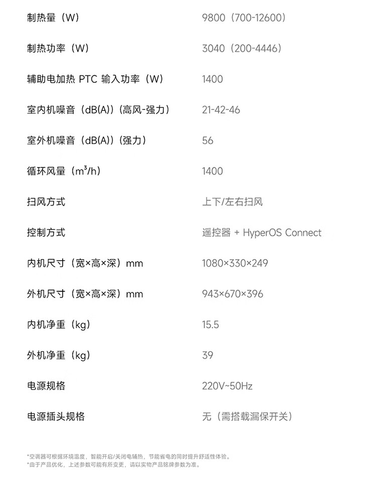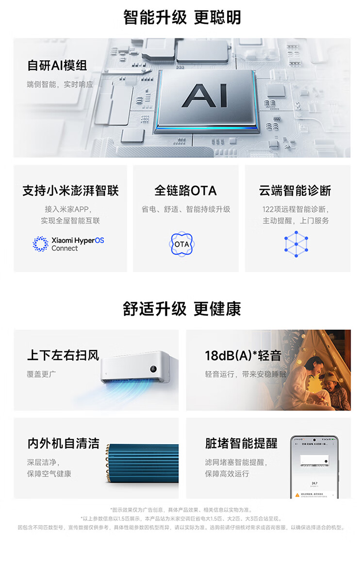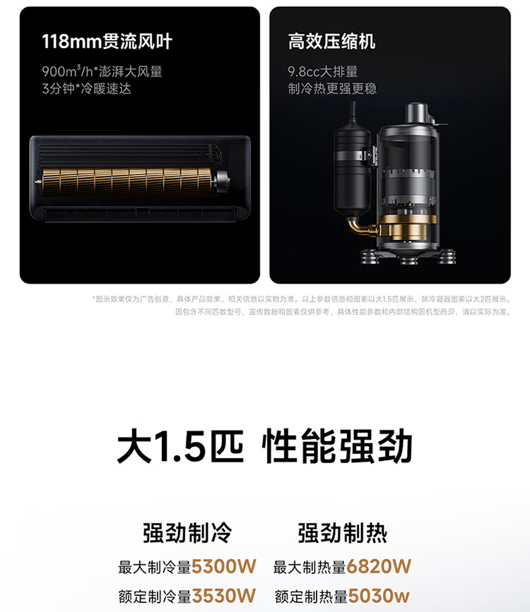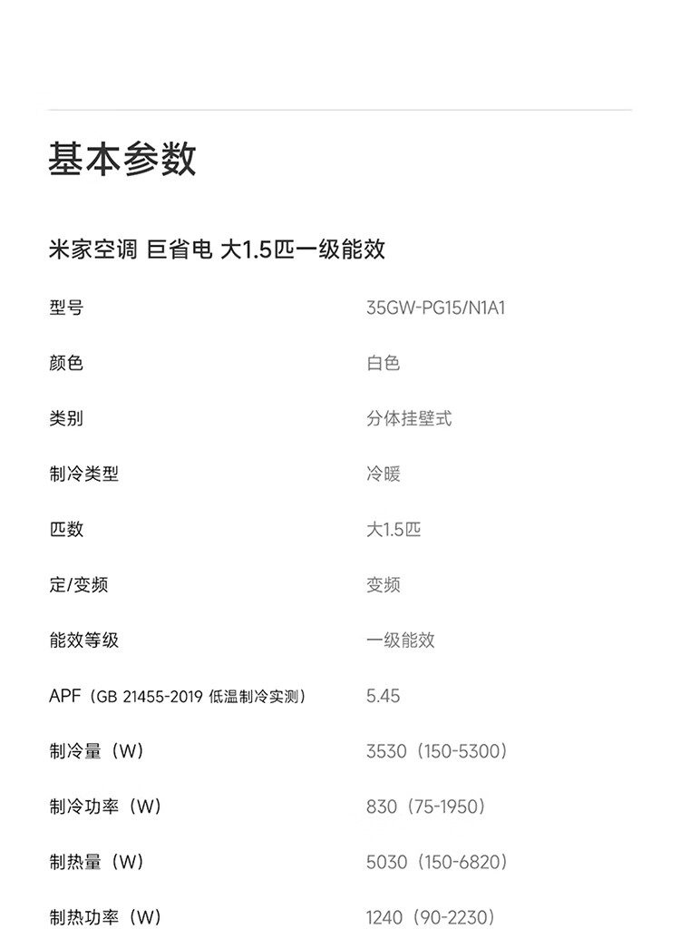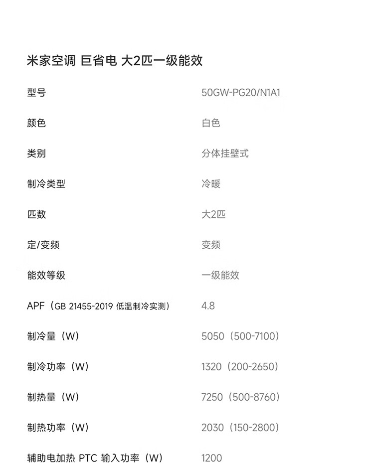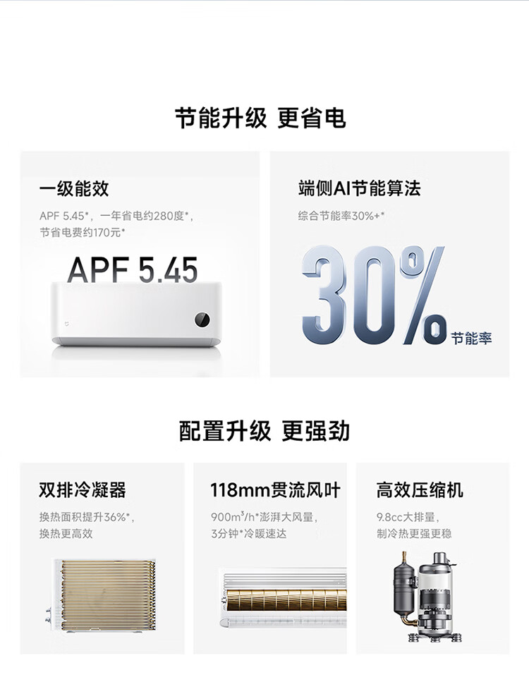 小米空调 米家 巨省电双排款 3匹一级能效 双排铜管内外机 空调挂机72GW-PG30/N1A1 整机十年质保