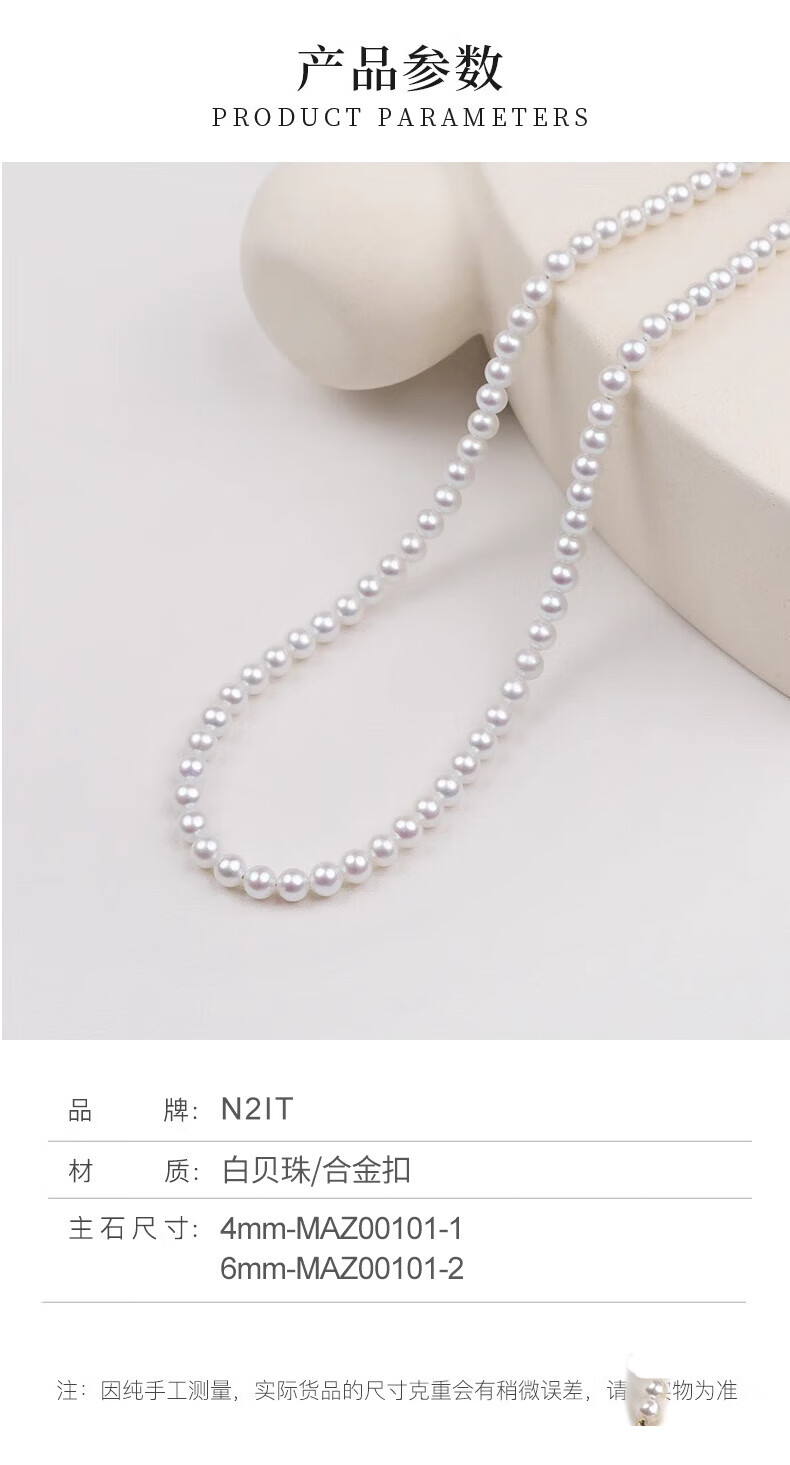 N2it流年仿珍珠贝珠合金镀金项链吊坠38女神妇女节送老婆礼物 流年贝珠项链