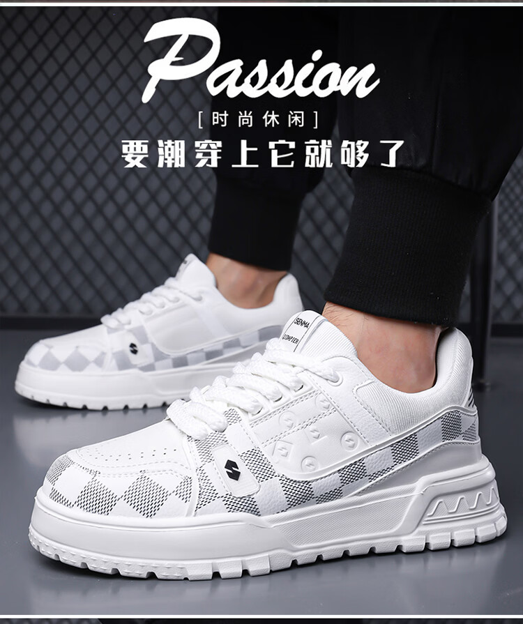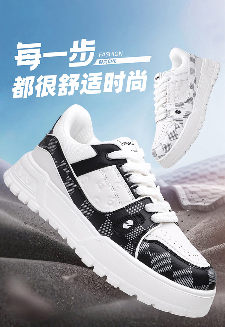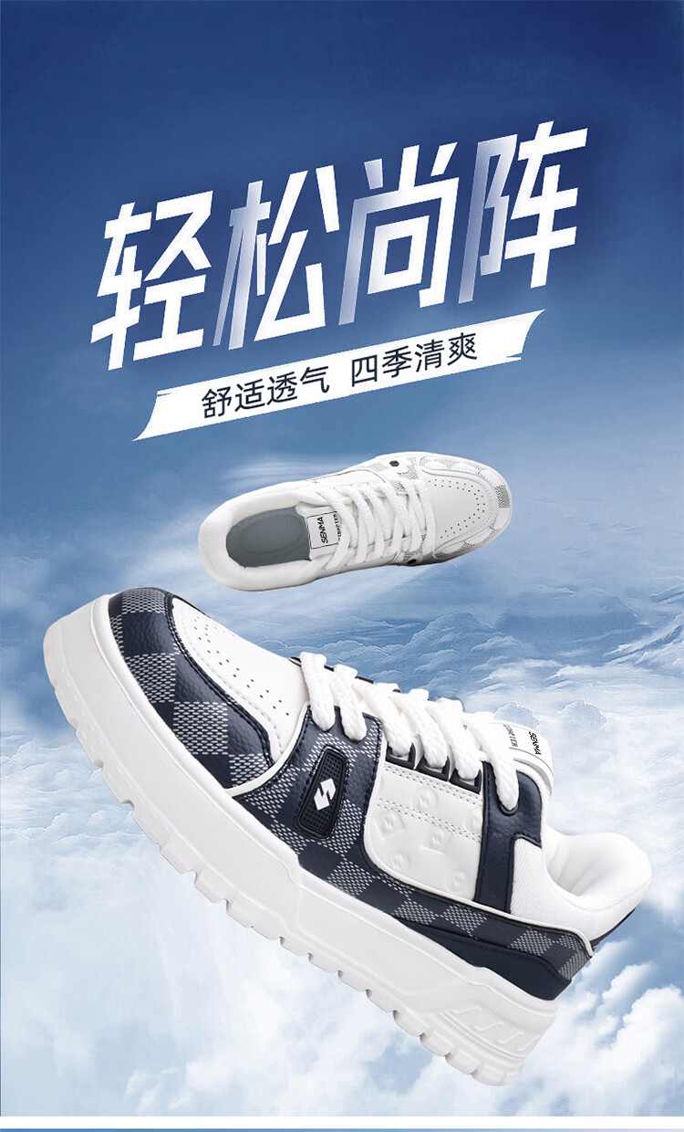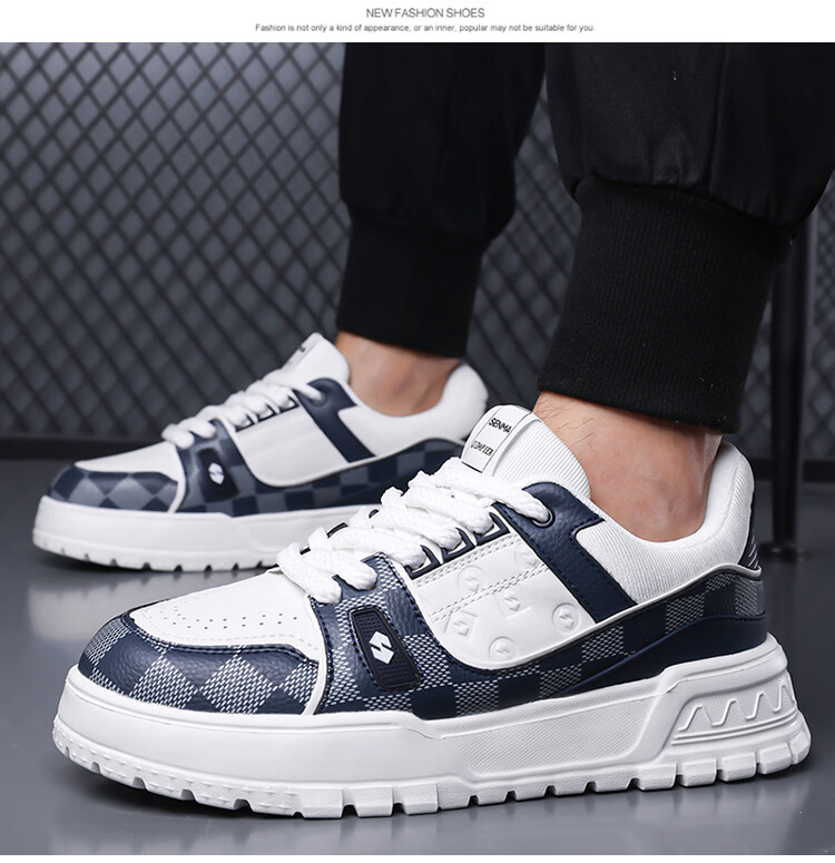 森馬男鞋春季2026新款潮牌百搭皮面休闲板鞋男士厚底增高小白运动潮鞋 白蓝【基础款】 38 标准码数/现货秒发