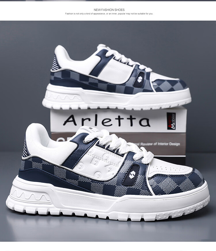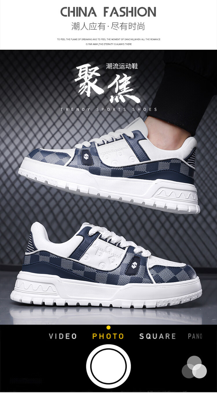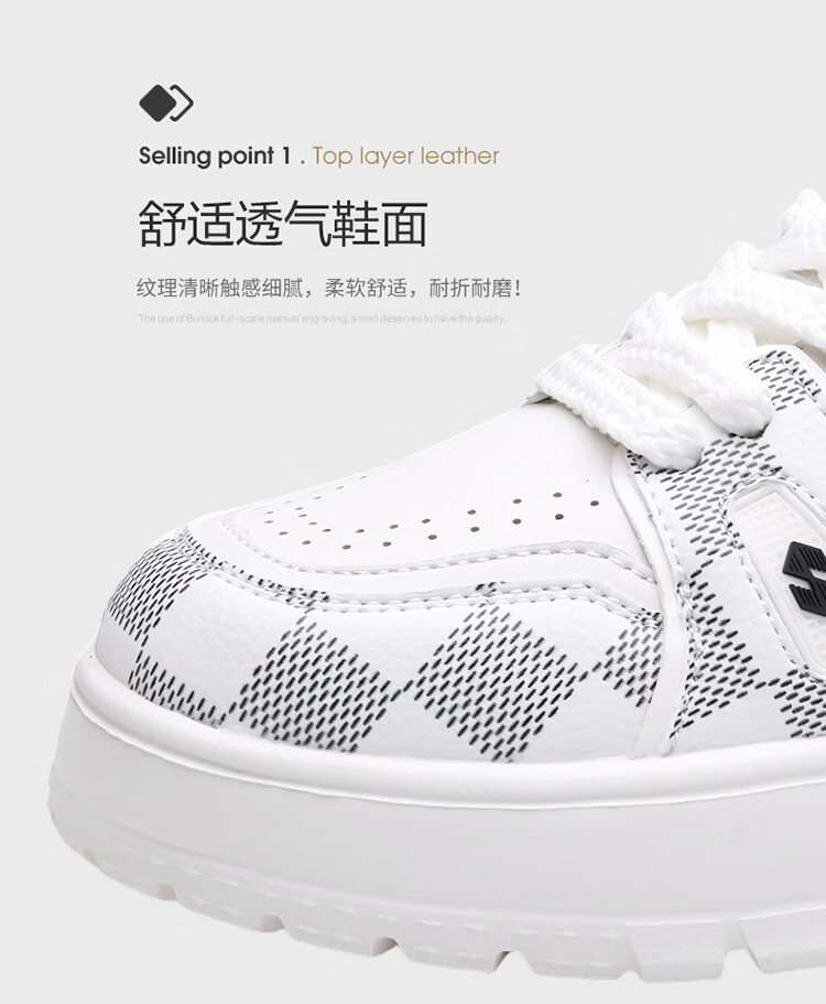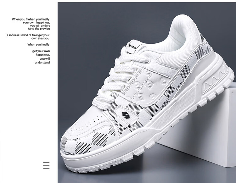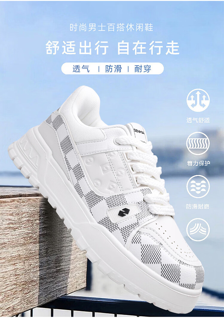 森馬男鞋春季2026新款潮牌百搭皮面休闲板鞋男士厚底增高小白运动潮鞋 白蓝【基础款】 38 标准码数/现货秒发