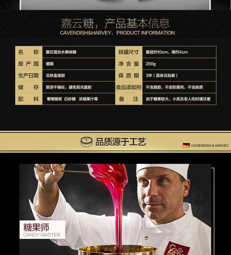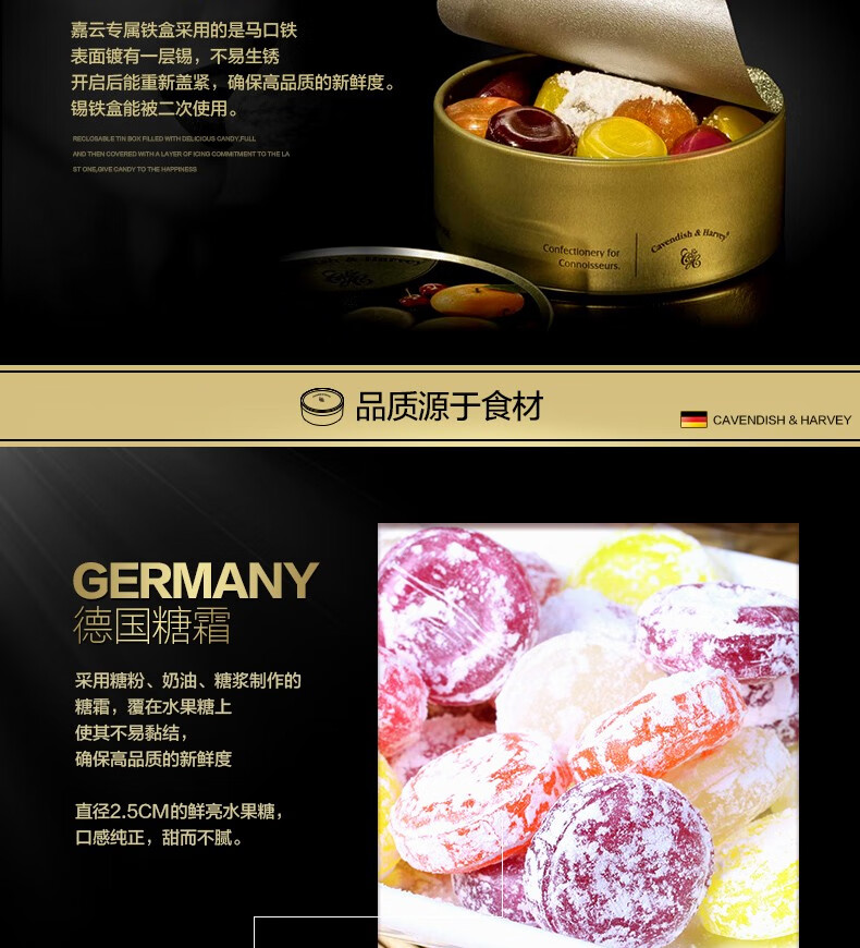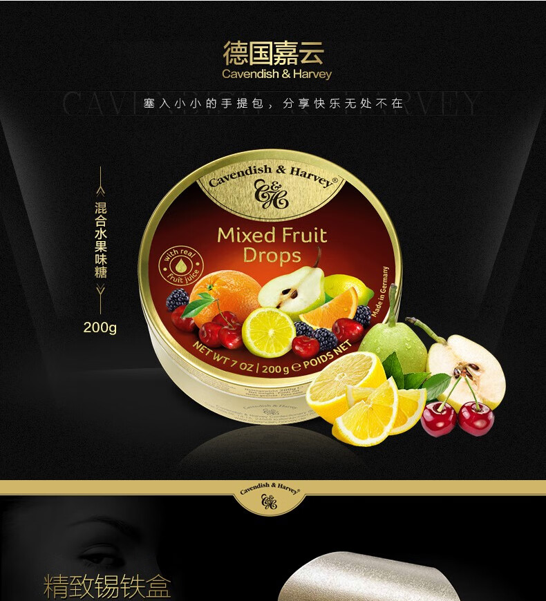 嘉云(Cavendish&Harvey)混合水果味200g德国进口圣诞节礼物铁罐喜糖女生儿童零食水果硬糖