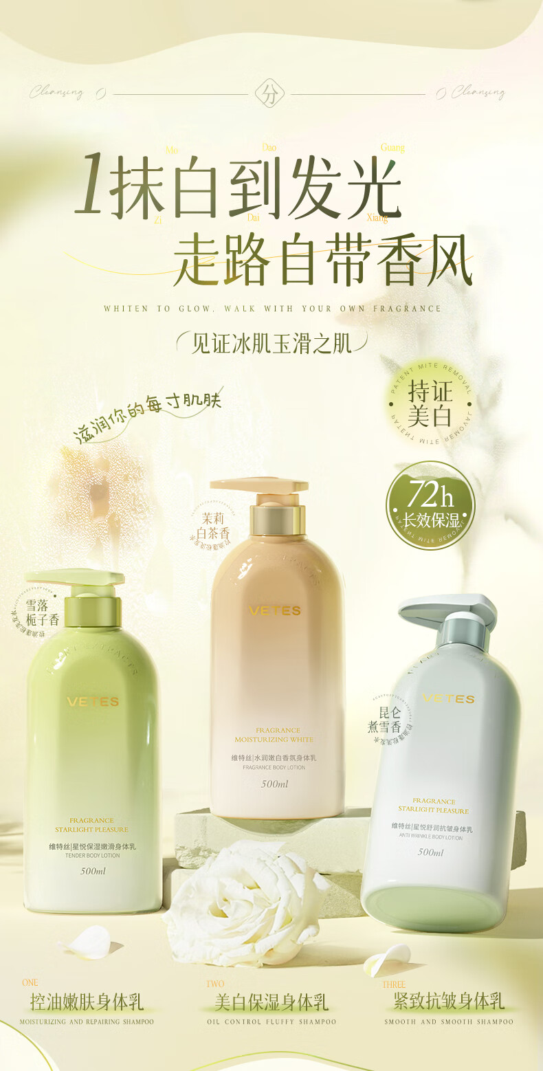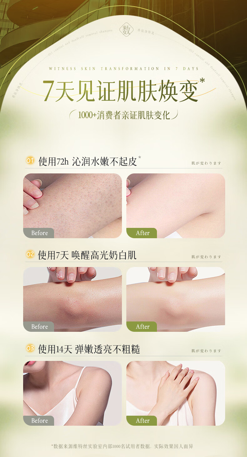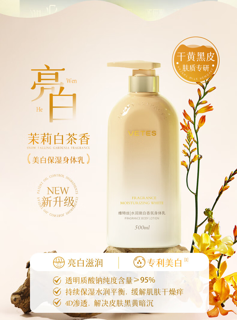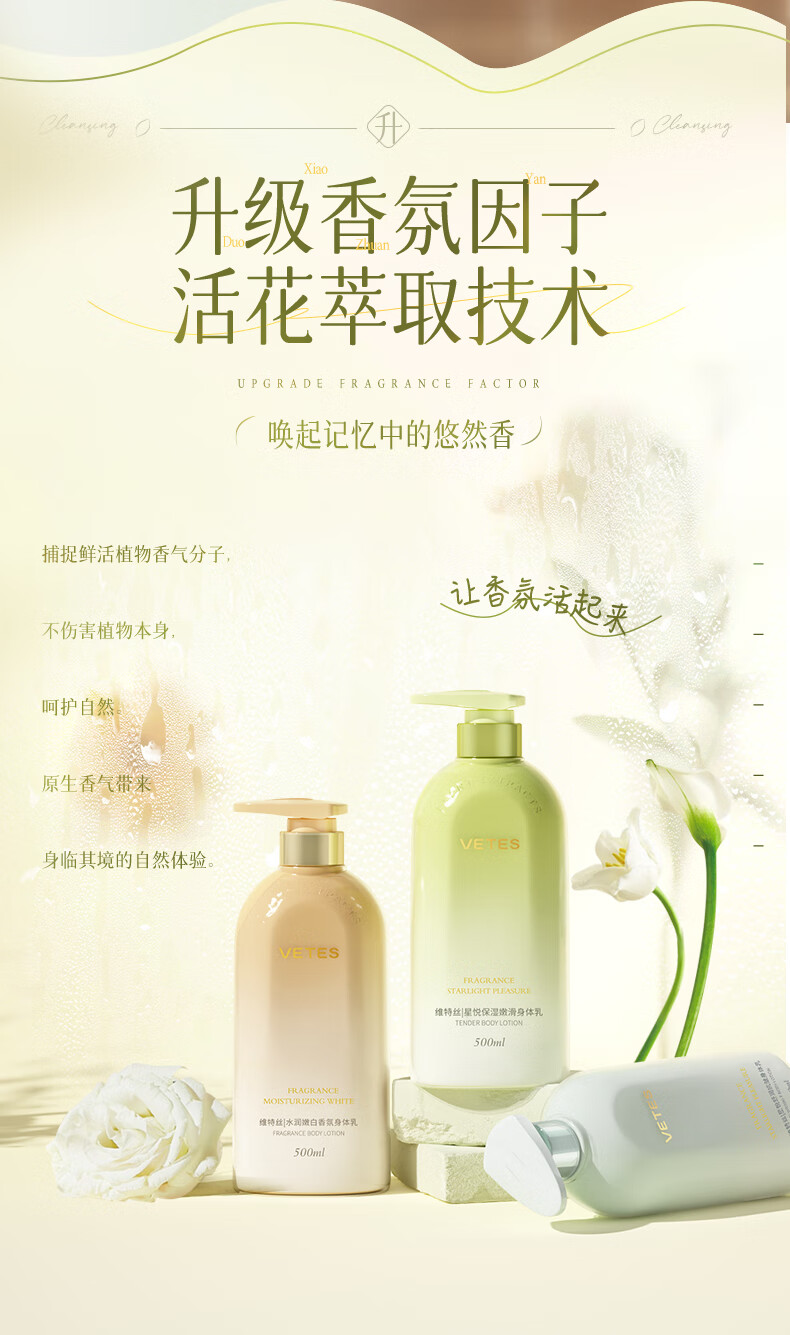 维特丝美白身体乳男女士持久留香72小时香体补水保湿干燥皮肤止痒润肤乳