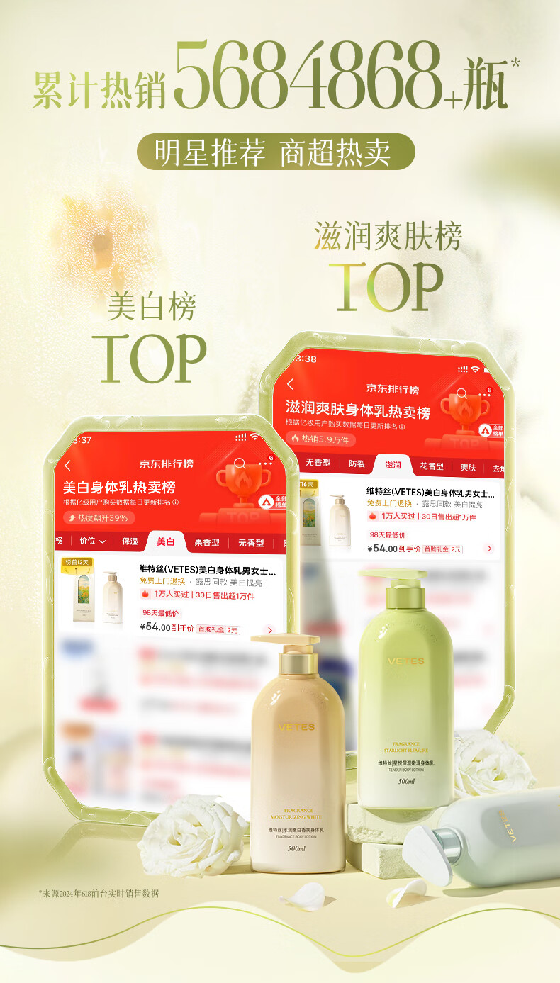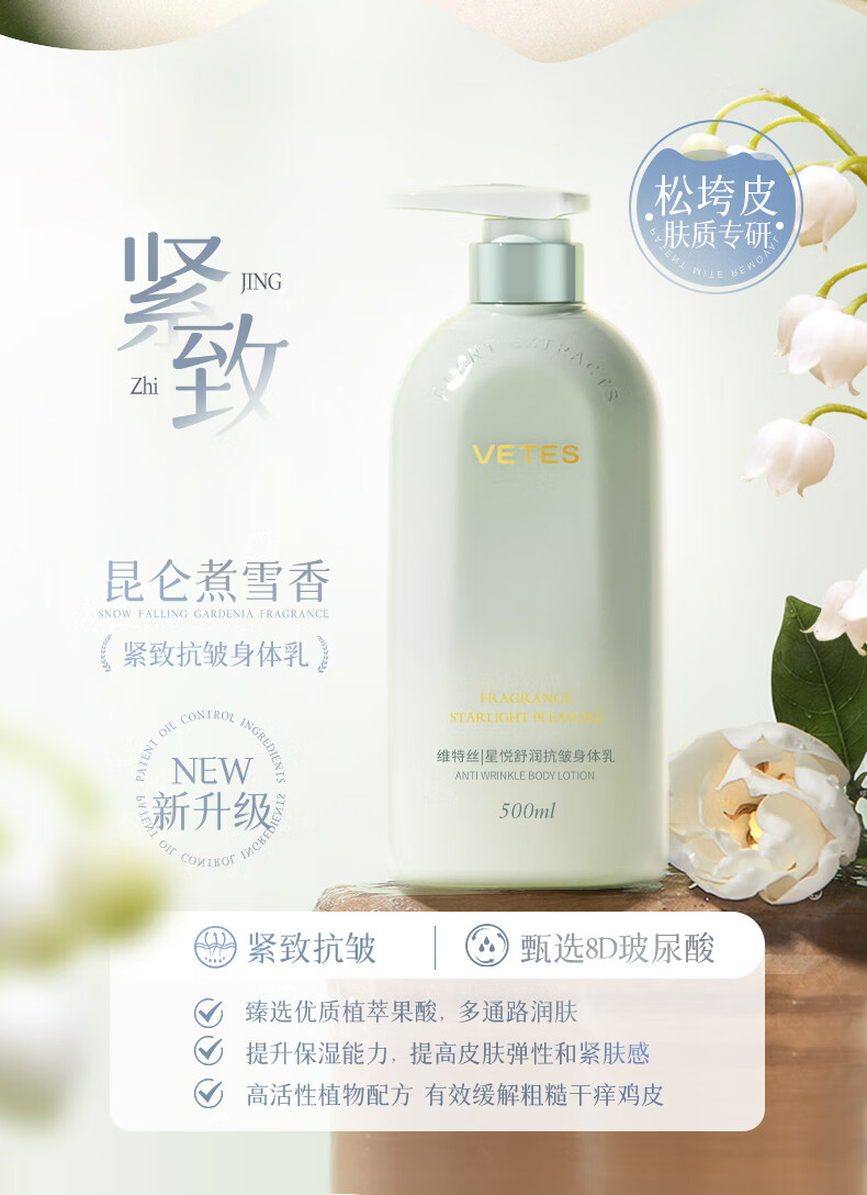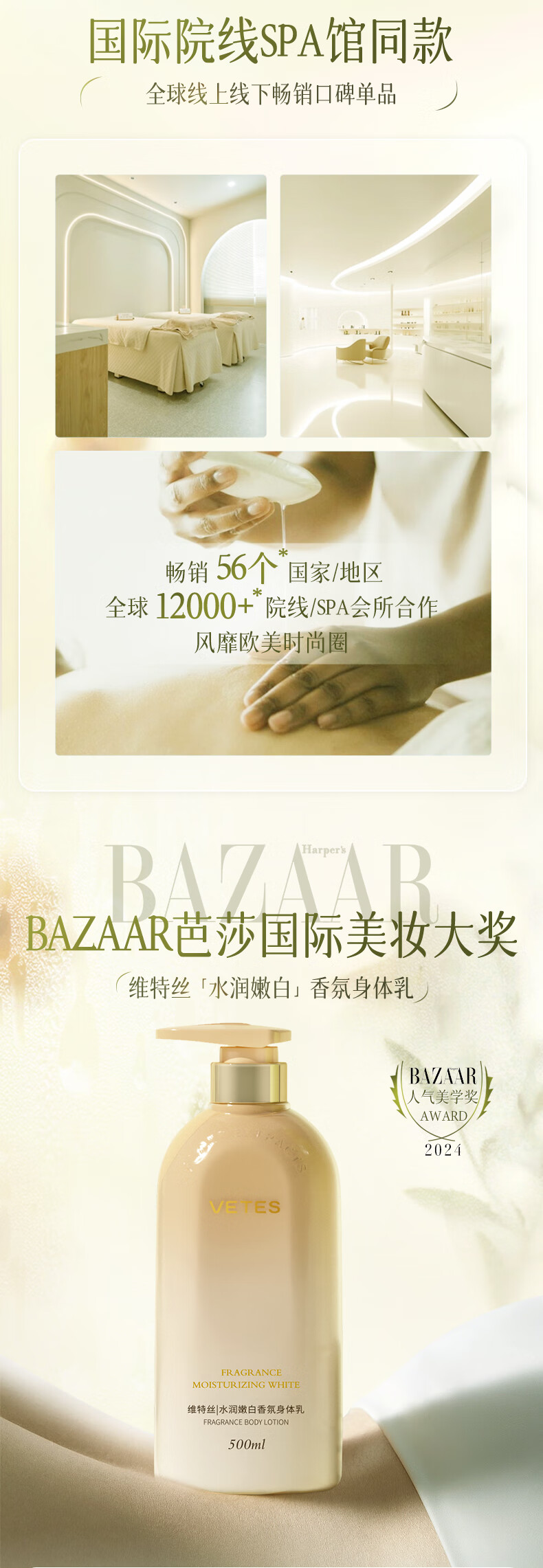 维特丝美白身体乳男女士持久留香72小时香体补水保湿干燥皮肤止痒润肤乳