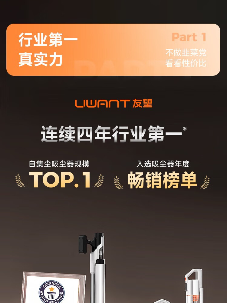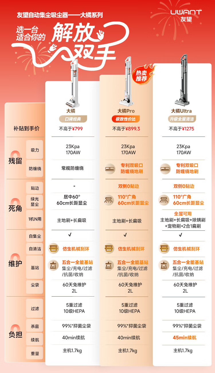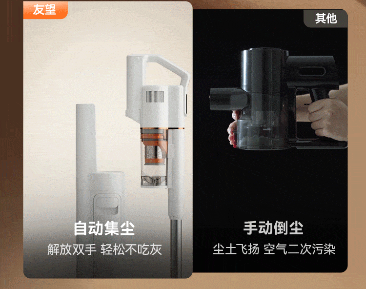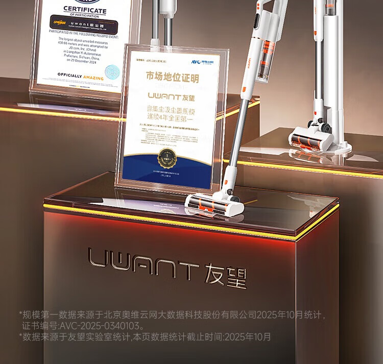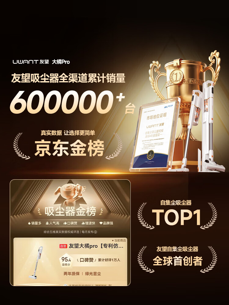 UWANT友望吸尘器大橘Pro自集尘【专利防缠 仿生刮环自清洁】小型车载家用大吸力无线吸尘器手持大功率