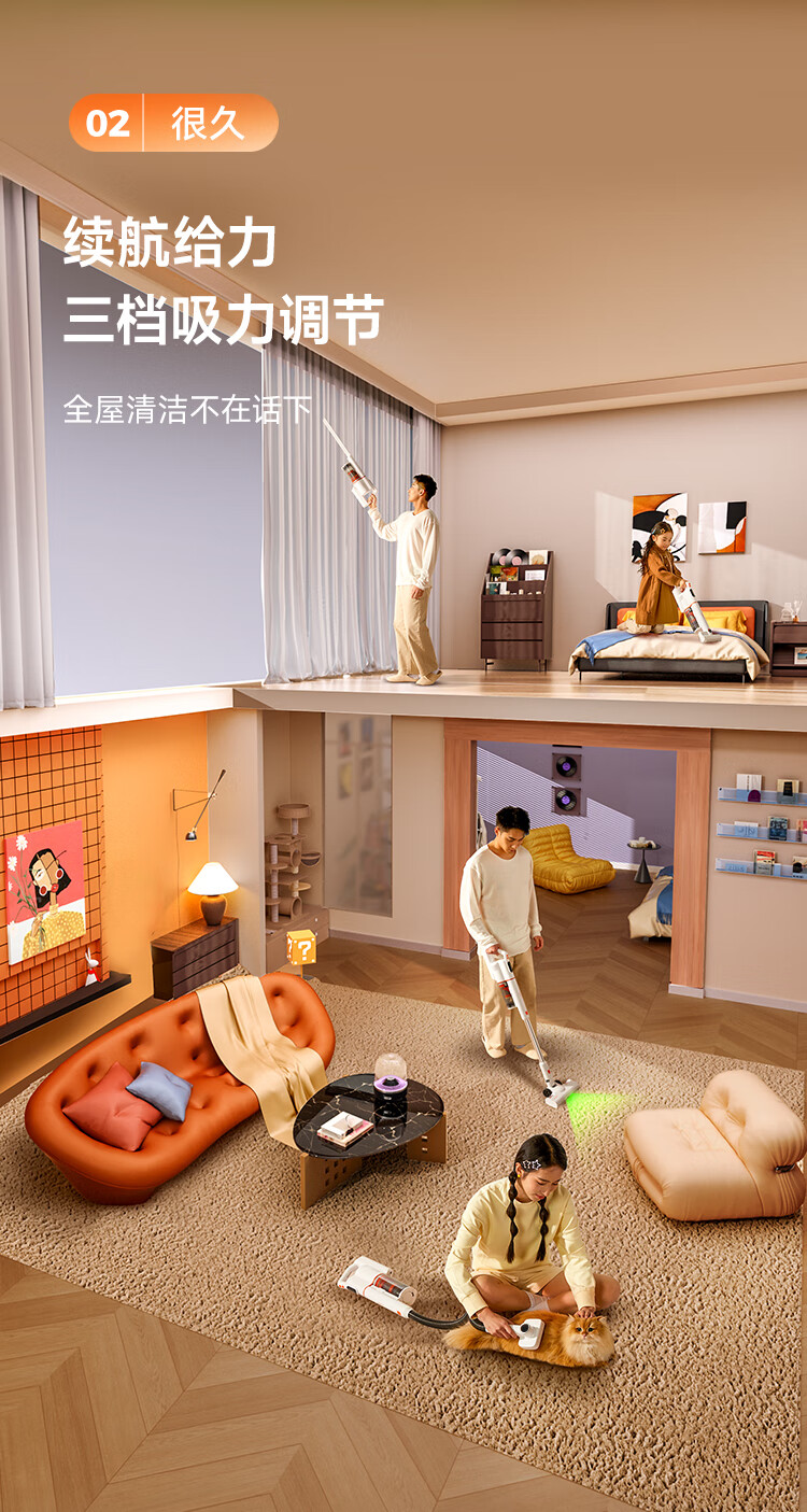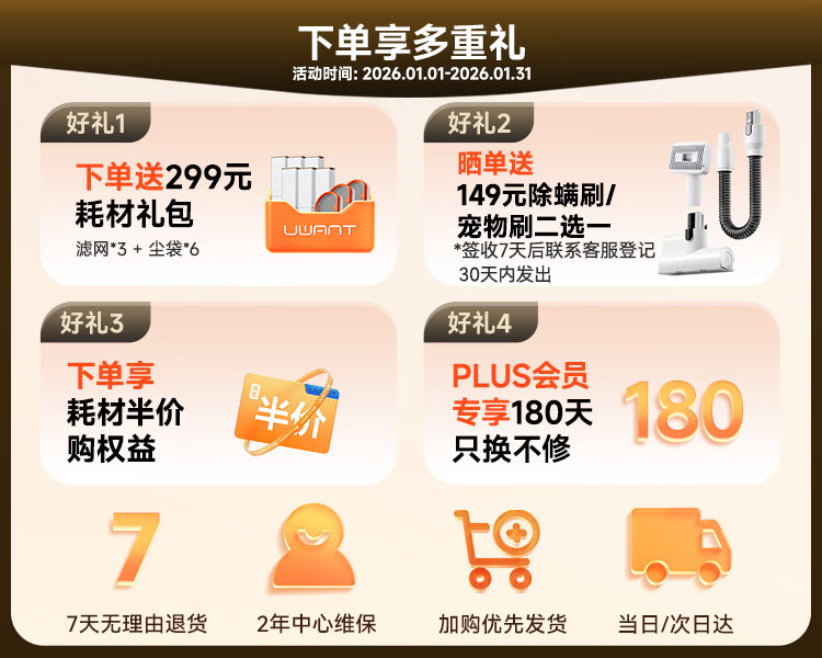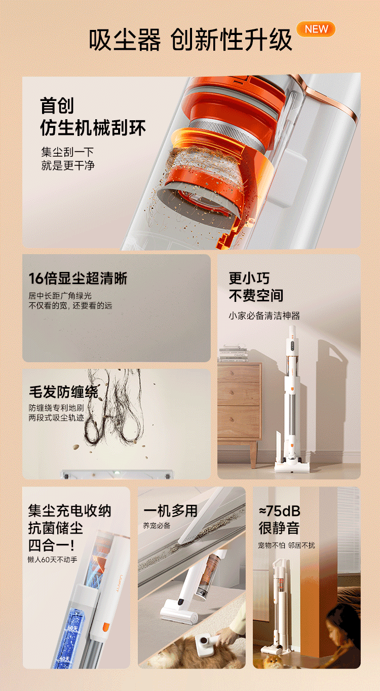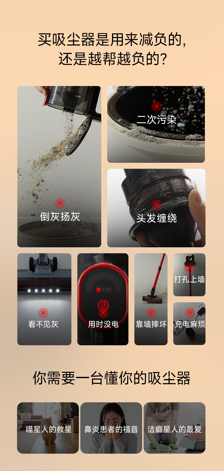 UWANT友望吸尘器大橘Pro自集尘【专利防缠 仿生刮环自清洁】小型车载家用大吸力无线吸尘器手持大功率
