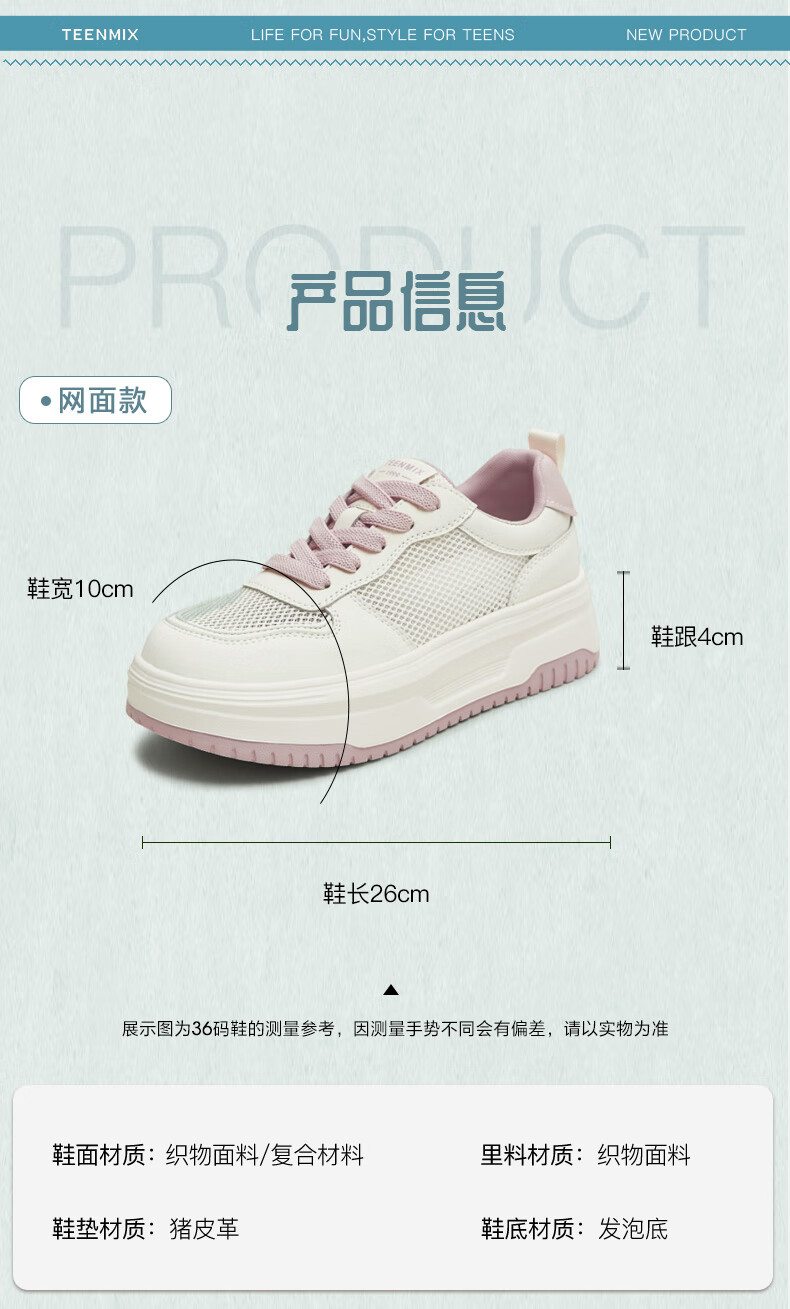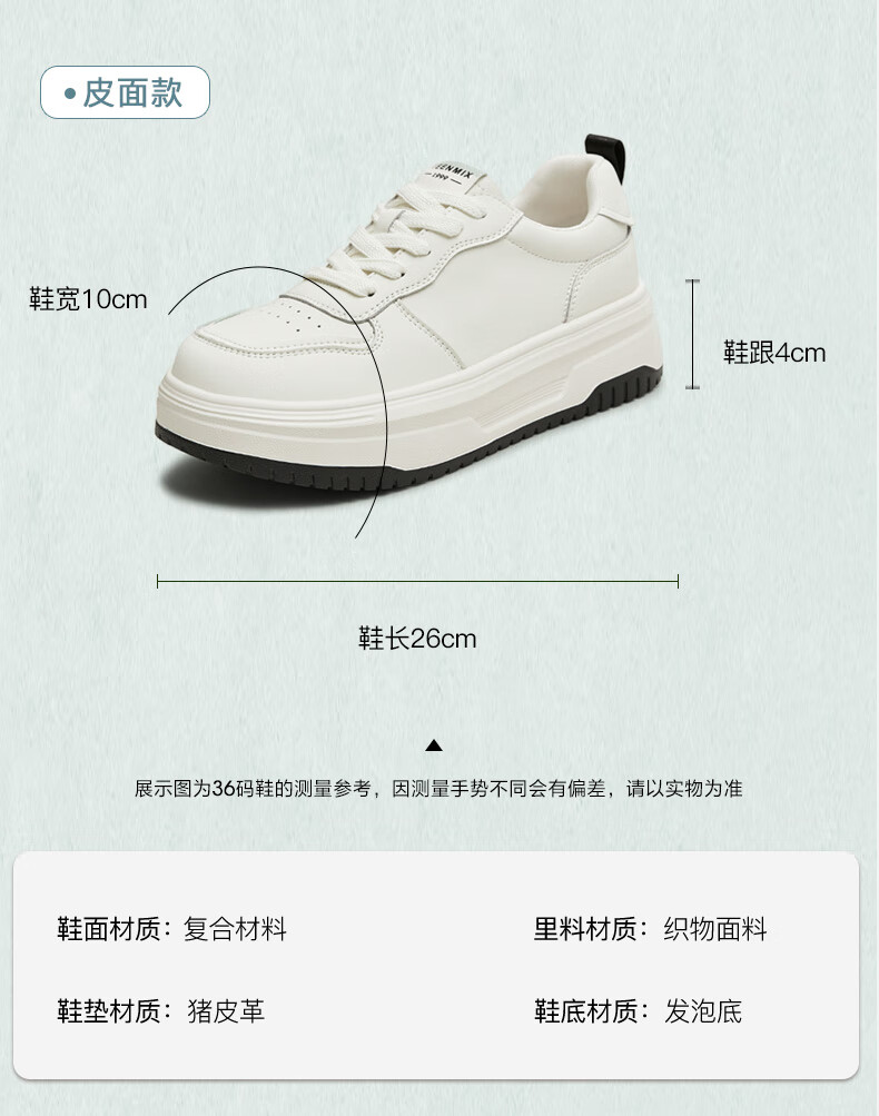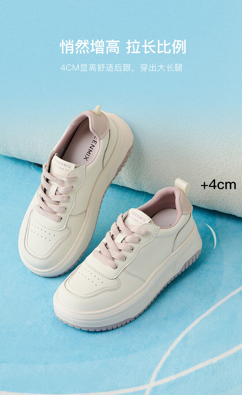 天美意厚底板鞋女小白鞋商场同款女鞋新款
