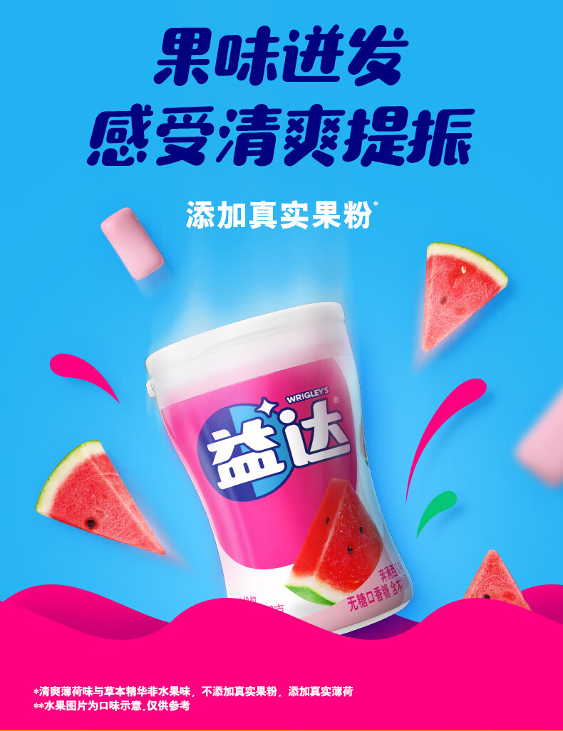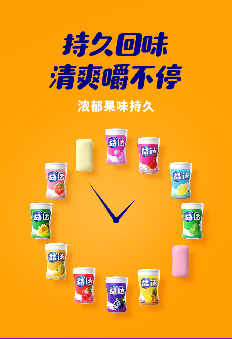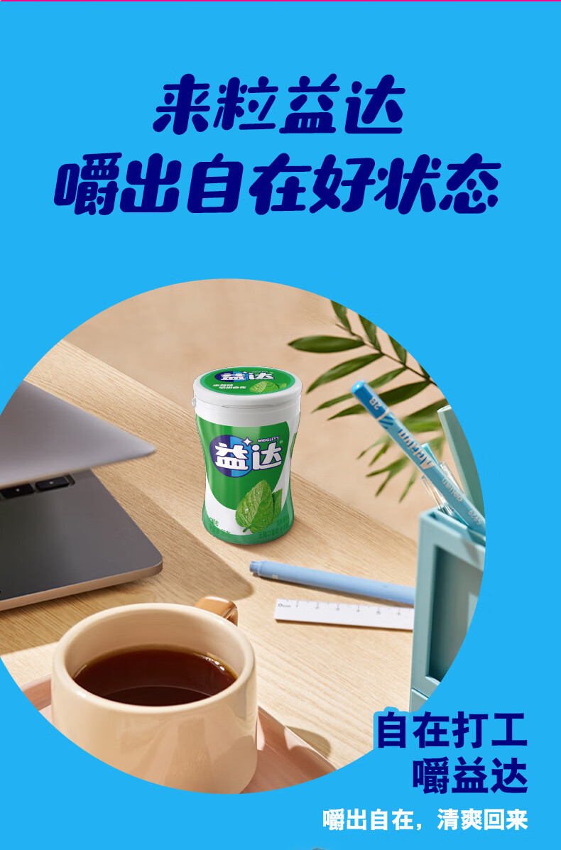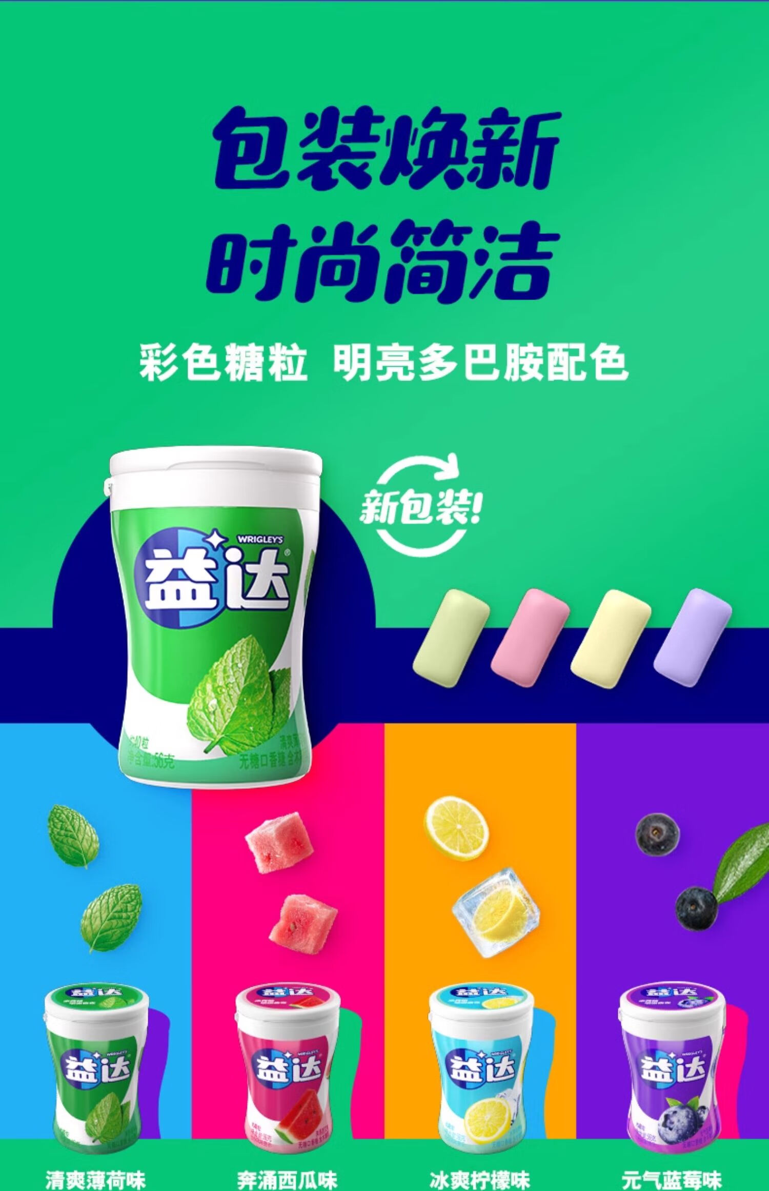 益达无糖口香糖木糖醇约40粒清新口气糖果冰凉薄荷冰柠薄荷零食C 【6瓶】益达口香糖40粒-混合口味