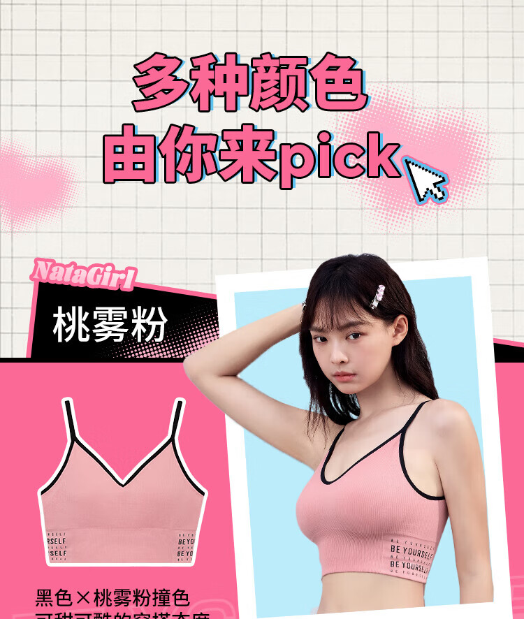 奶糖派香芋派无钢圈背心式内衣紧致小蛮腰大胸显小奶糖女孩青春线 小香白 M (75A-75F,80A-80E)