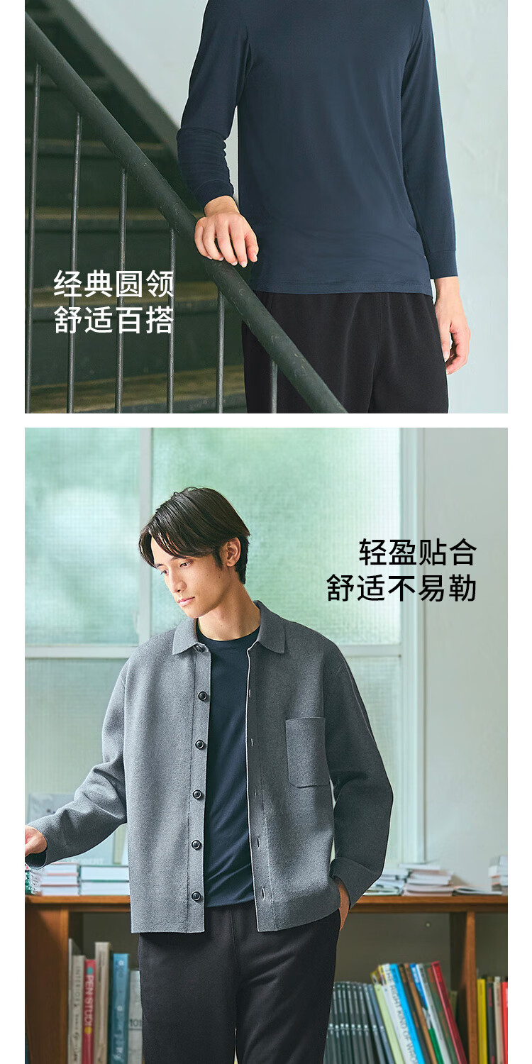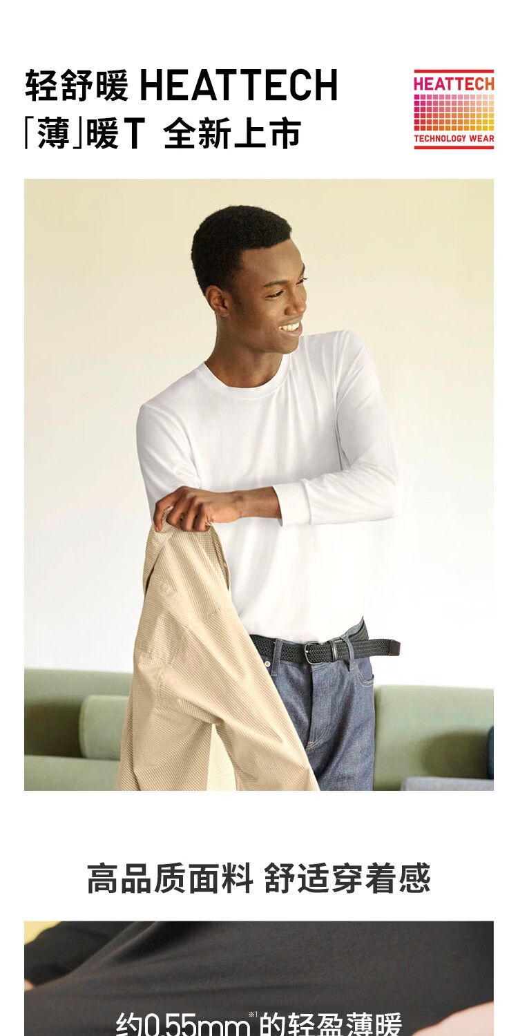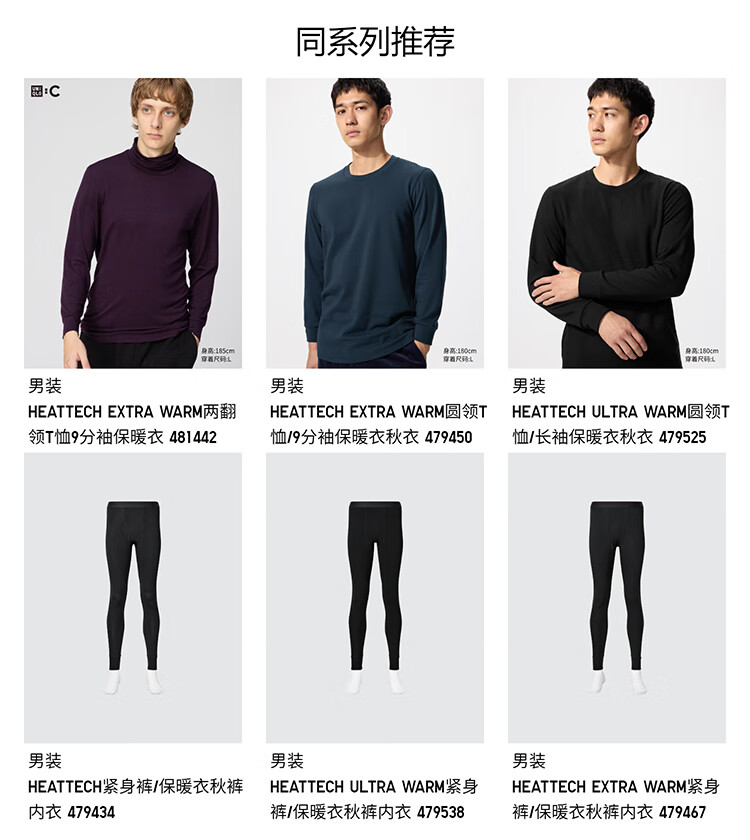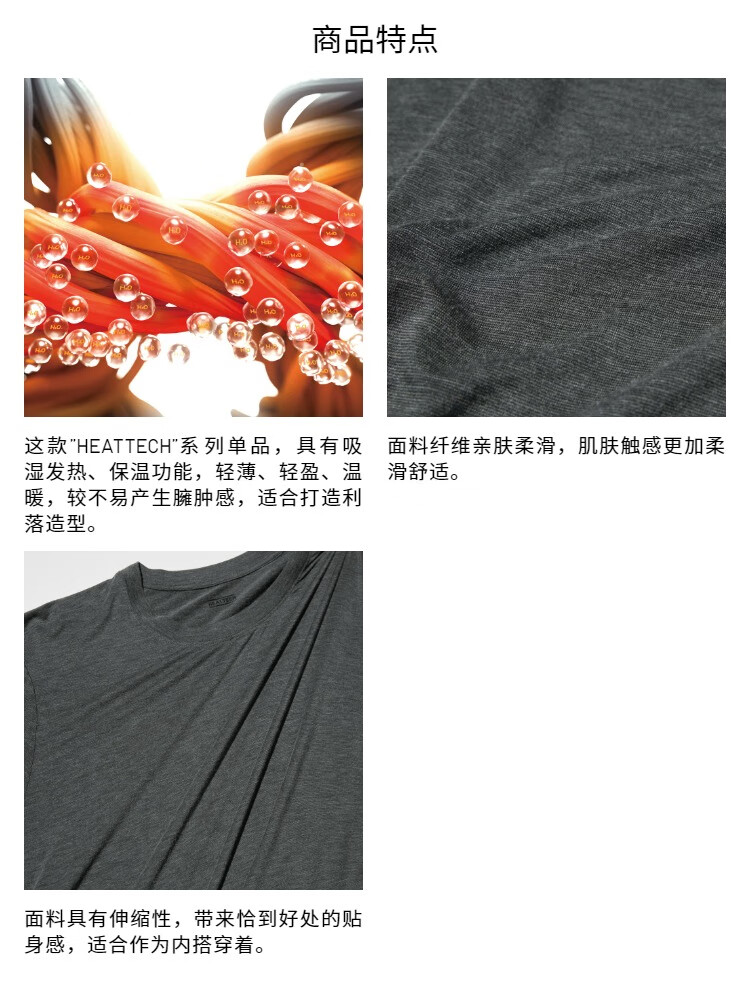 优衣库男装HEATTECH圆领T恤9分袖保暖衣秋衣内衣479428 479428/09黑色 M