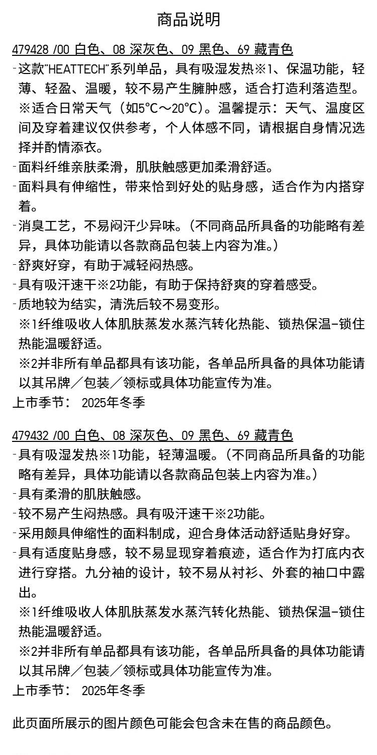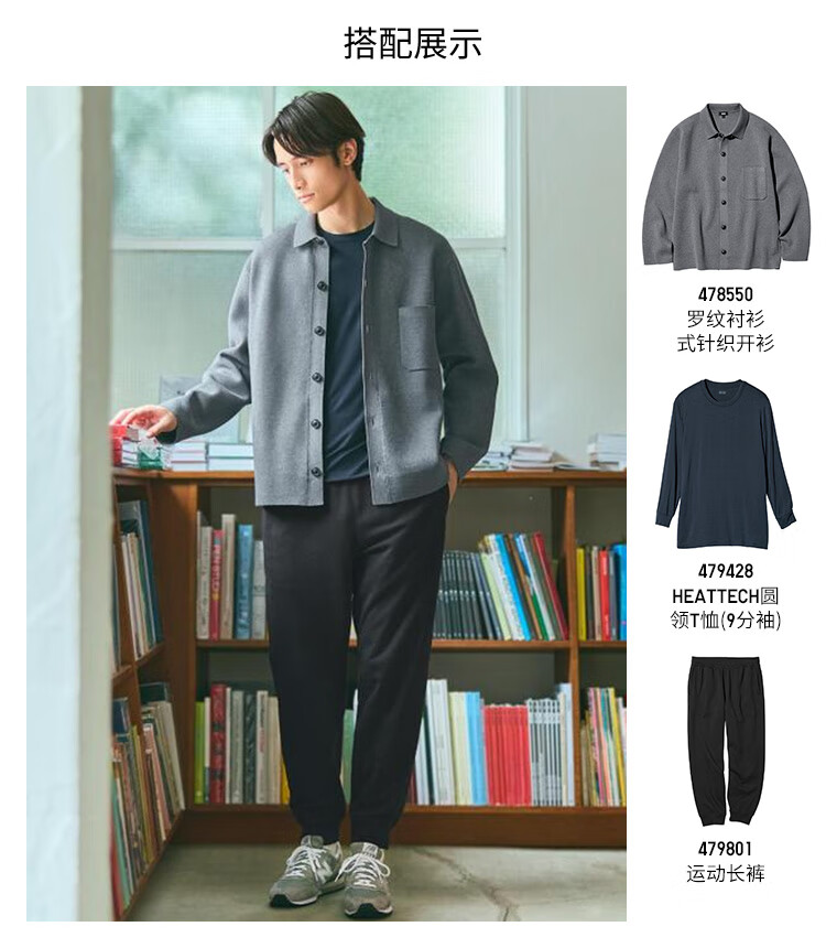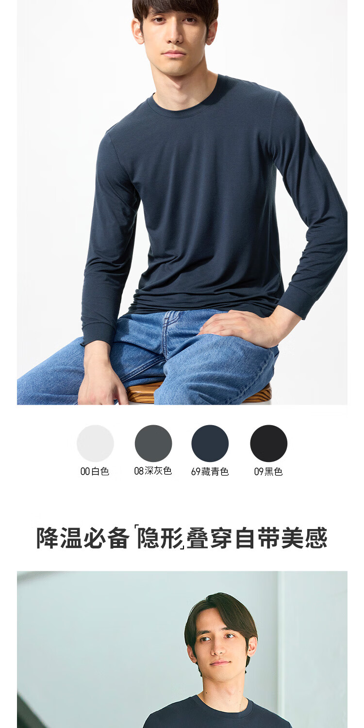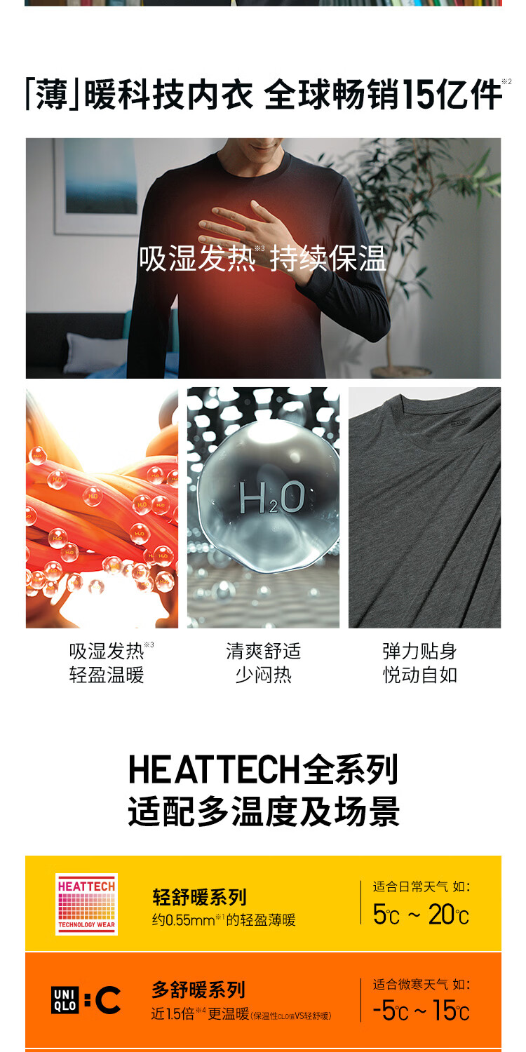 优衣库男装HEATTECH圆领T恤9分袖保暖衣秋衣内衣479428 479428/09黑色 M