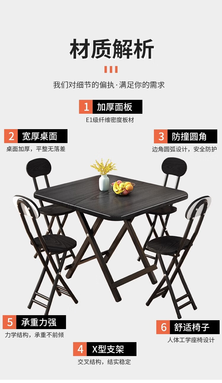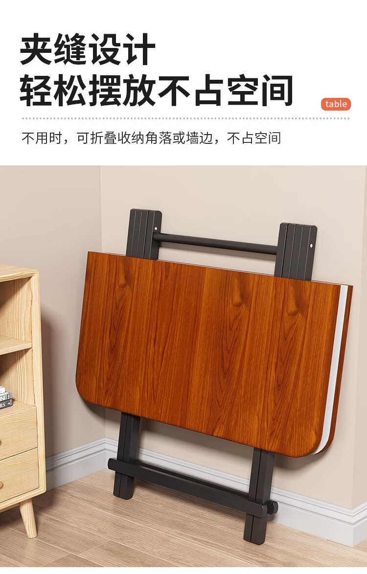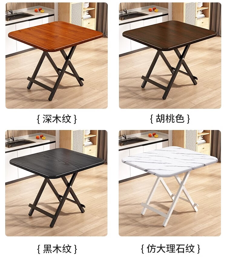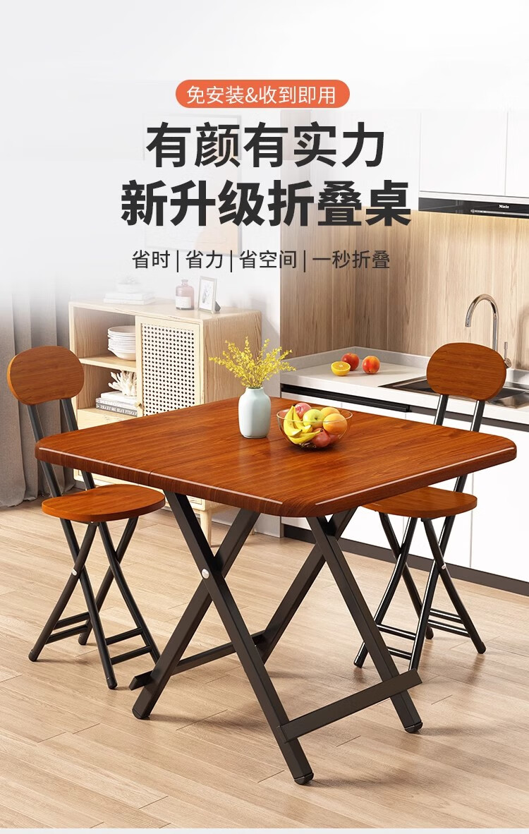 折叠桌餐桌家用小户型吃饭桌简易租房出租屋正方形小方桌子便携式 胡桃+黑架【80*80*74cm】