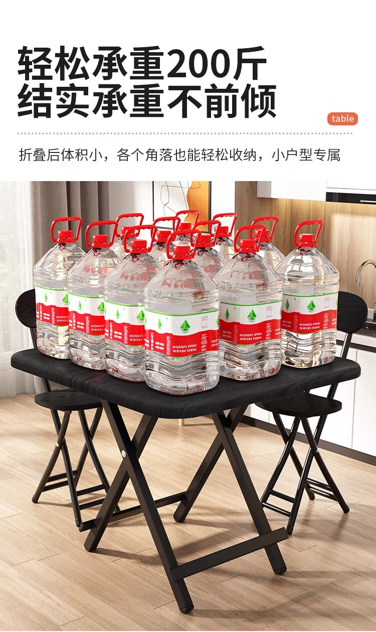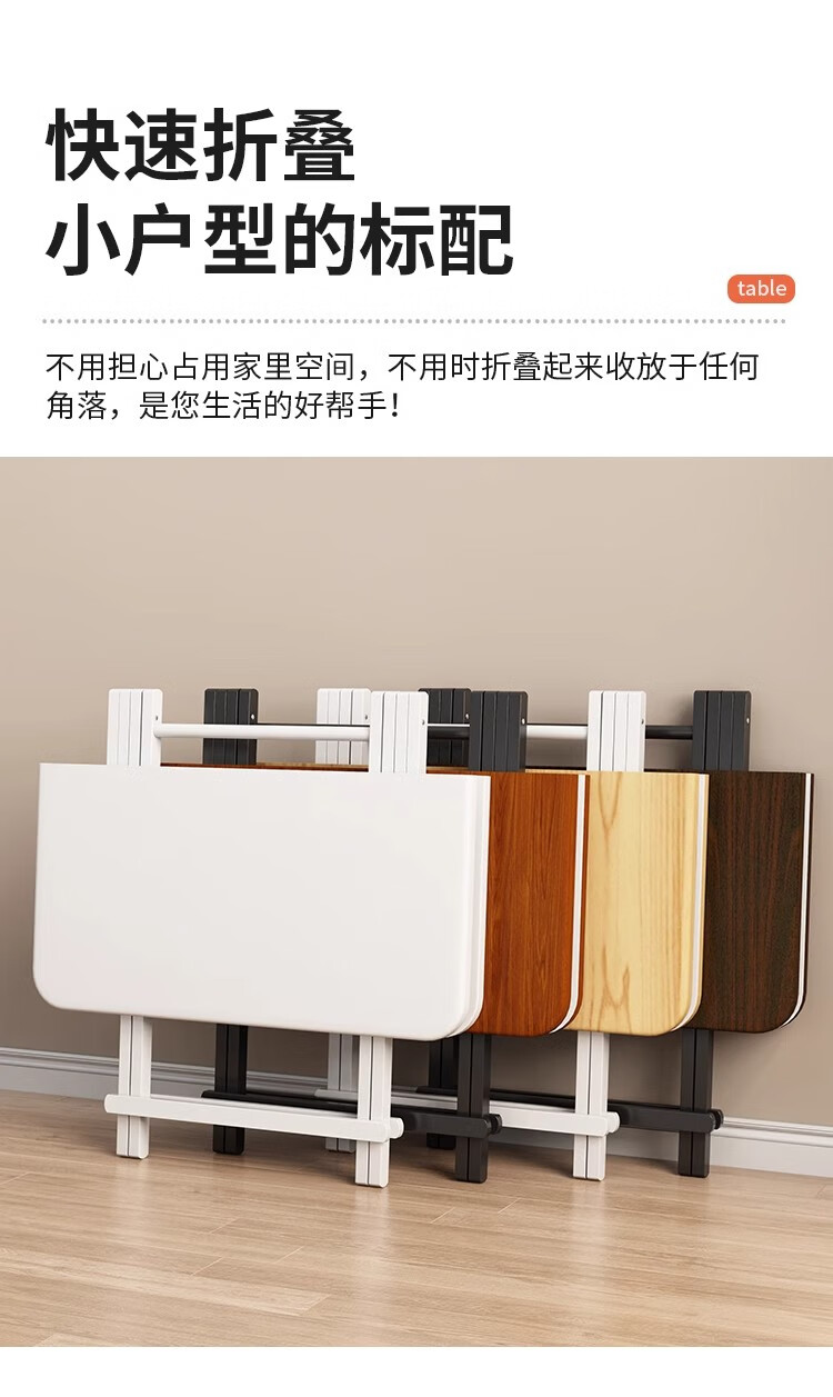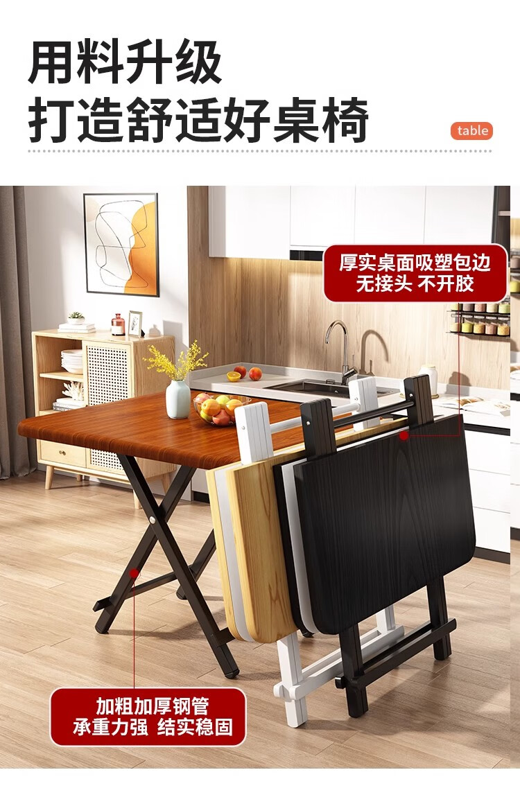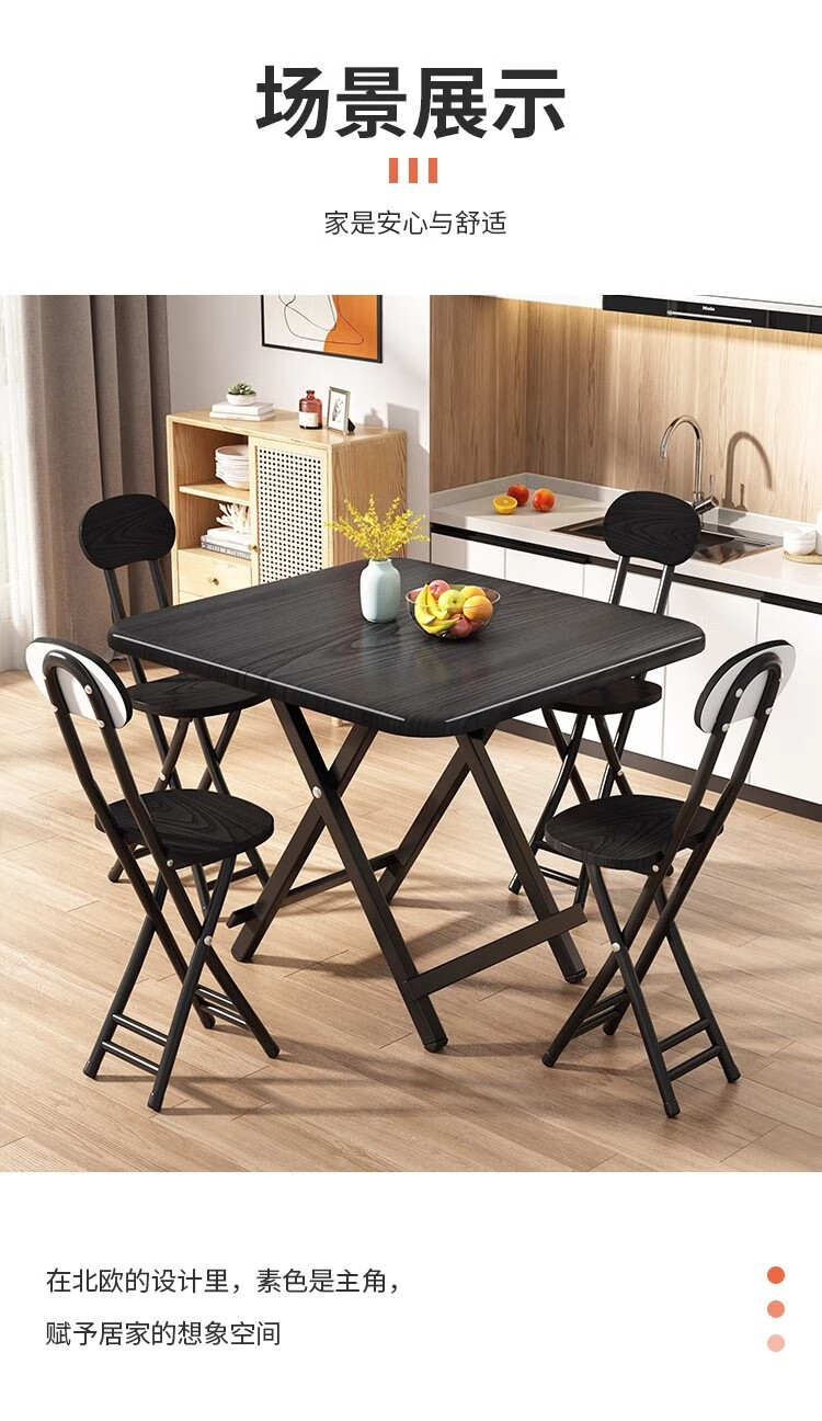 折叠桌餐桌家用小户型吃饭桌简易租房出租屋正方形小方桌子便携式 胡桃+黑架【80*80*74cm】