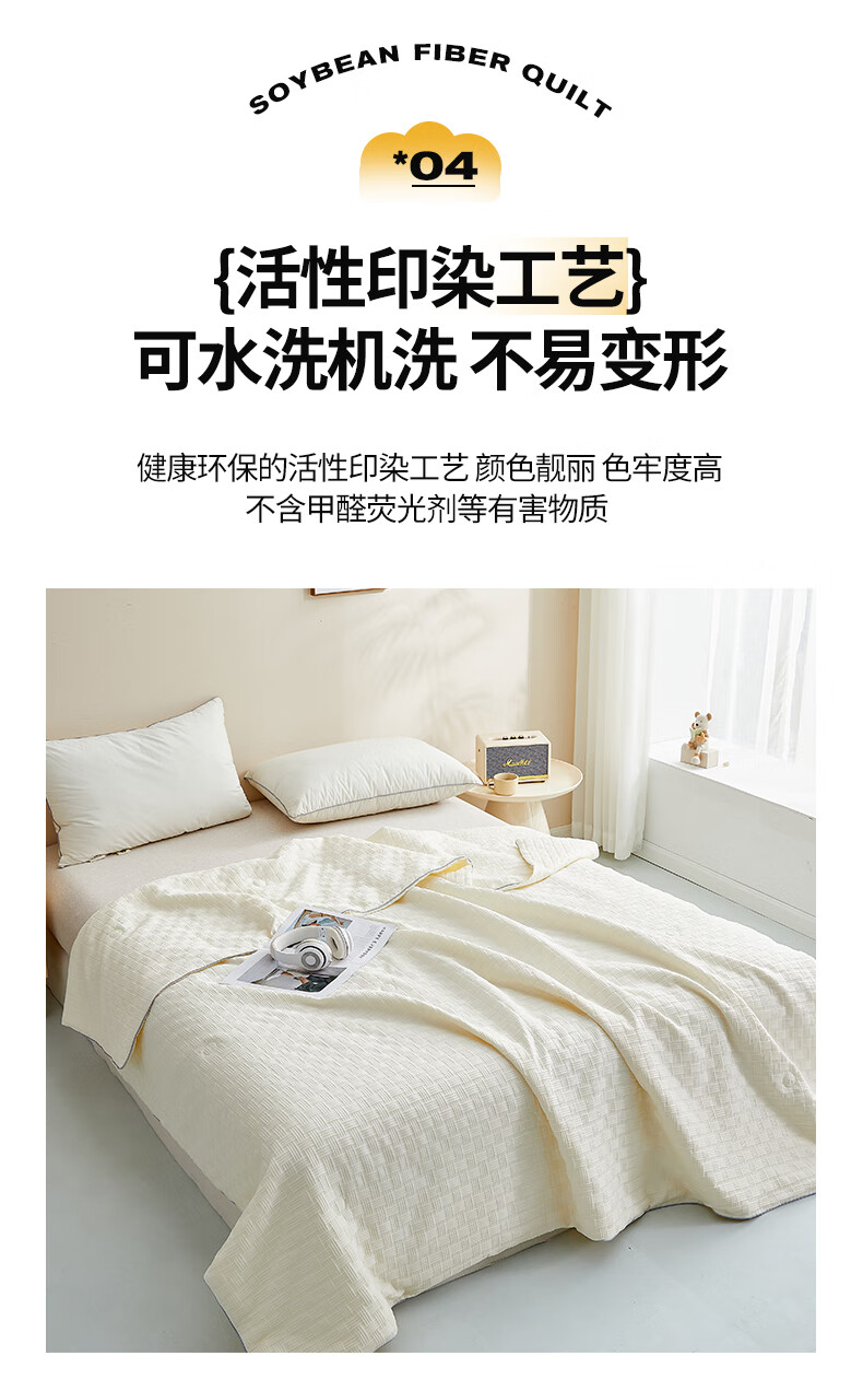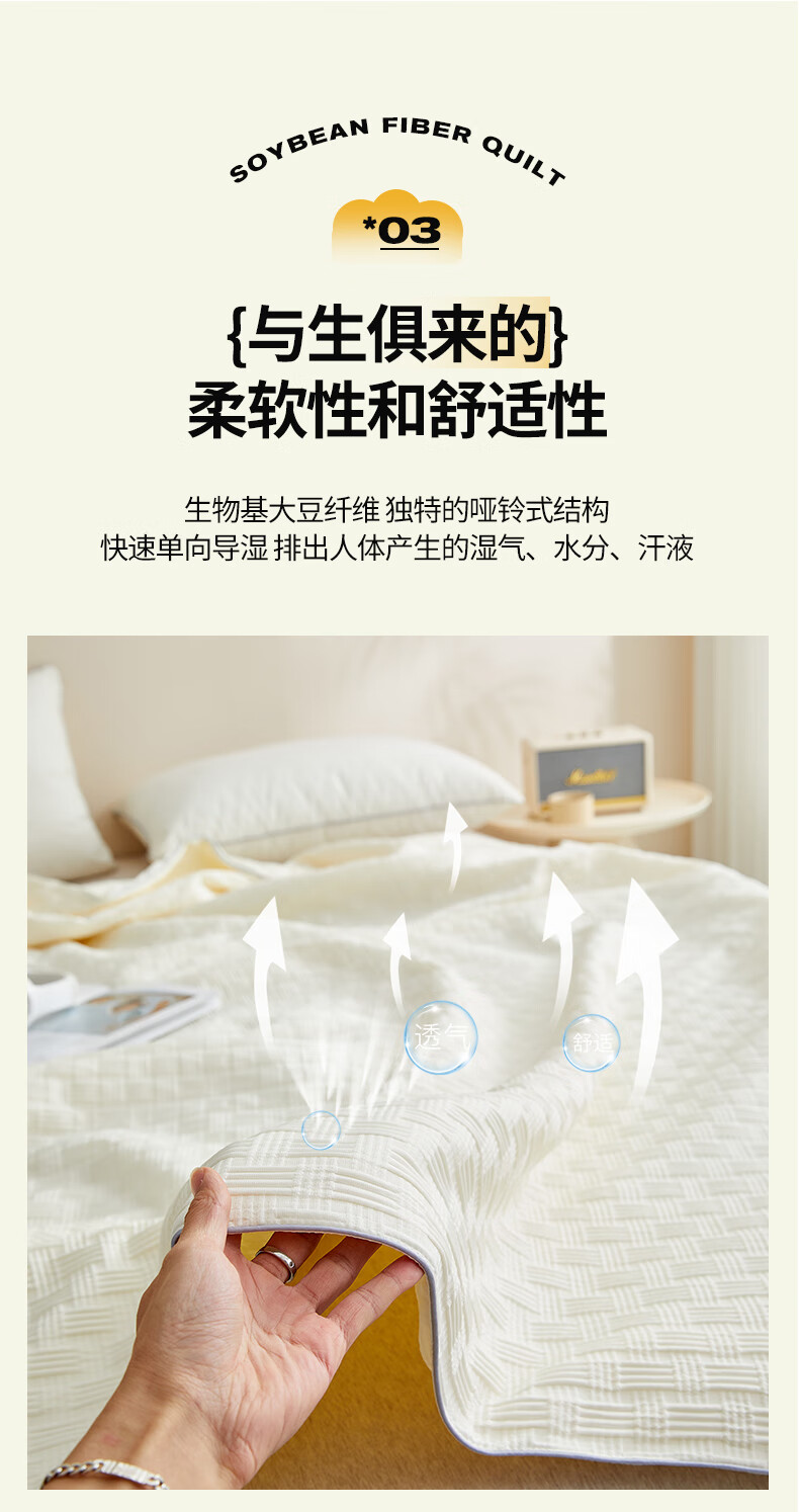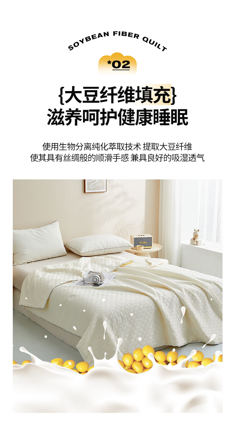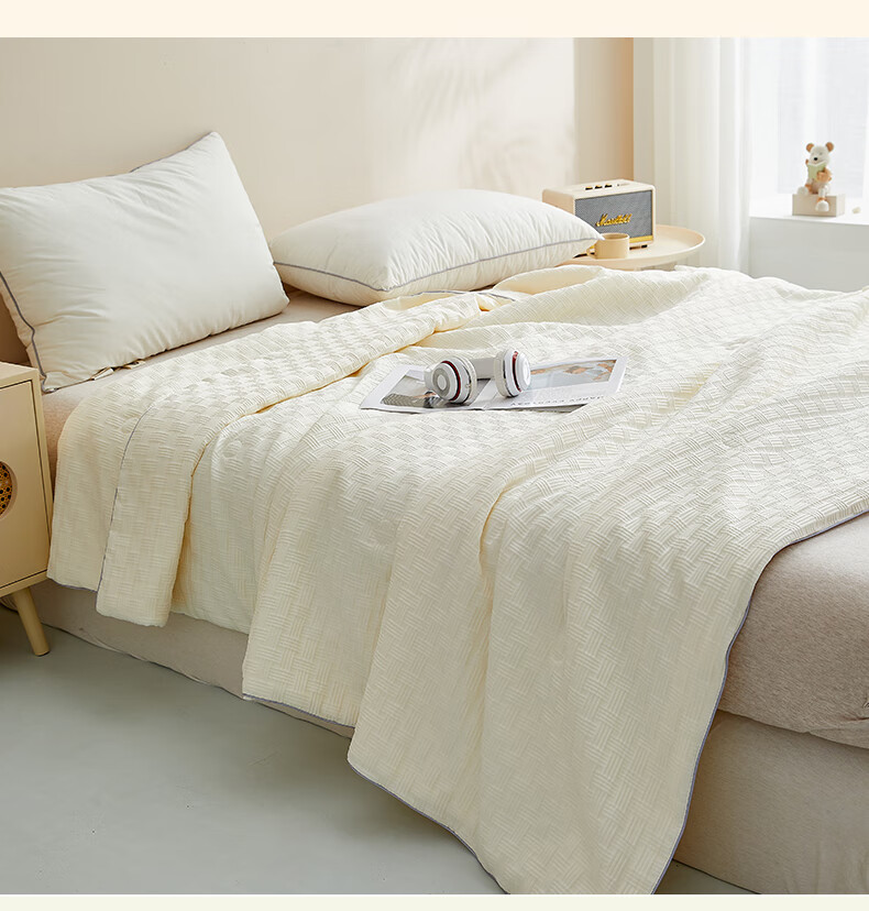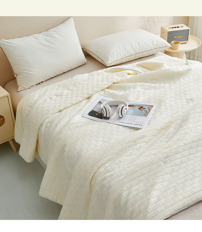 无印良品A类针织大豆纤维空调被子泡泡纱夏凉被芯200*230cm 奶昔白