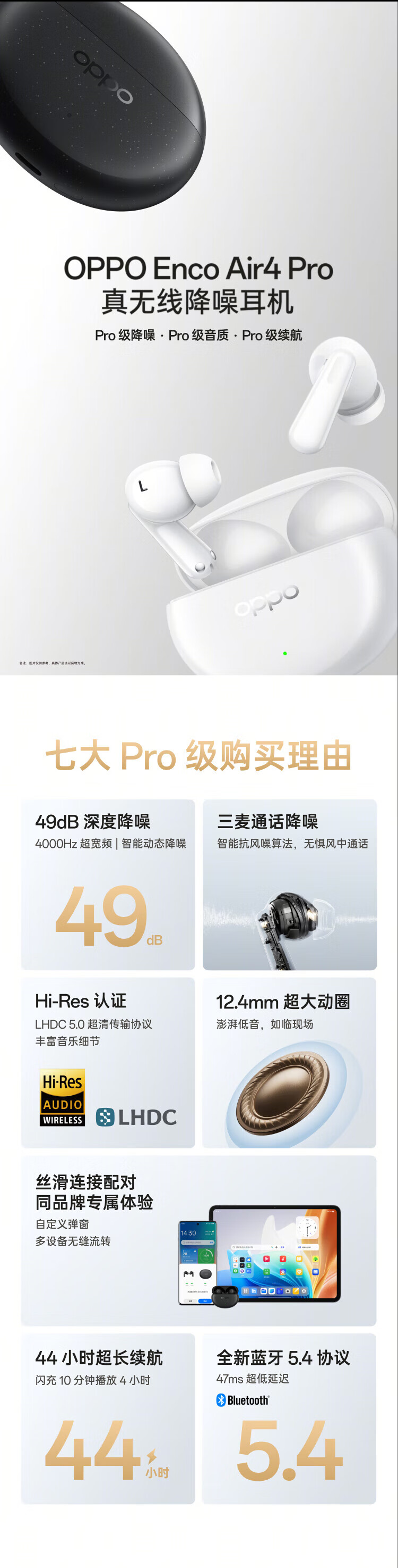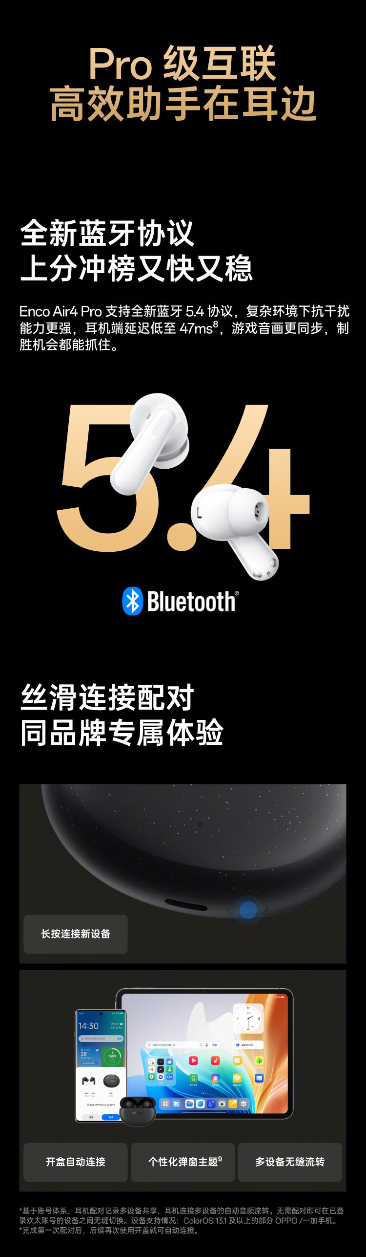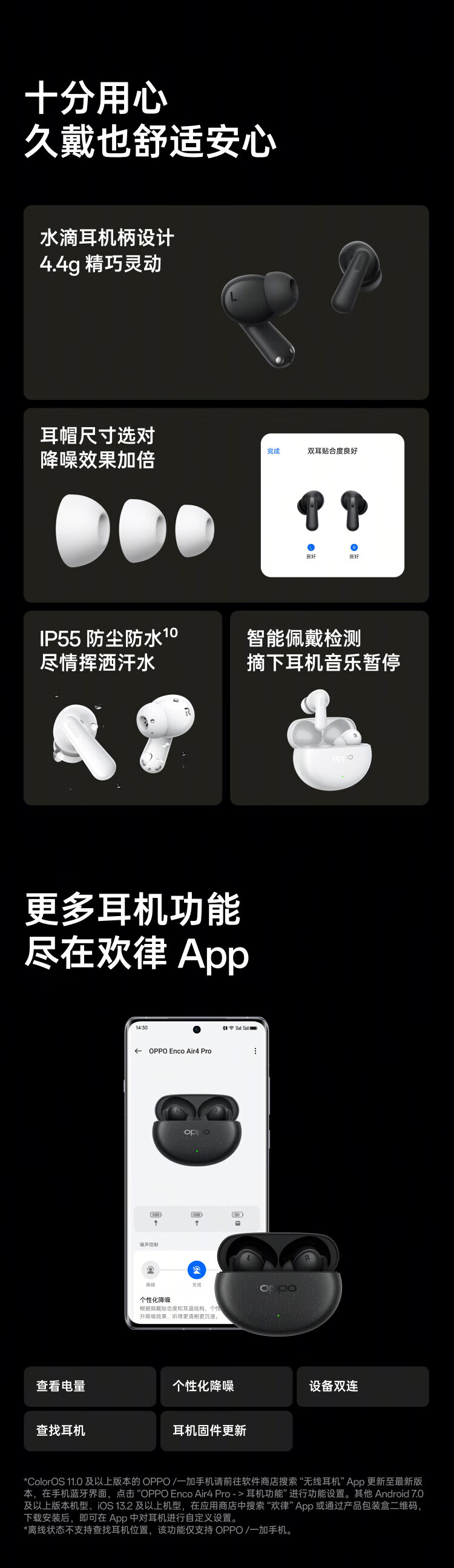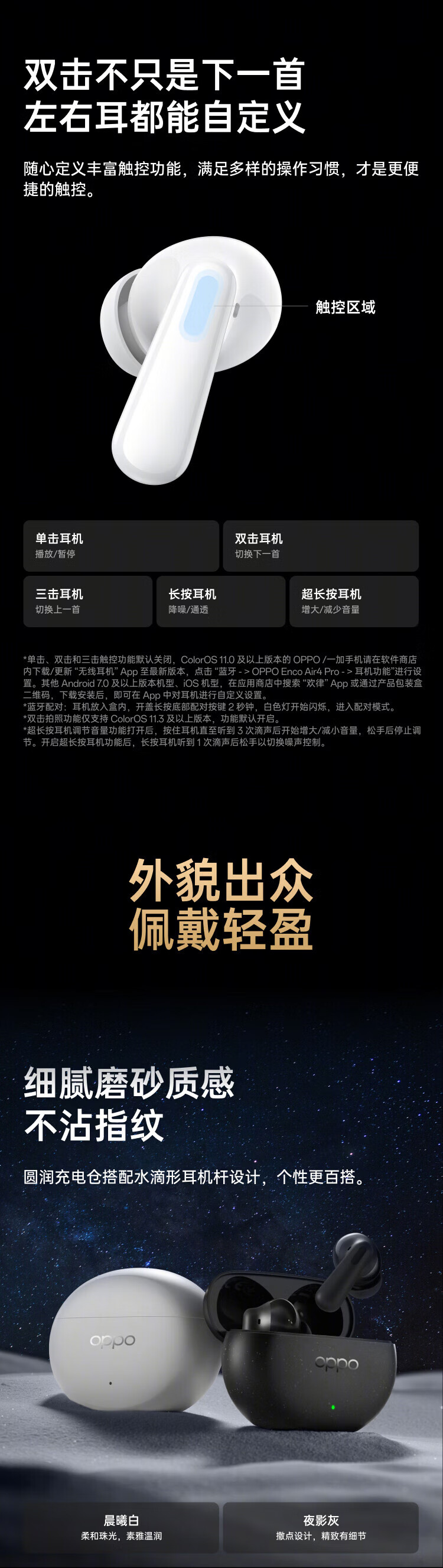 OPPO Enco Air4 Pro 真无线降噪蓝牙耳机 入耳式音乐运动跑步游戏耳机 通用苹果华为小米手机 夜影灰