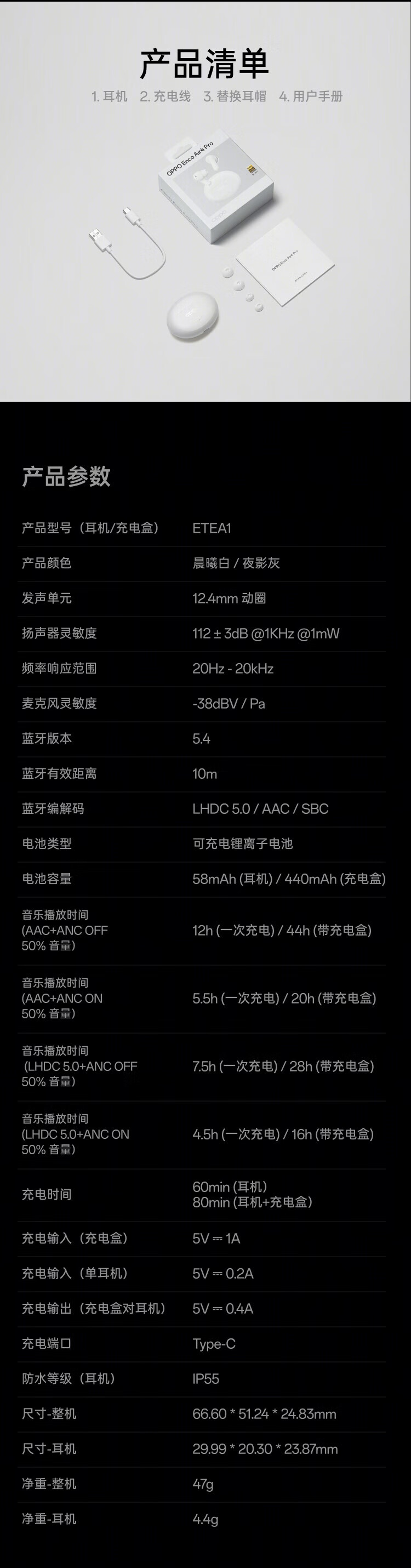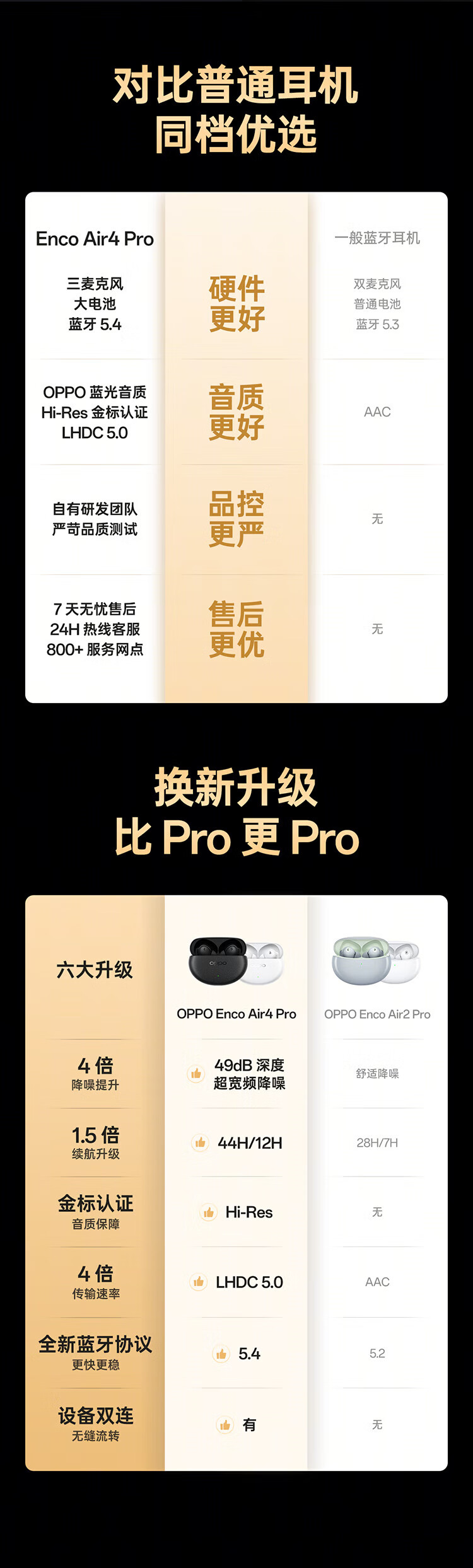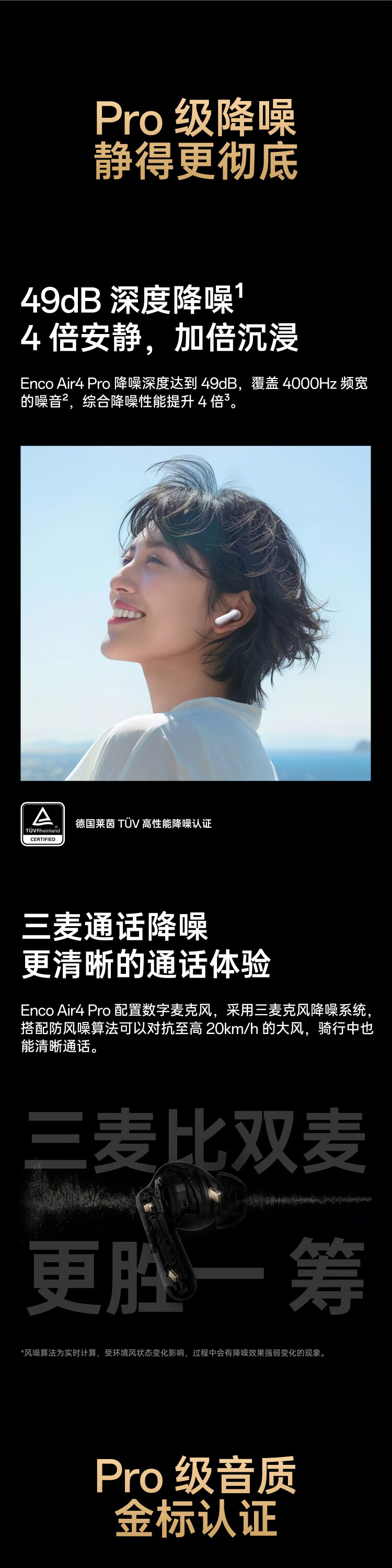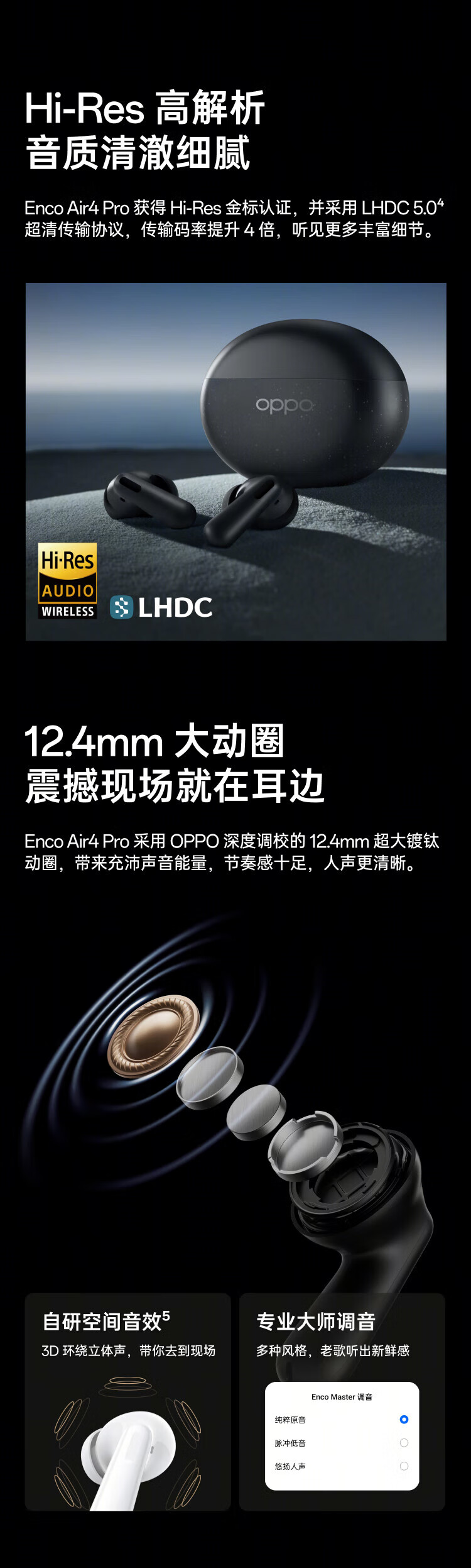 OPPO Enco Air4 Pro 真无线降噪蓝牙耳机 入耳式音乐运动跑步游戏耳机 通用苹果华为小米手机 夜影灰