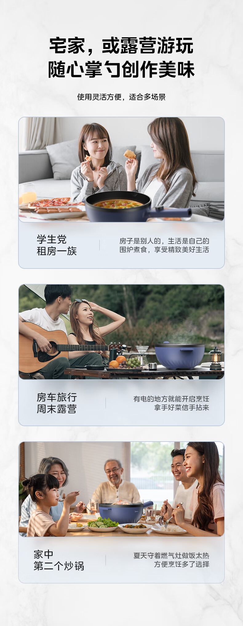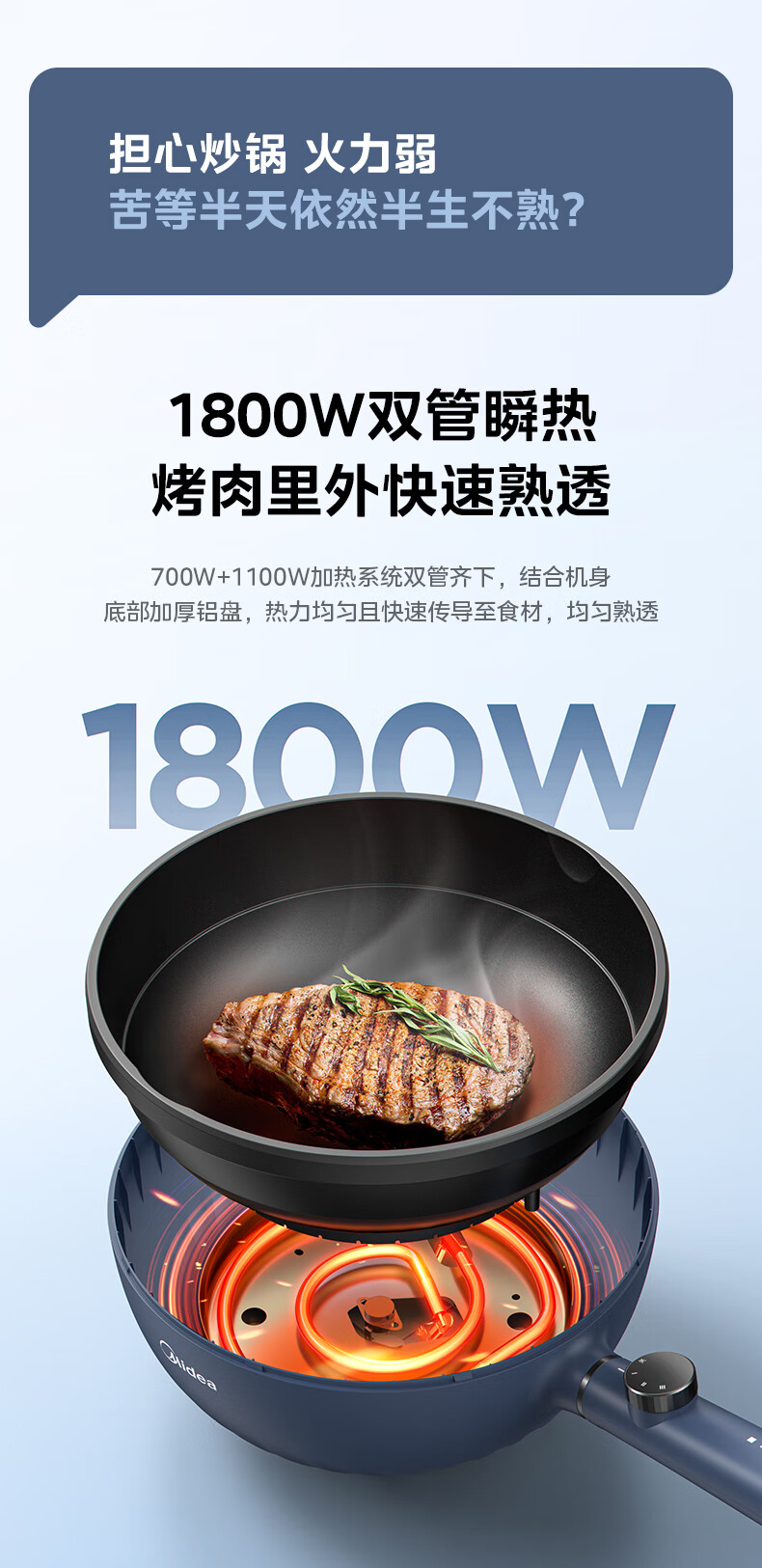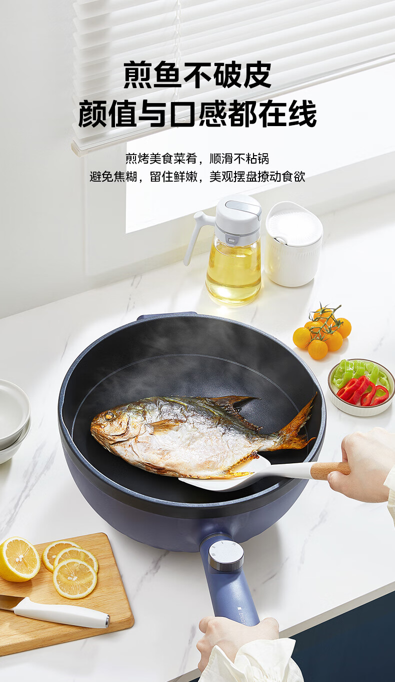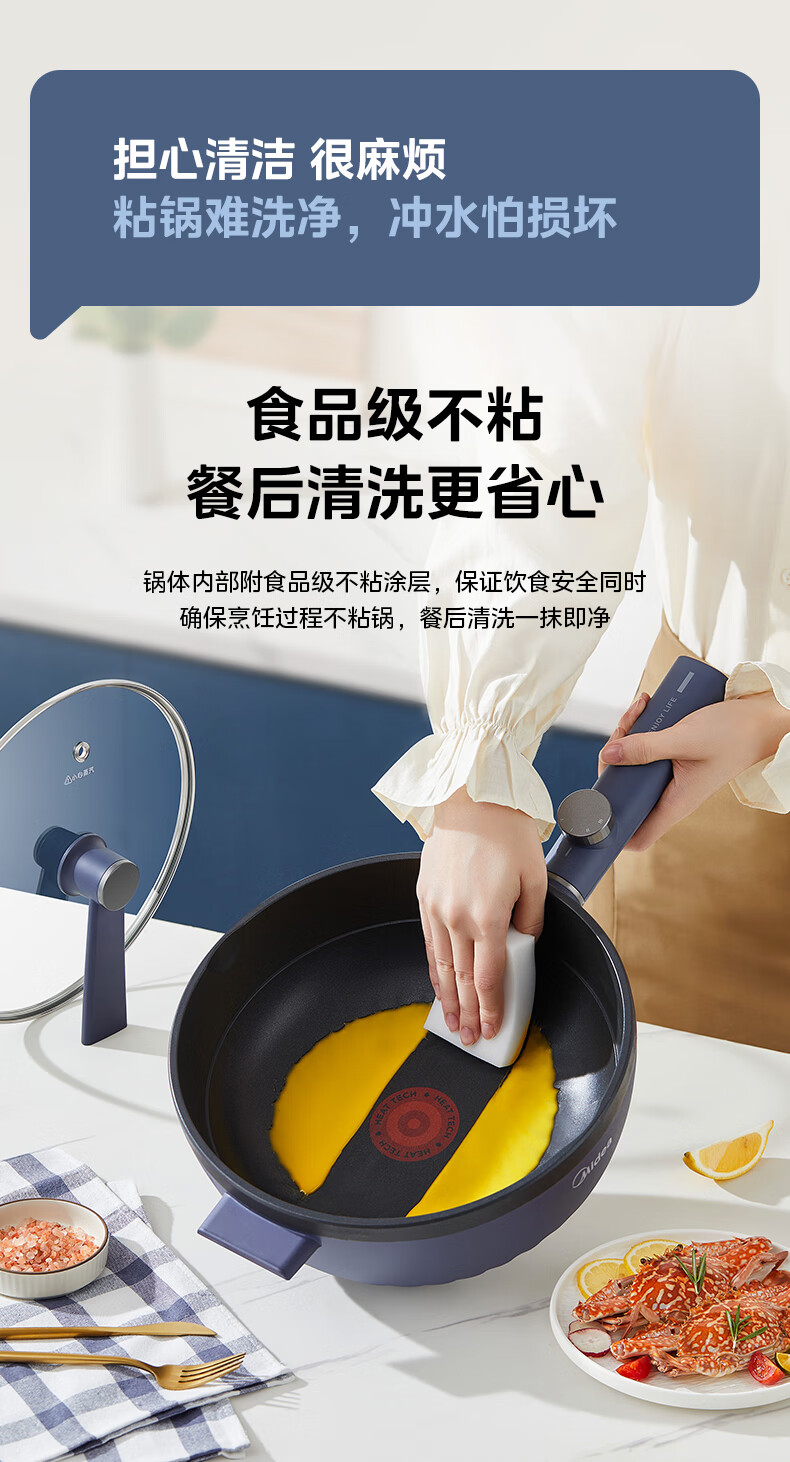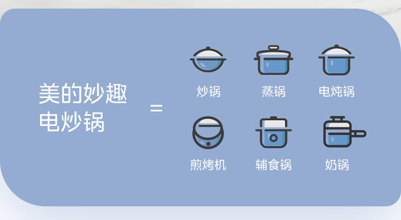 美的(Midea)电炒锅 电蒸锅 电火锅 电煮锅家用多功能煎炒一体锅 4L大容量料理烤肉电热锅 HGE2813 配蒸笼木铲