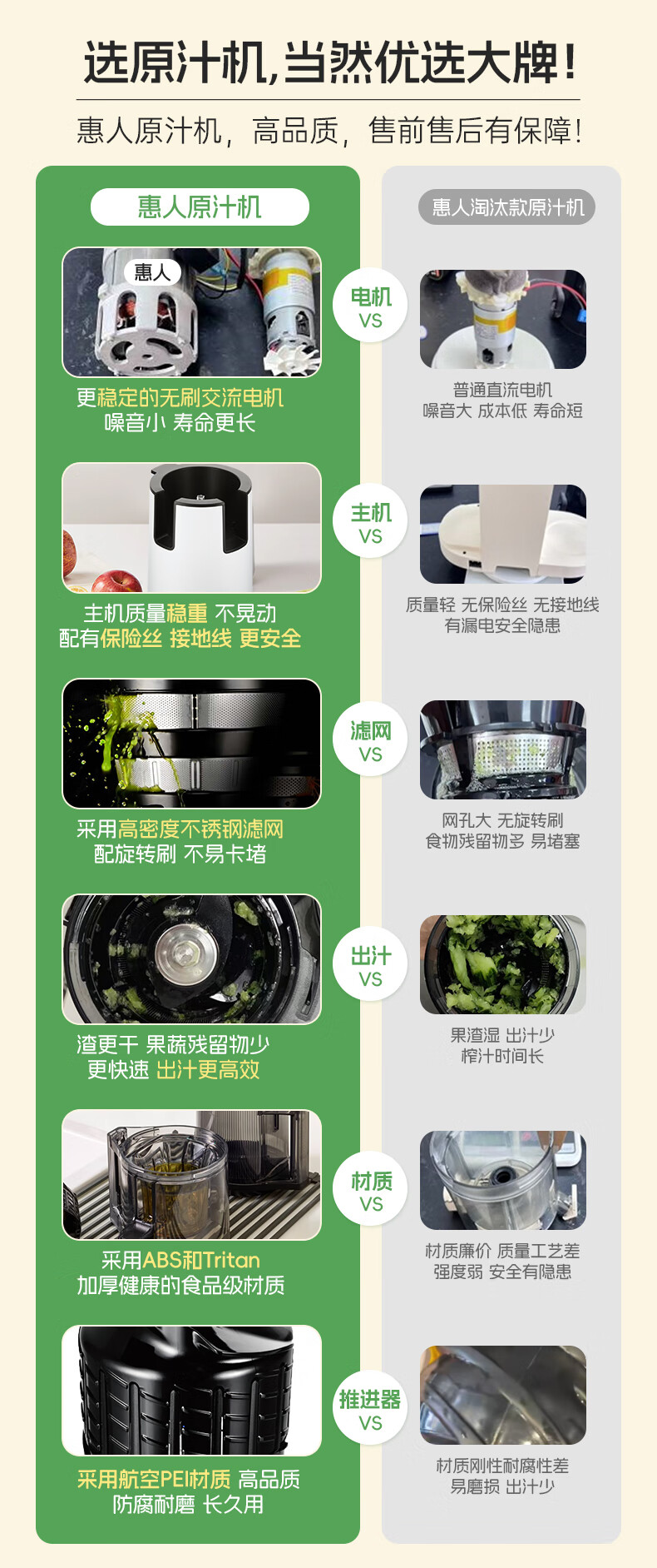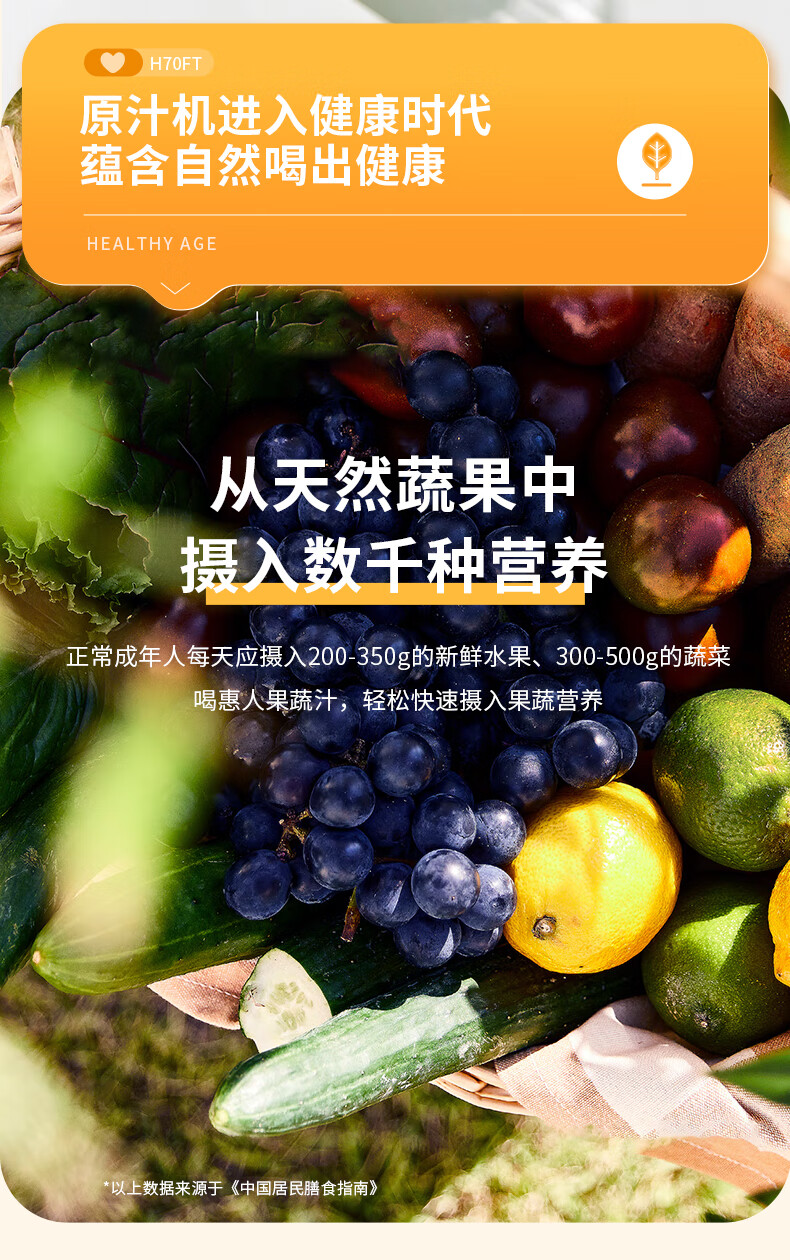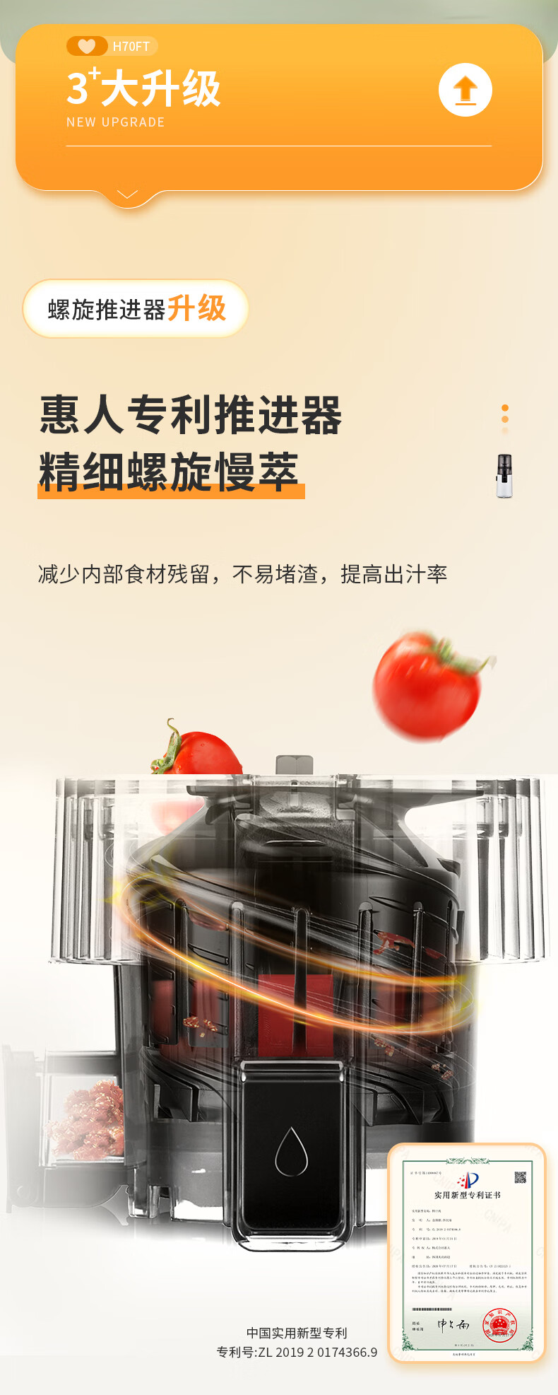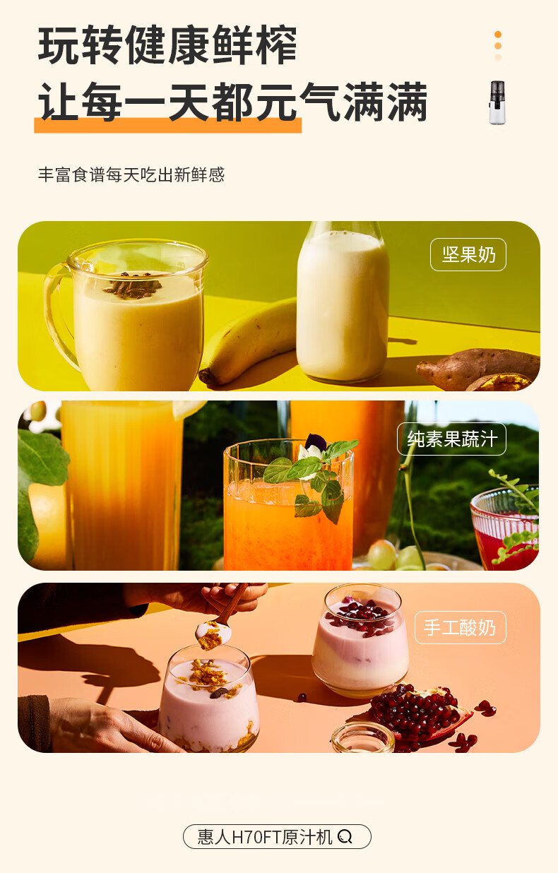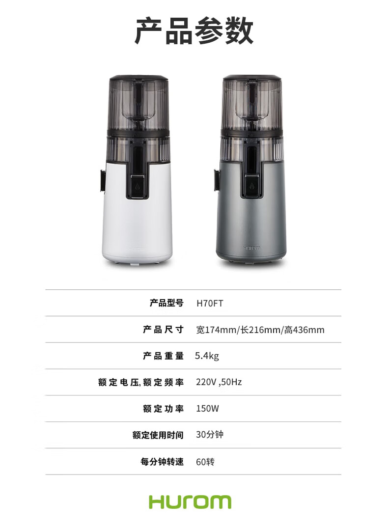 惠人(HUROM)原汁机无网多功能大口径家用低速榨汁机果渣汁分离韩国进口冰淇淋机家用 H70FT-BIC06TG