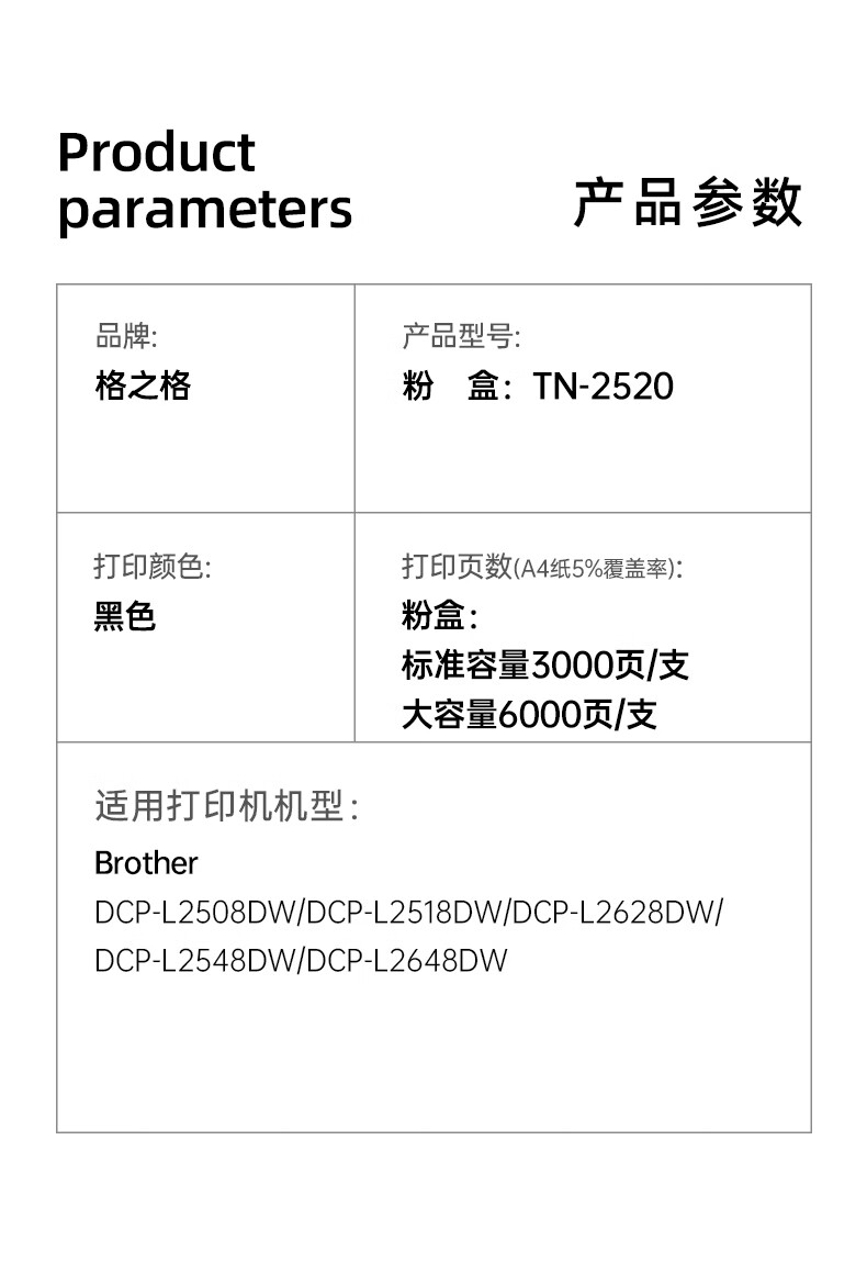 格之格TN2520XL粉盒适用兄弟DCP-L2548DW DCP-L2508DW DCP-L2518DW DCP-L2628DW DCP-L2648DW粉盒 打印机硒鼓墨粉
