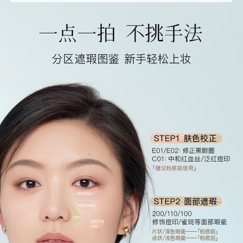 彩棠(TIMAGE)遮瑕液E01扶光白6g提亮泪沟遮痘印黑眼圈不卡纹生日礼物送女友