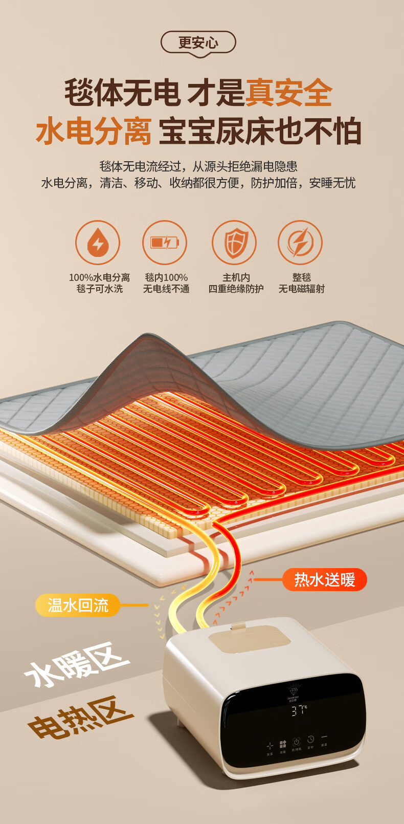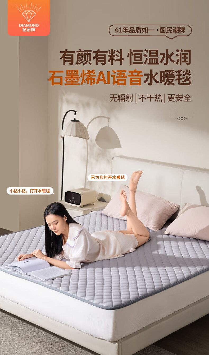 钻石牌电热毯水暖毯水电褥子水循环2025新款自动断电智能双人单人电水毯 【90*180】机械旋钮款-恒温加厚毯