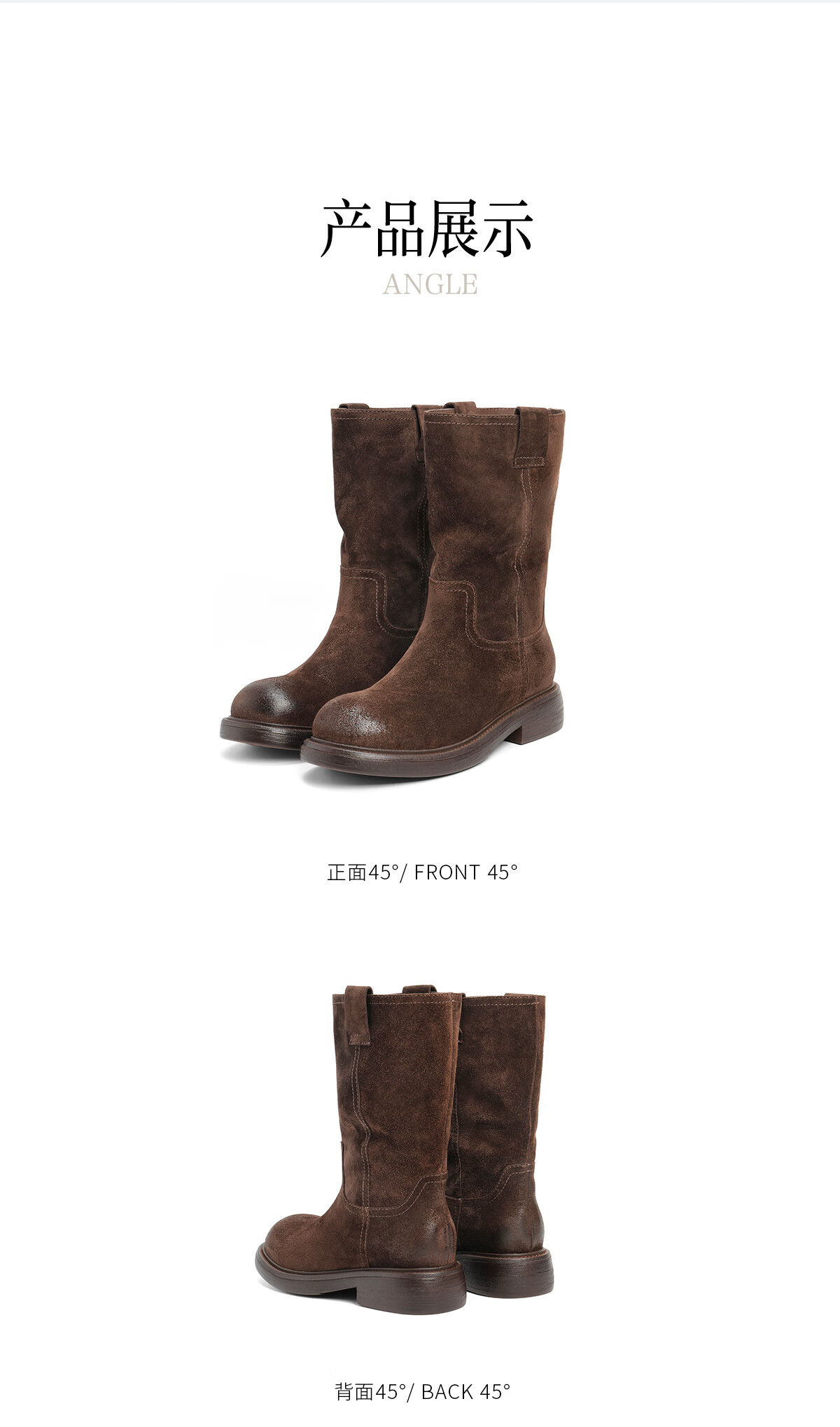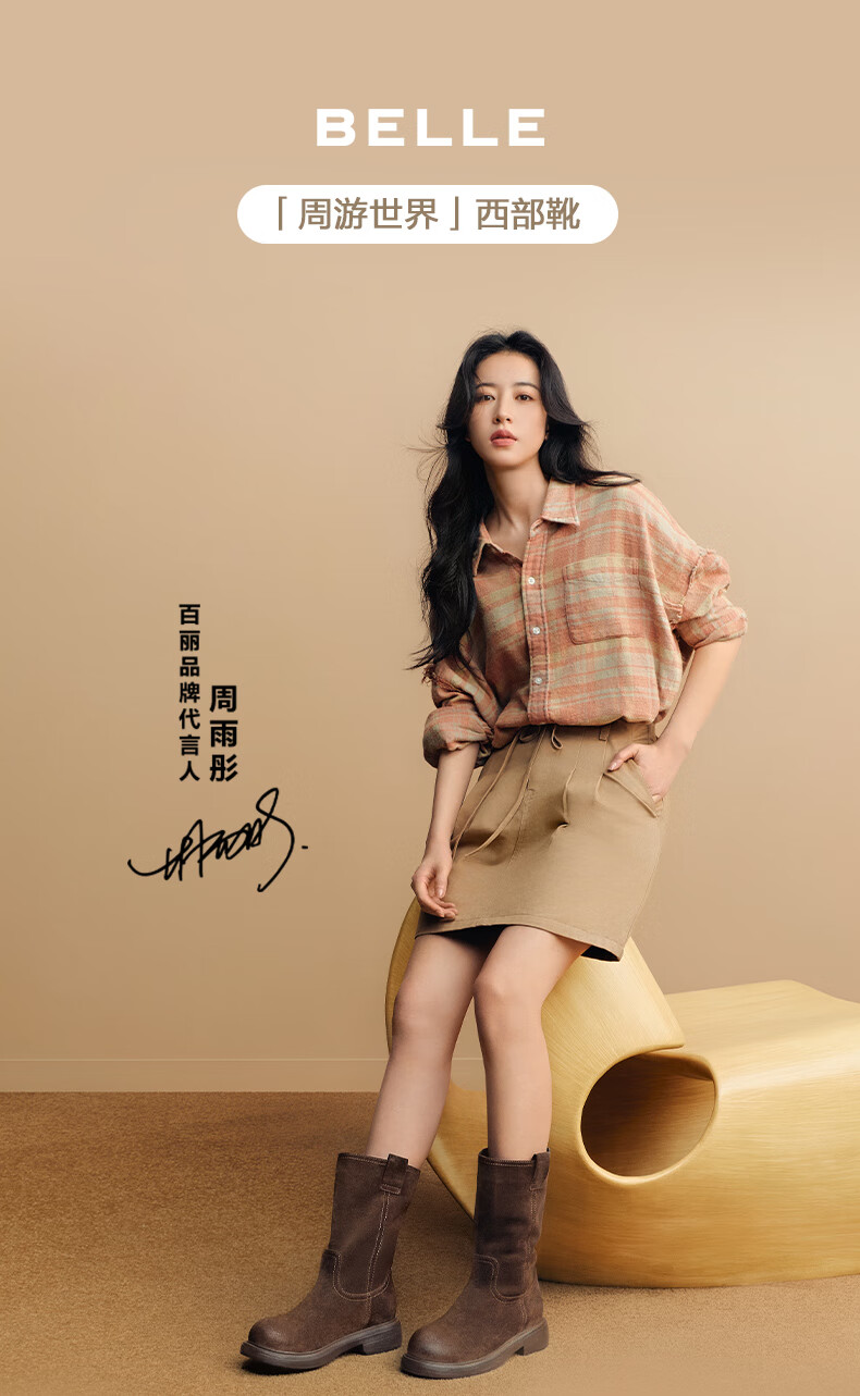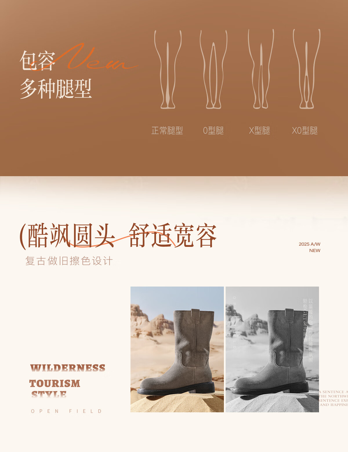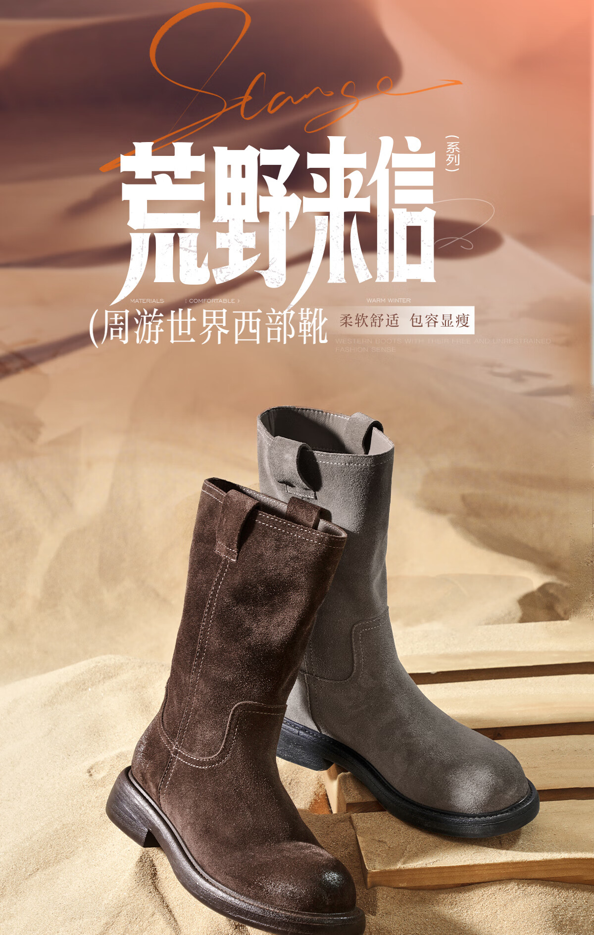 百丽(Belle)周游世界复古绒面西部靴女2025冬新商场款厚底休闲靴E6G2DDZ5预售 啡色 37