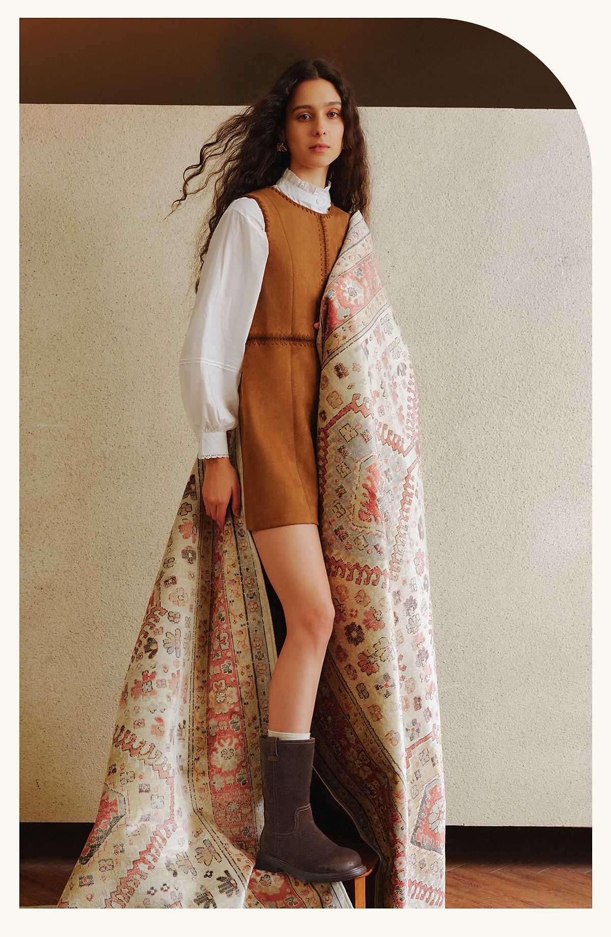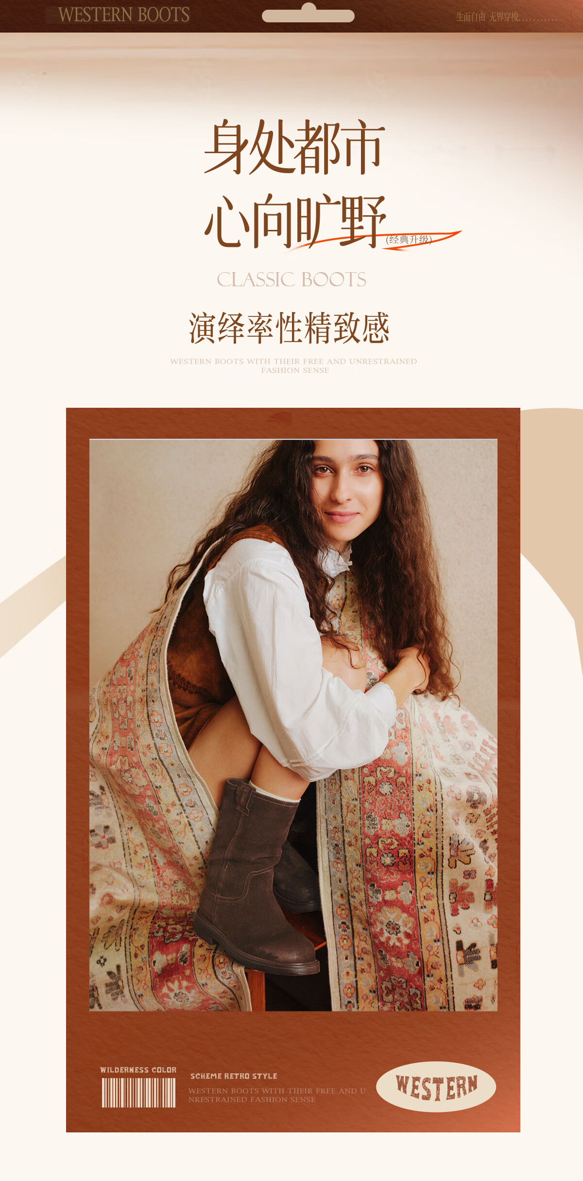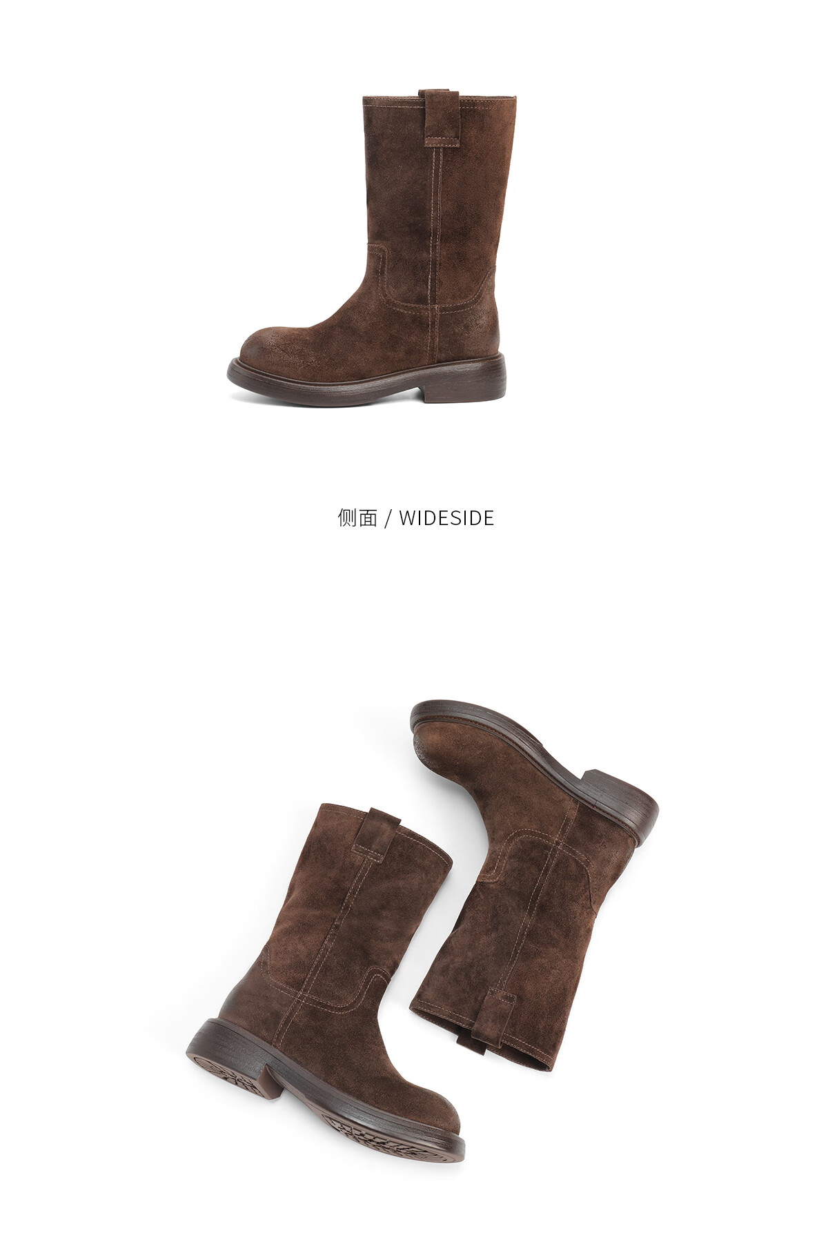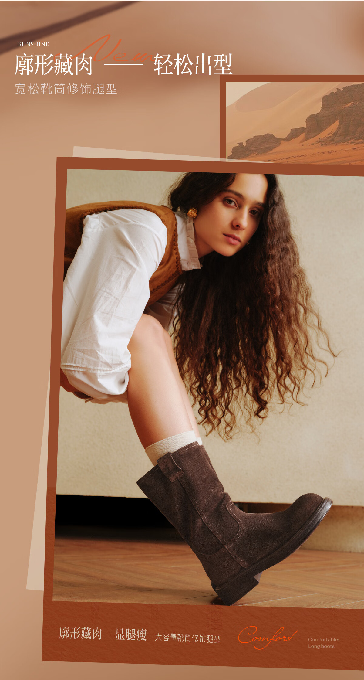 百丽(Belle)周游世界复古绒面西部靴女2025冬新商场款厚底休闲靴E6G2DDZ5预售 啡色 37