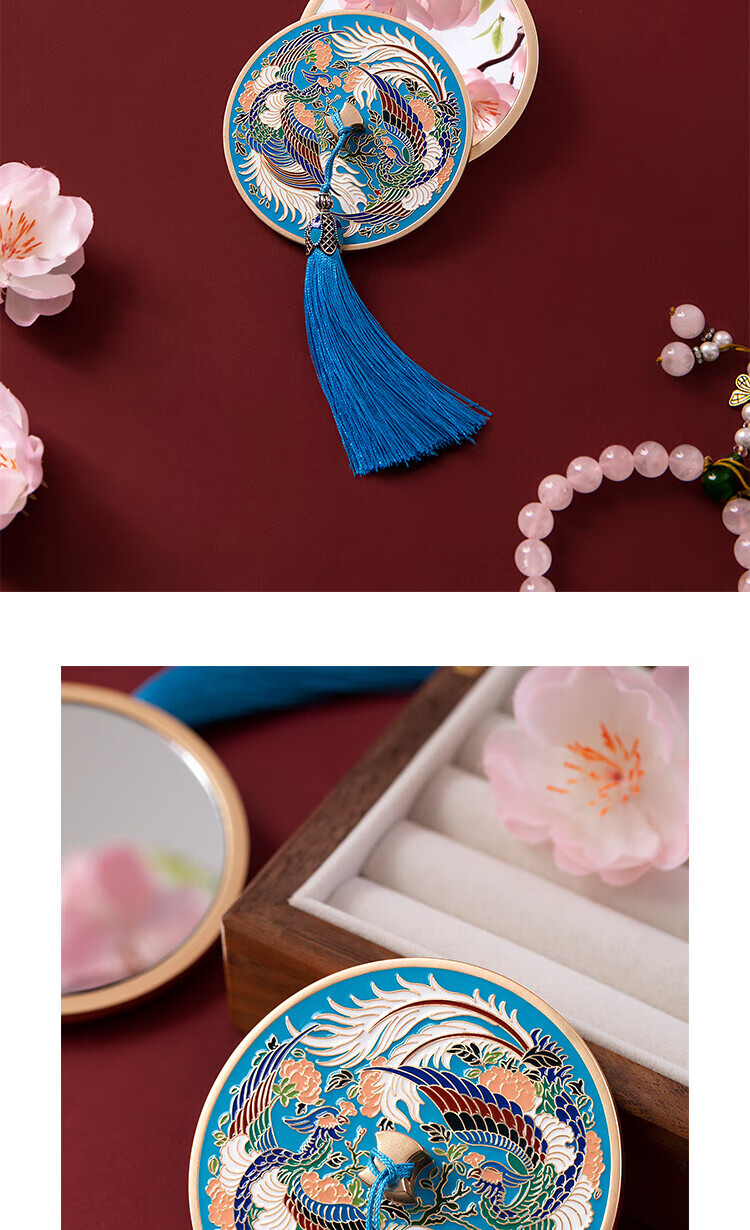 博物文创凤穿牡丹随身镜古风便携手持镜子国风化妆镜子女生日礼物中秋节 随身镜