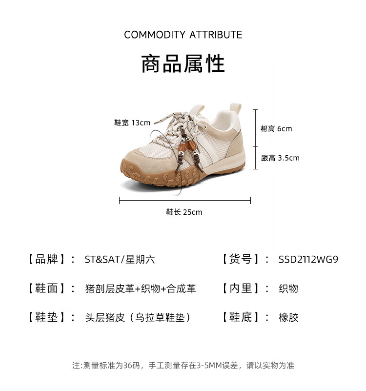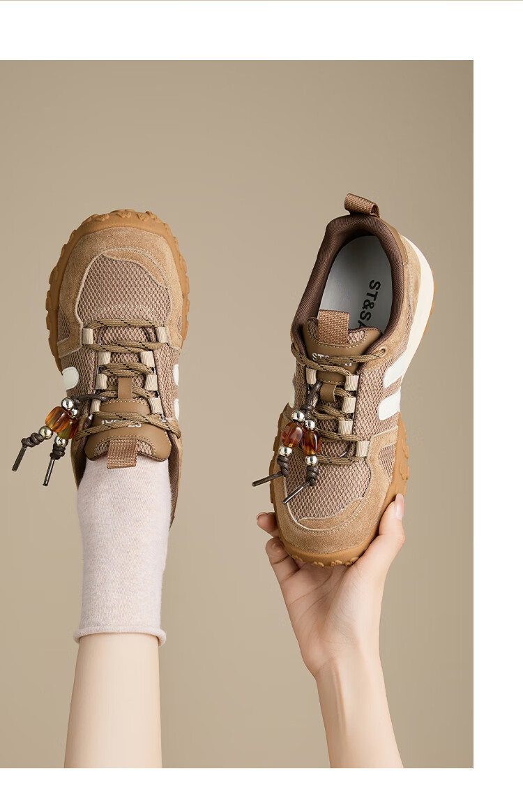 星期六时尚圆头厚底休闲鞋2025夏季新款运动舒适阿甘鞋MTSSD2112WG9 棕色 38