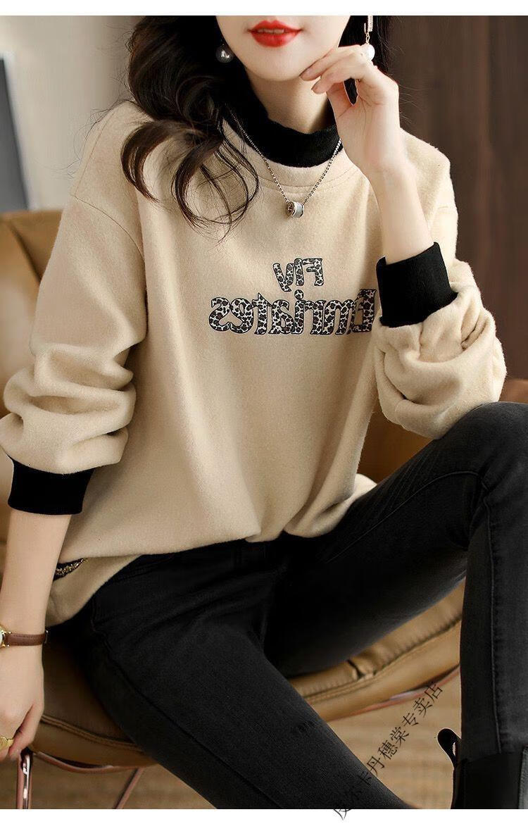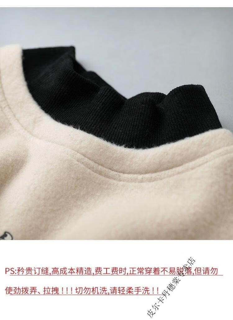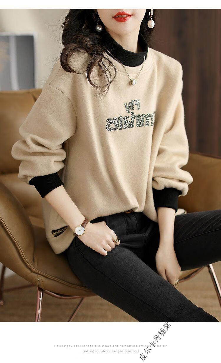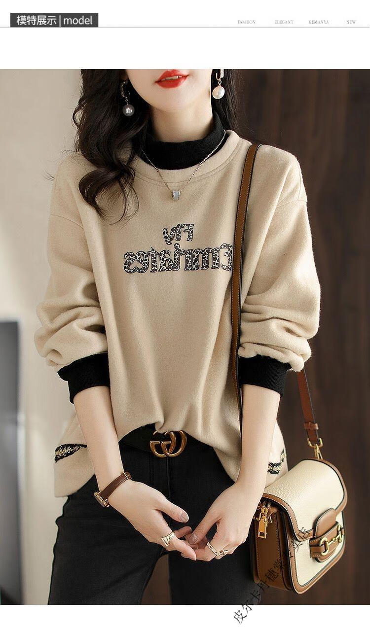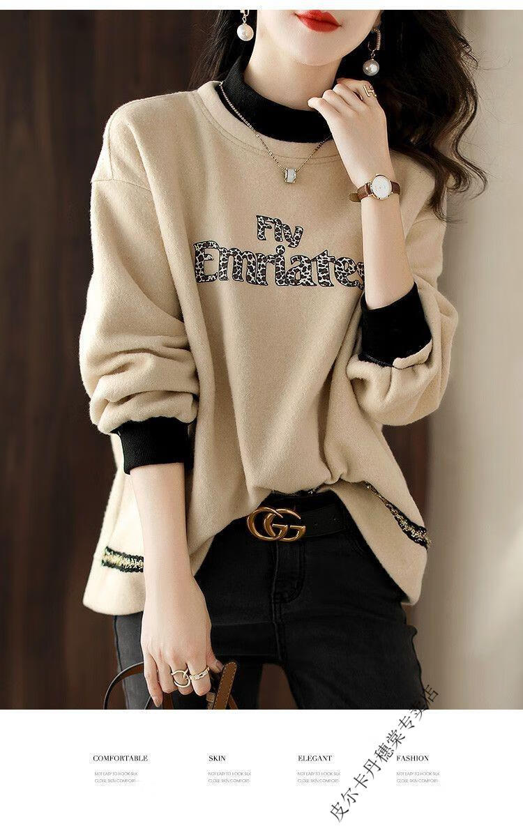 皮尔卡丹2025新款卫衣女假两件上衣女时尚百搭春秋冬加厚打底衫女 米杏色 2XL 【建议125斤-140斤】