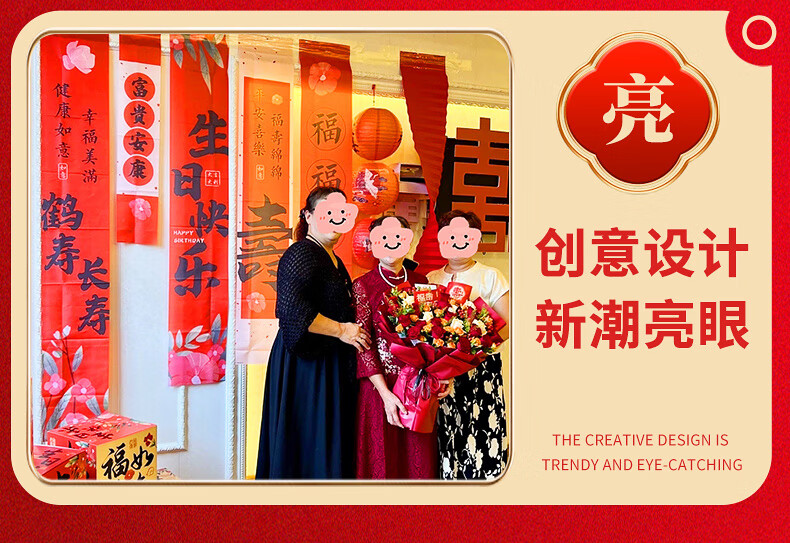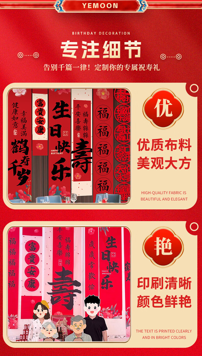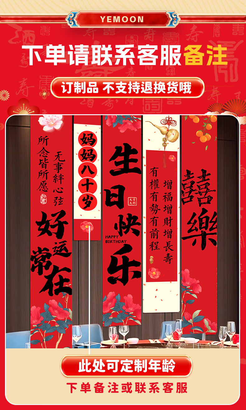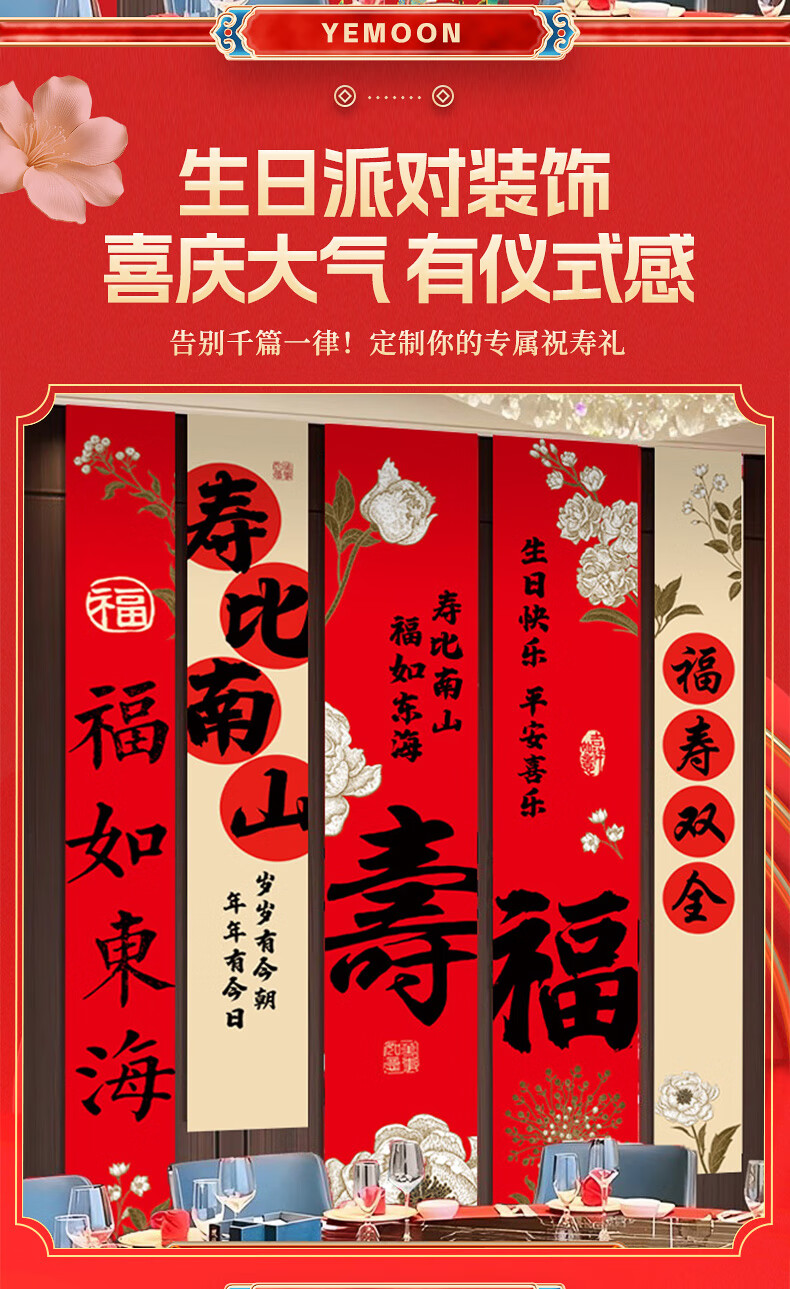 伊梦寿宴场景布置长辈70周岁生日80八十大寿装饰老年人祝寿背景墙条幅 【7仓速发】B条幅-富贵安康条幅-五条装组合1