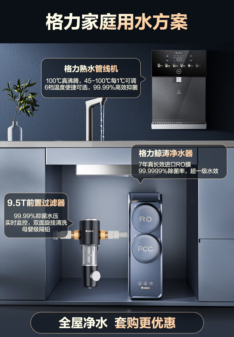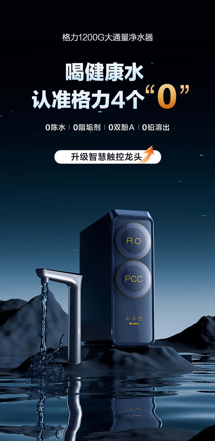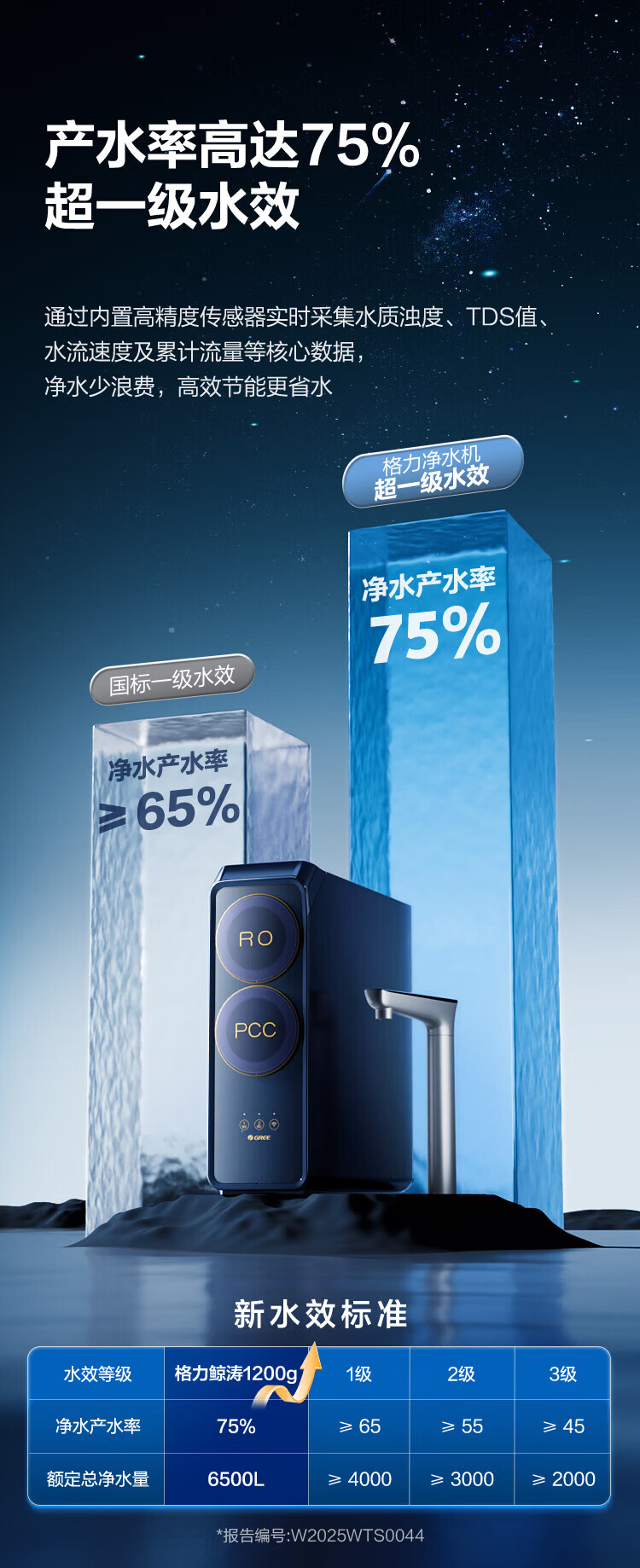 格力(GREE)家用净水机鲸涛1200G PRO 7年长效RO膜 0阻垢剂反渗透直饮净水器厨下式净饮机 鲜活零陈水