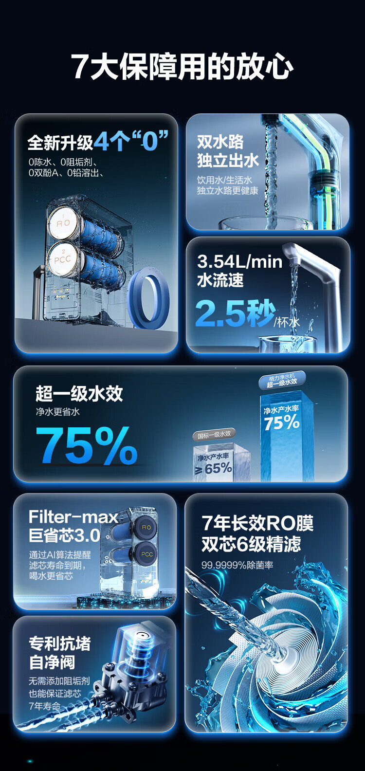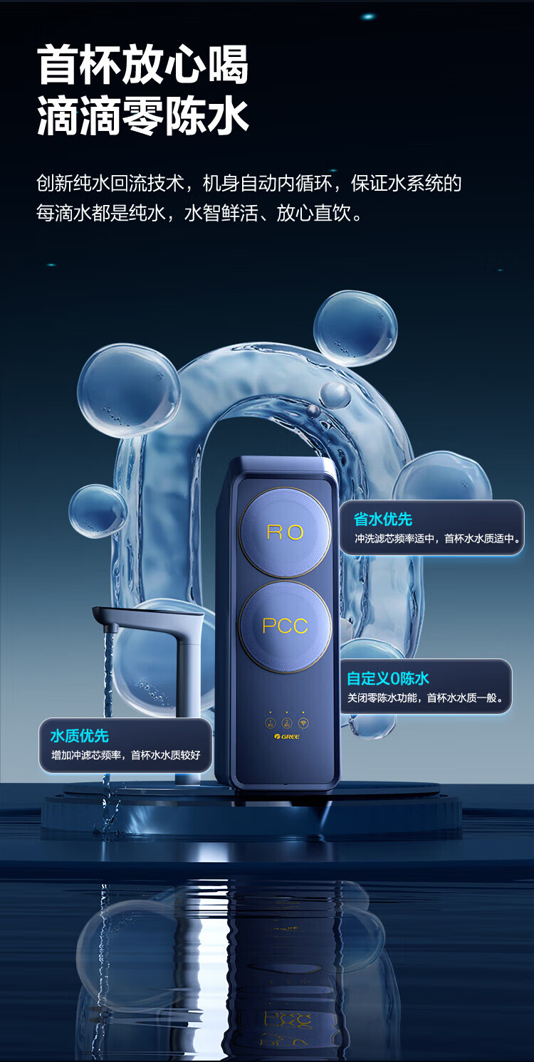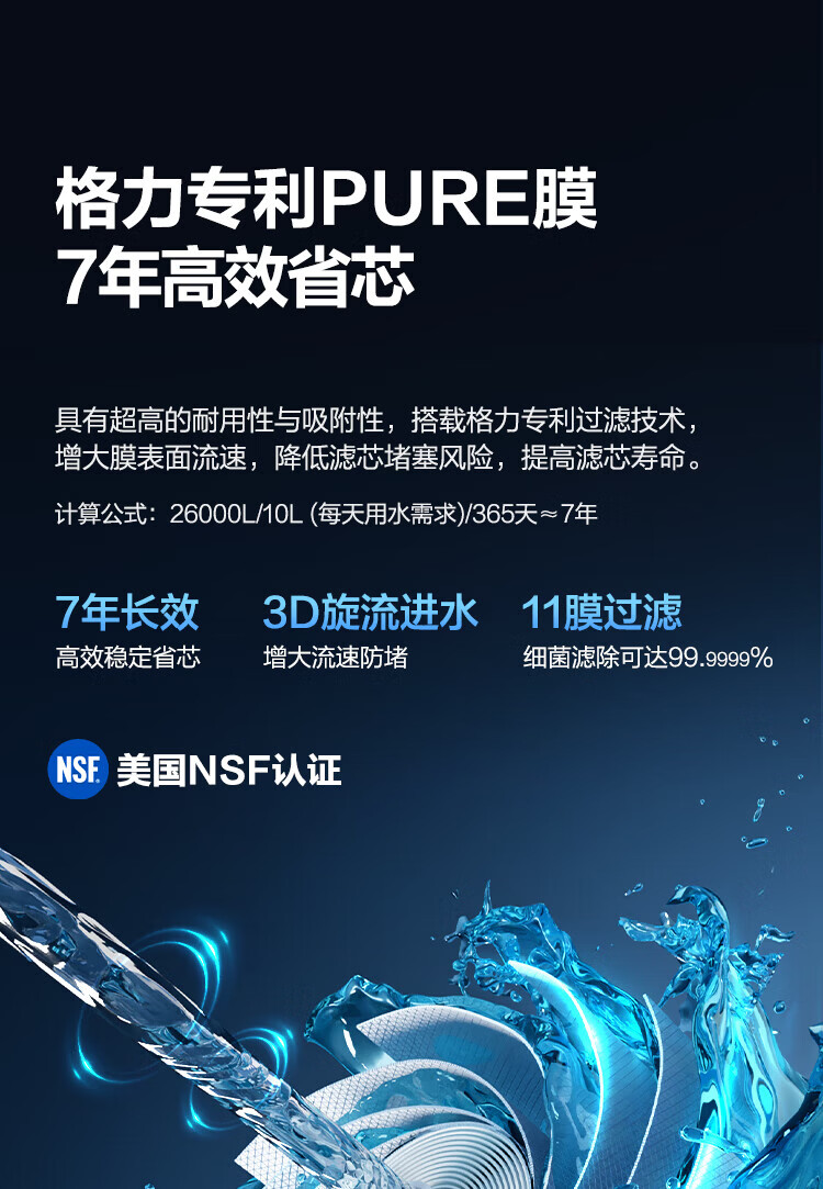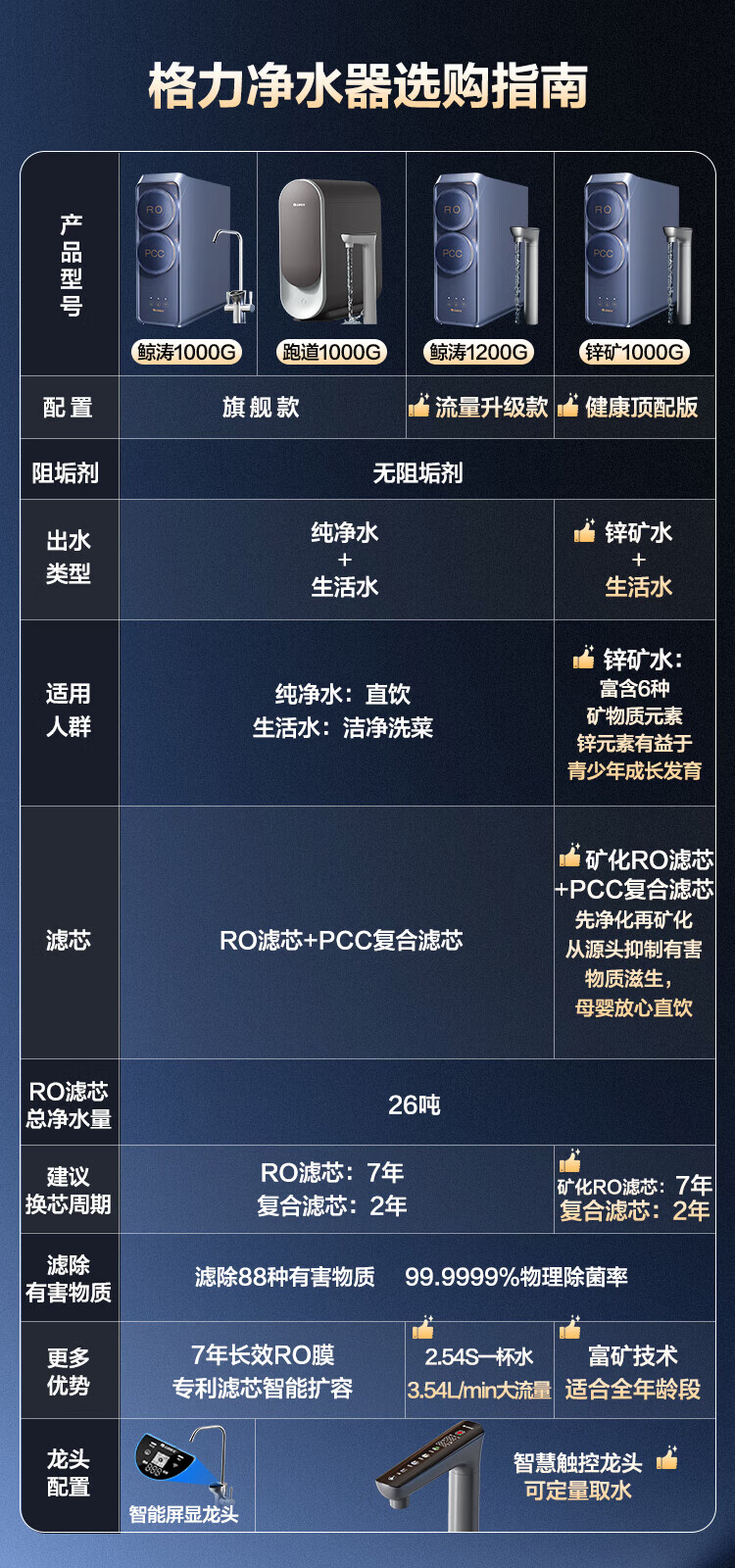 格力(GREE)家用净水机鲸涛1200G PRO 7年长效RO膜 0阻垢剂反渗透直饮净水器厨下式净饮机 鲜活零陈水