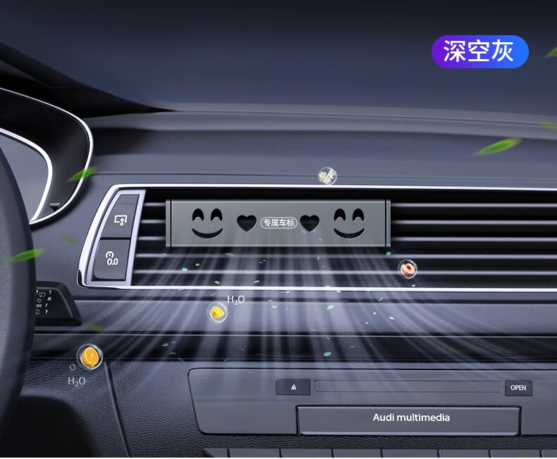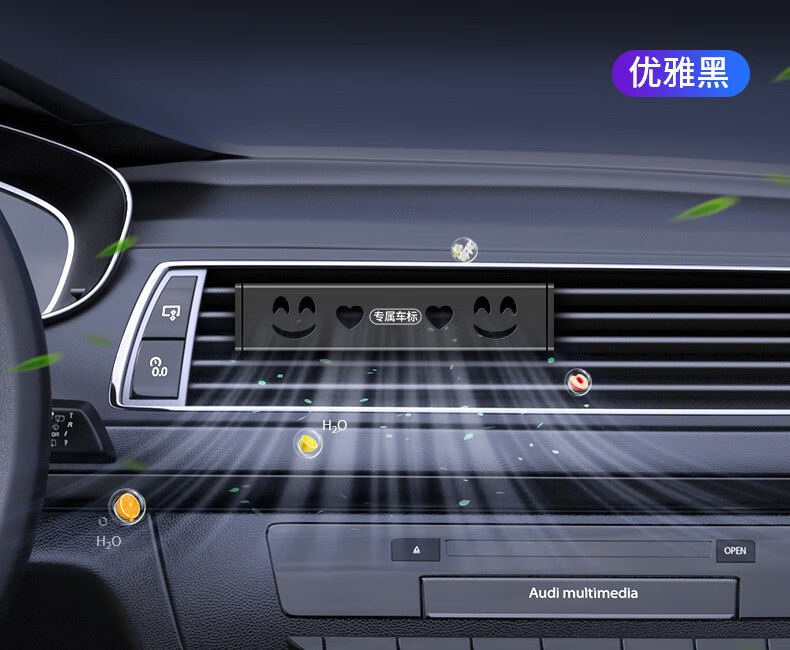 广唯车载香薰 汽车出风口香氛 别克宝马丰本田大众福特现代车内香水膏 出风口香薰2个黑【含6香条】带标 奥迪标 适用奥迪A4LA6La8Q3q5LQ7