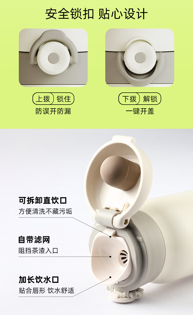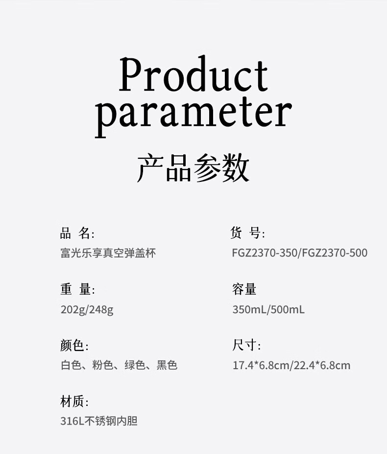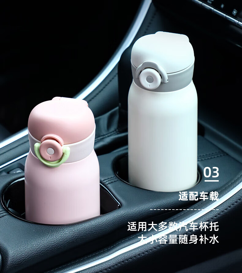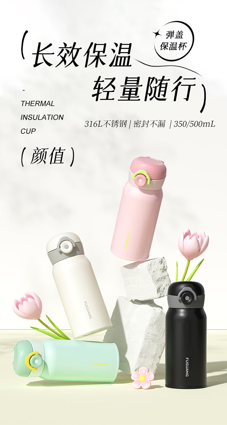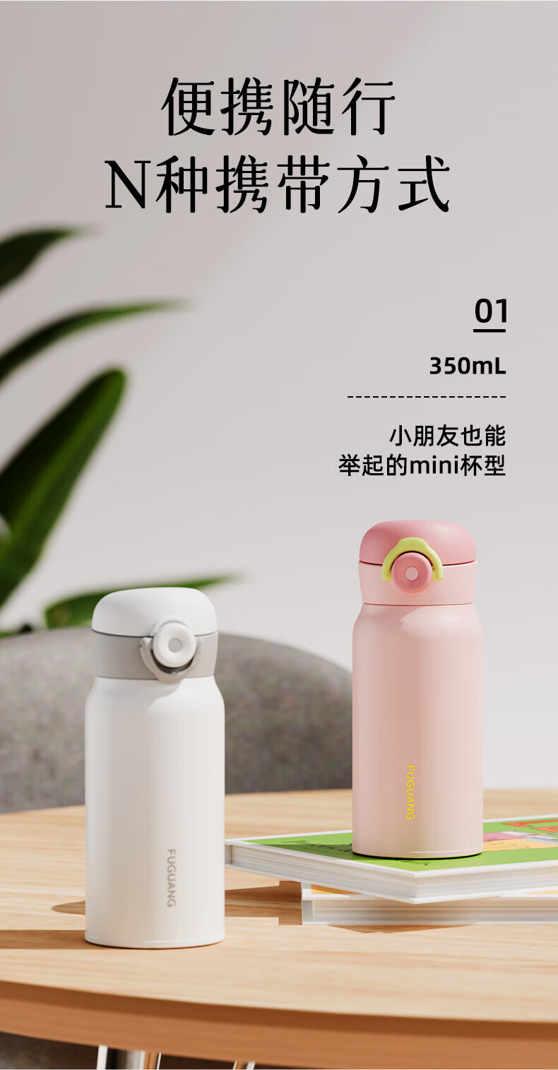 富光一键开盖保温杯学生男女士高颜值316L不锈钢迷你水杯子精致便携 星光粉 350ml