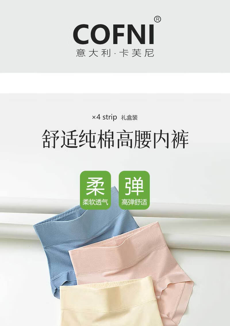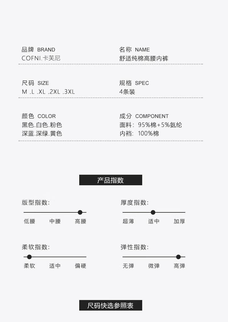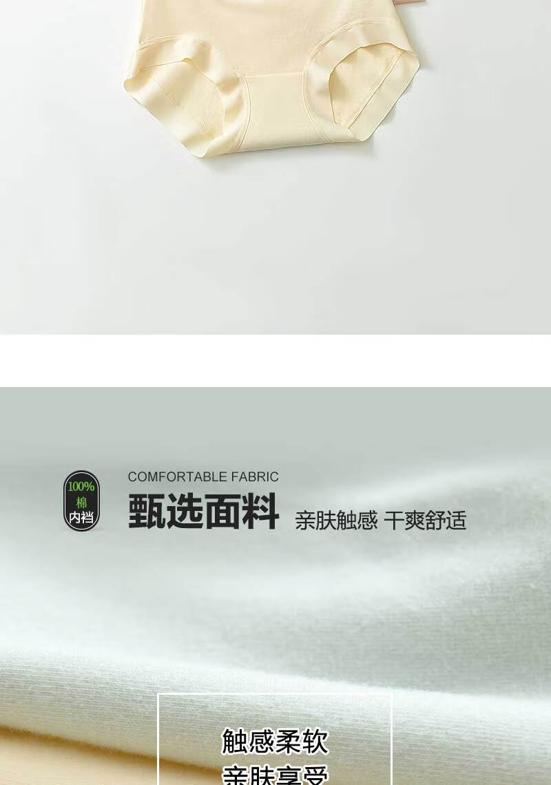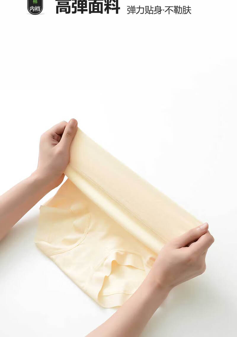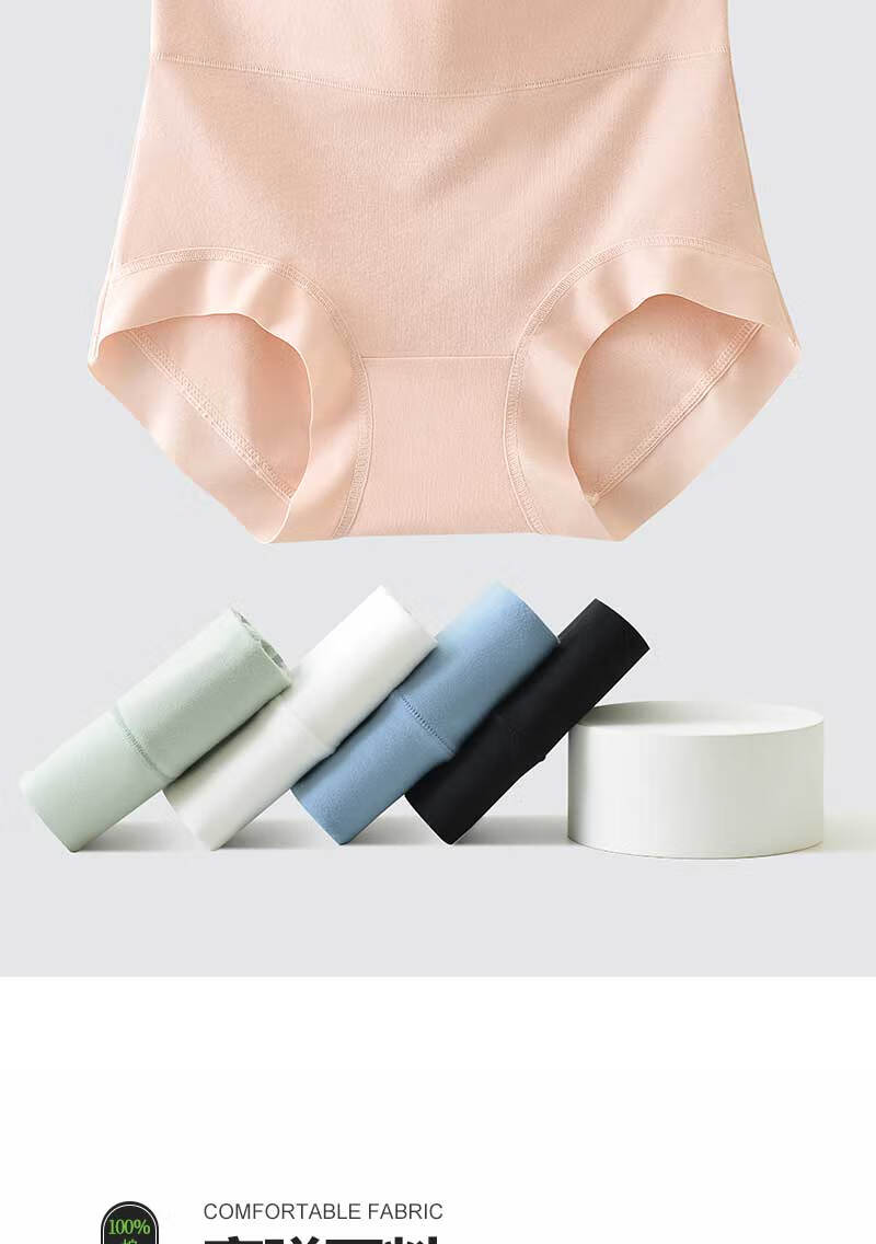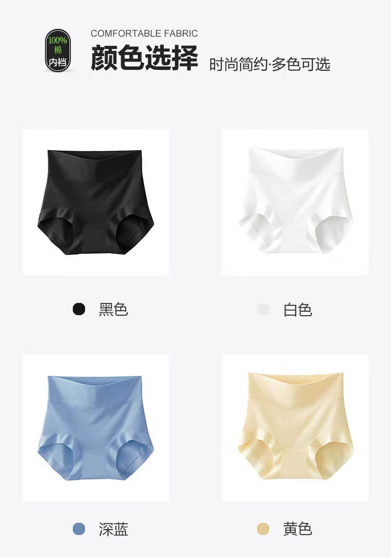 Cofni女士纯色高档棉柔高腰收腹无痕内裤女加大加宽胖MM抗菌三角短裤女 4条礼盒装:粉色+白色+黄色+深绿 3XL:(建议160-210斤)
