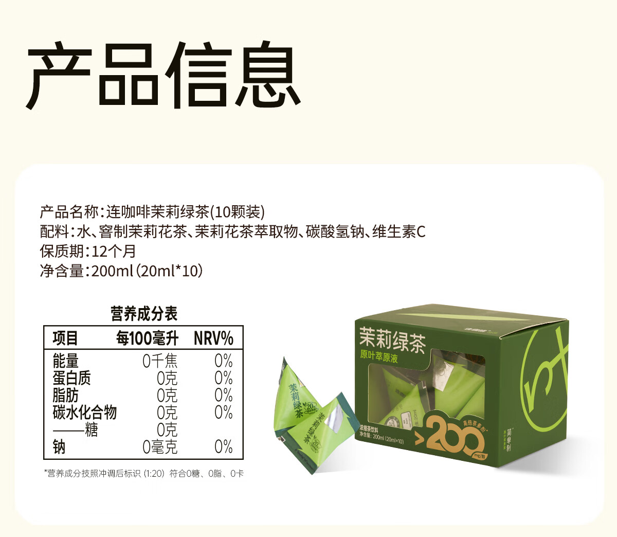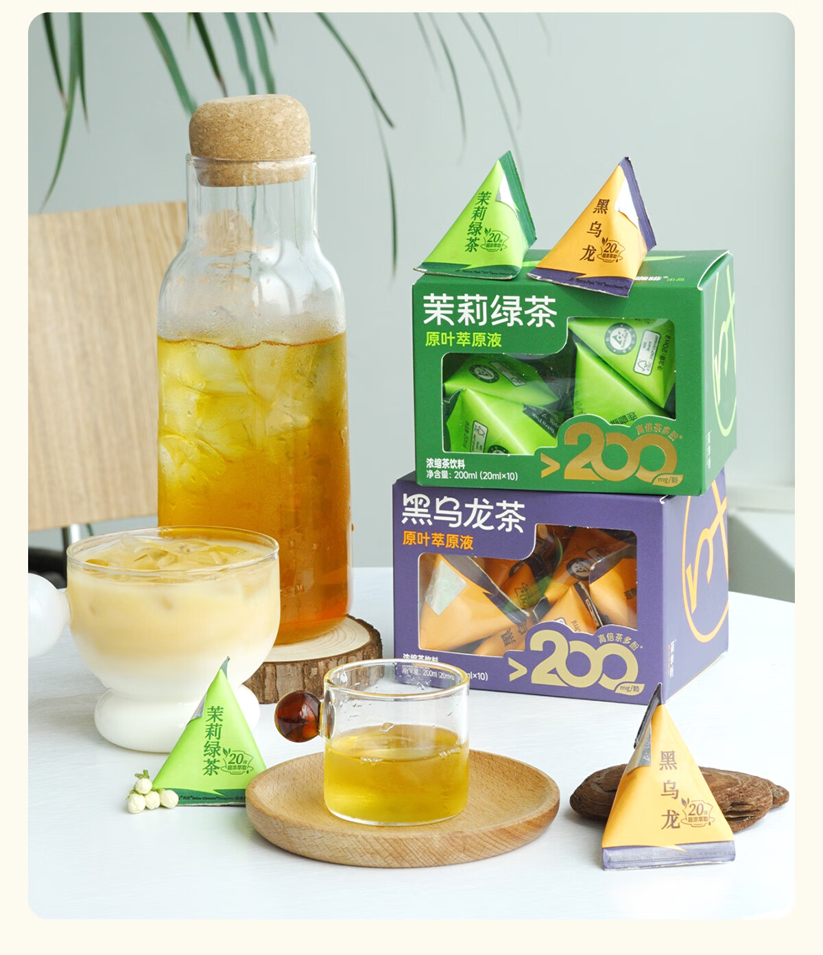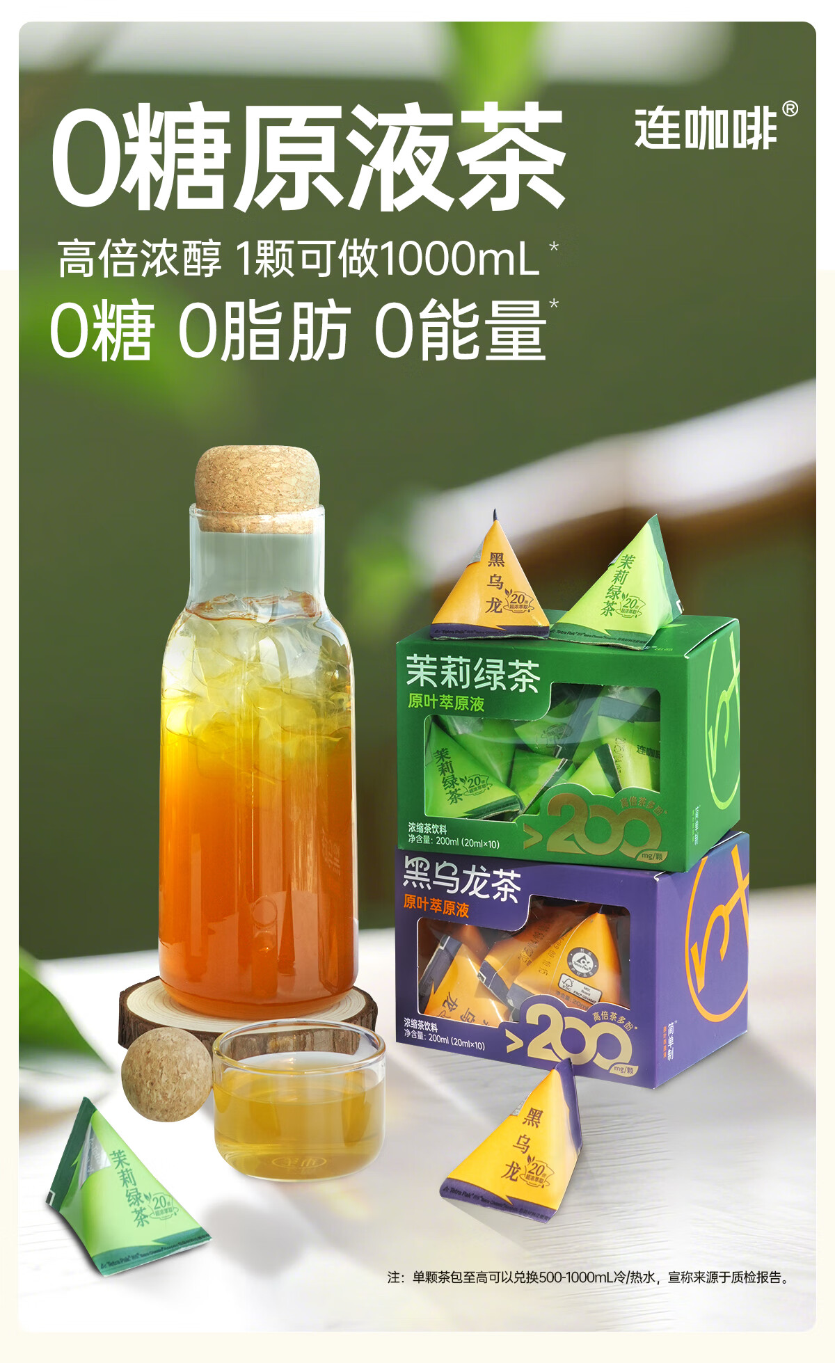 连咖啡 浓缩茉莉花茶绿茶黑乌龙茶饮料 0糖0脂0卡冷泡茶萃高倍茶多酚 茉莉+乌龙20ml*20颗