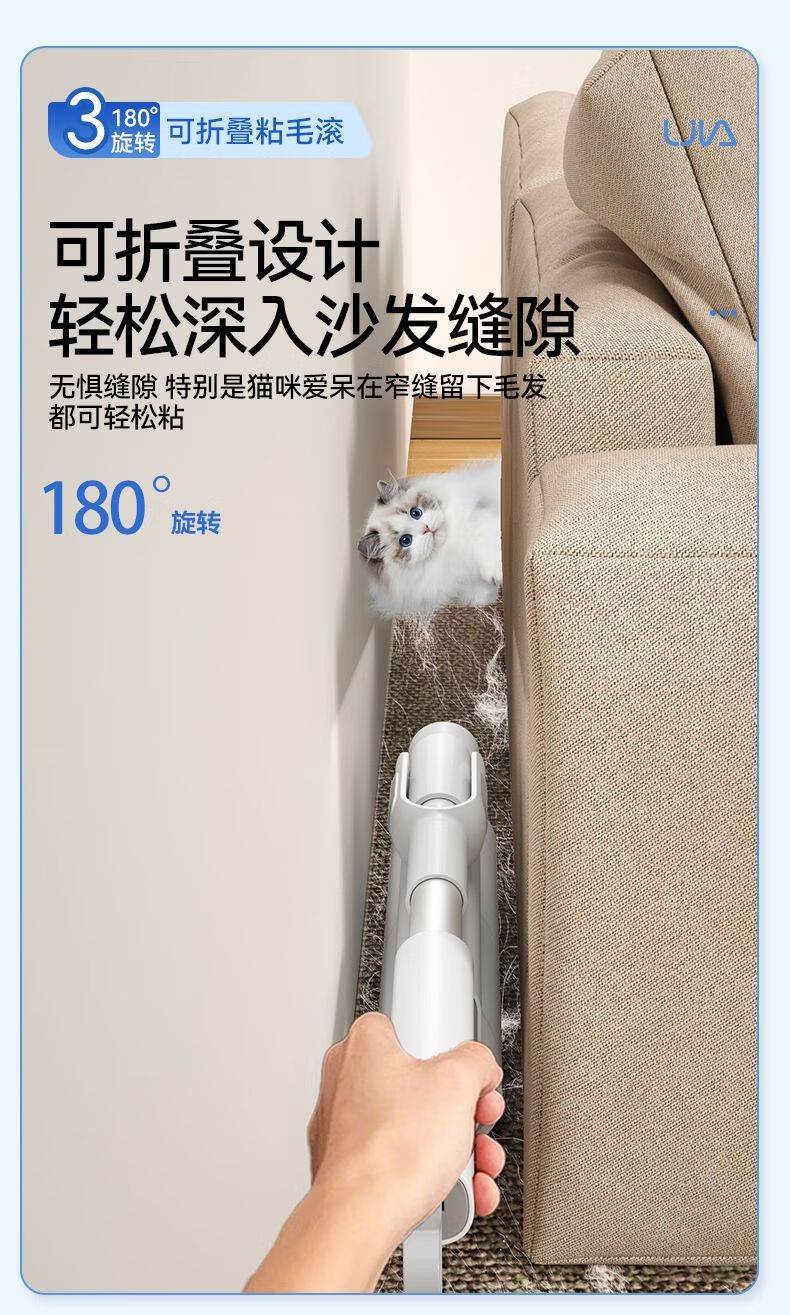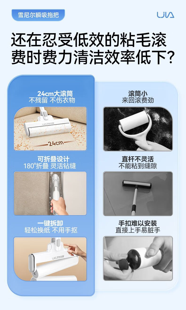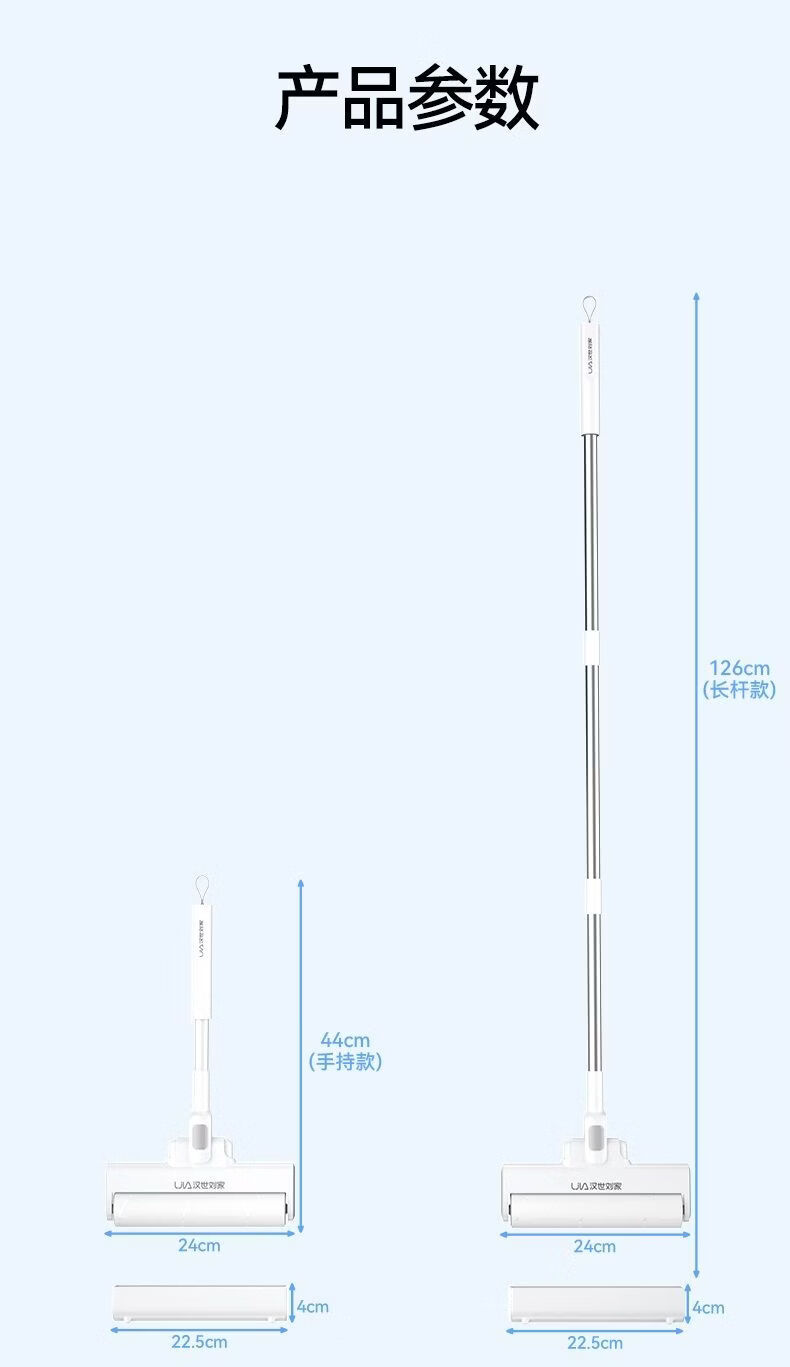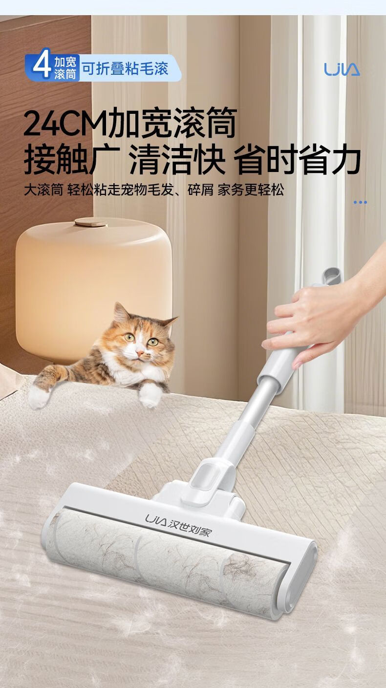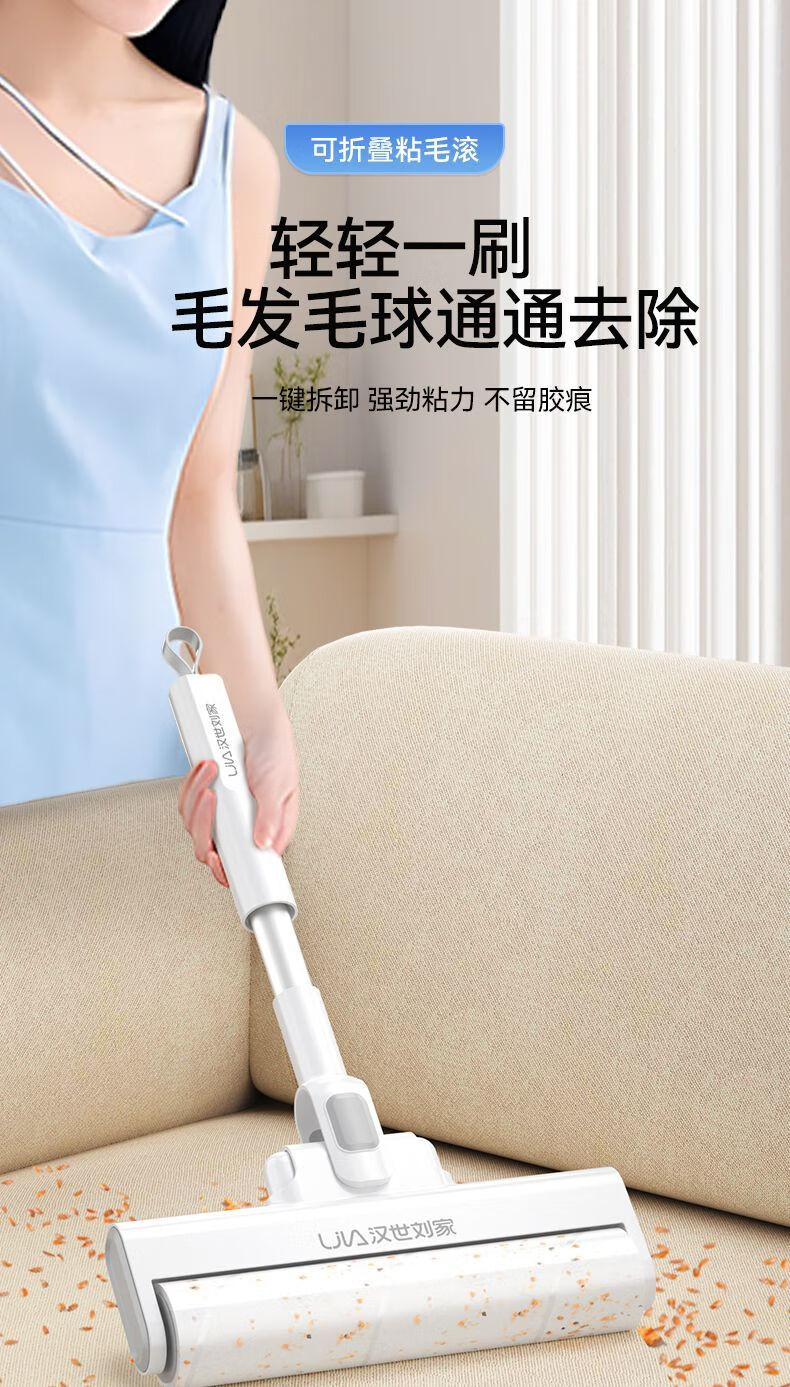 汉世刘家粘毛器滚筒长杆家用滚刷粘地板灰尘头发可撕纸粘 伸缩款(89-129CM)+6卷239撕(22.5cm) 可折叠/一键拆头+防尘盖