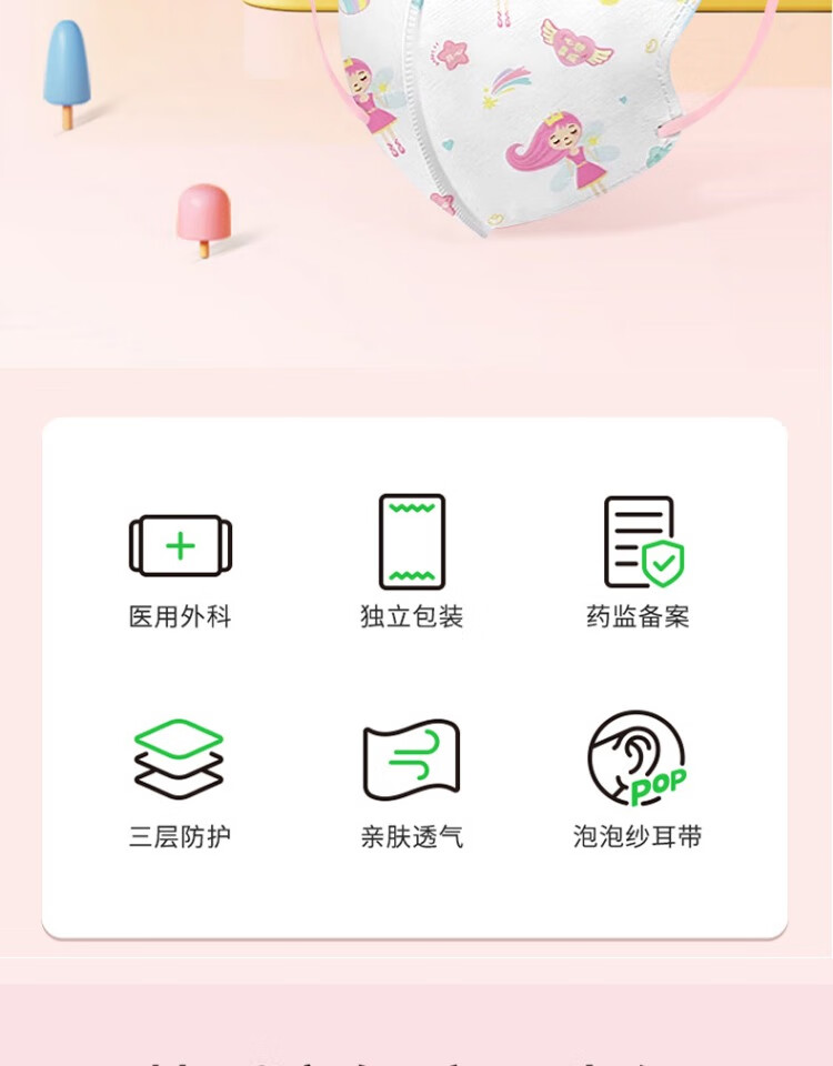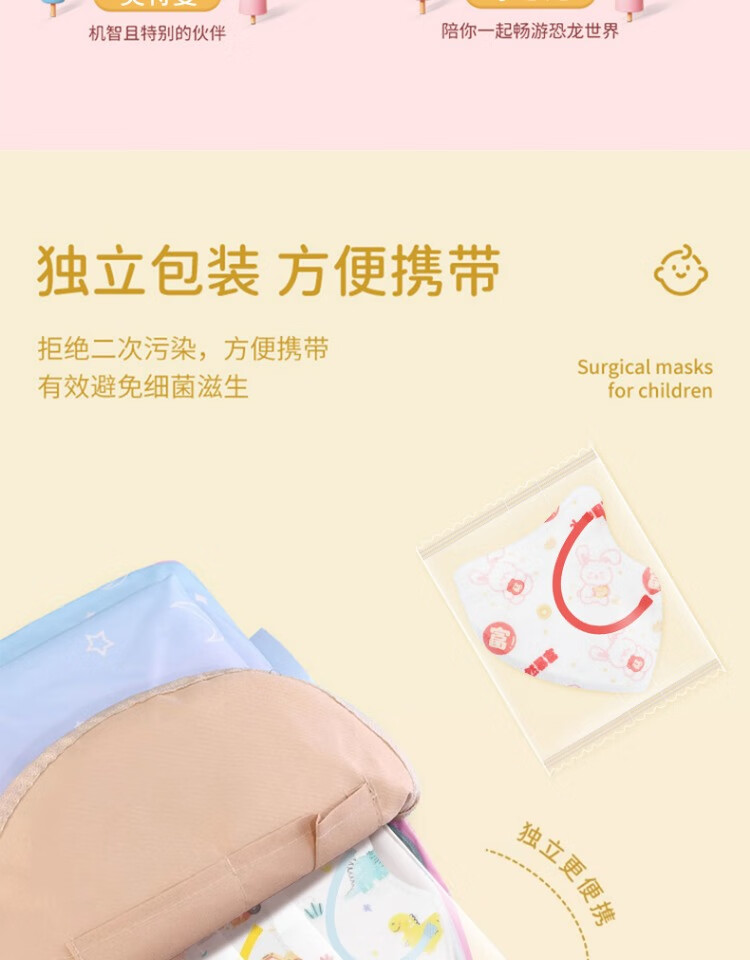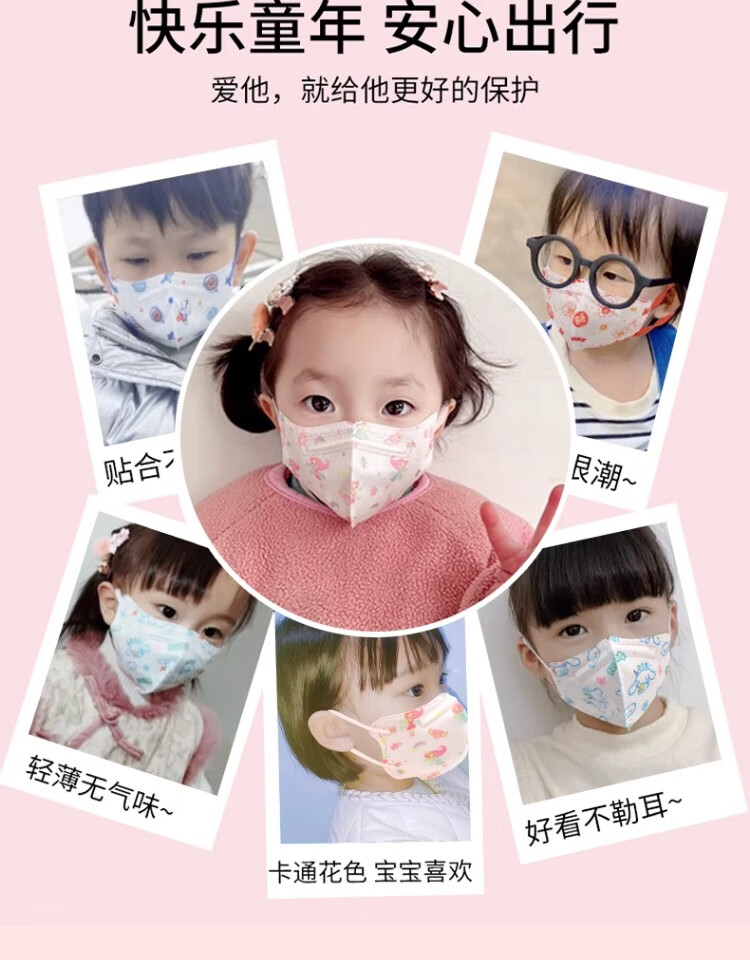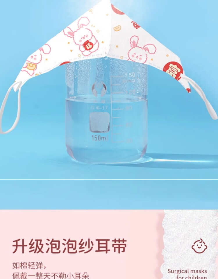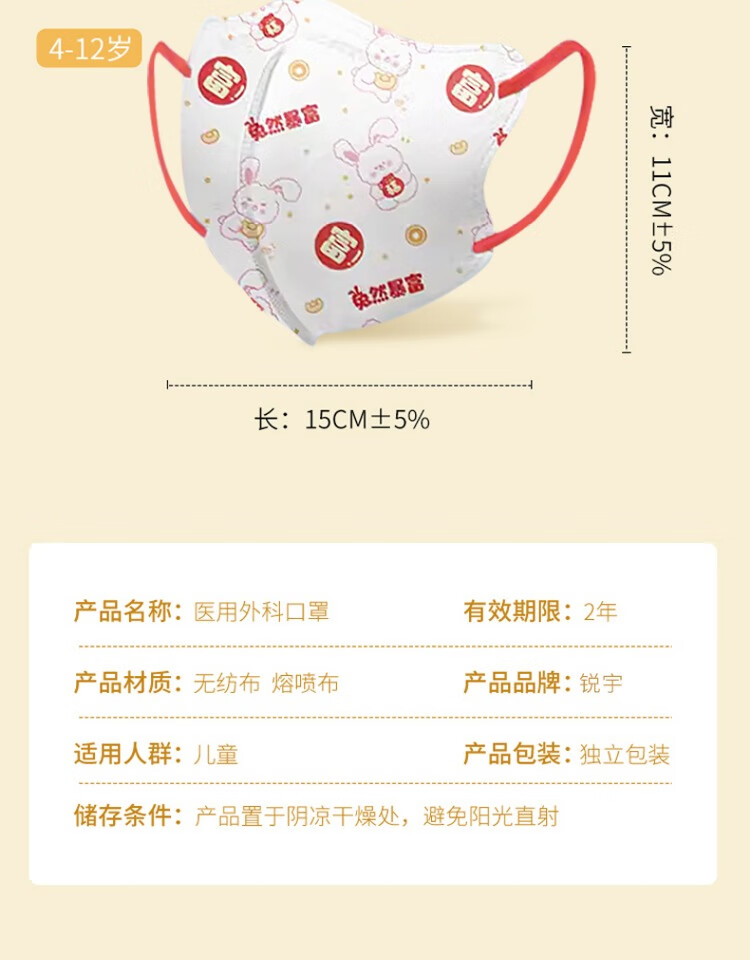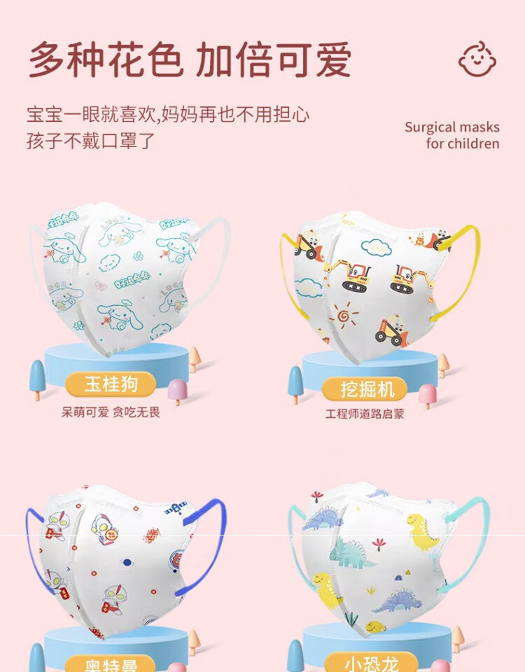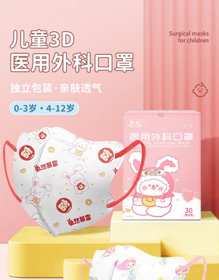 锐宇医用外科儿童口罩3d立体一次性女孩宝宝面罩男童小孩可爱卡通口罩 医用外科女宝7-12岁新春系列混装独立包装30只 无规格
